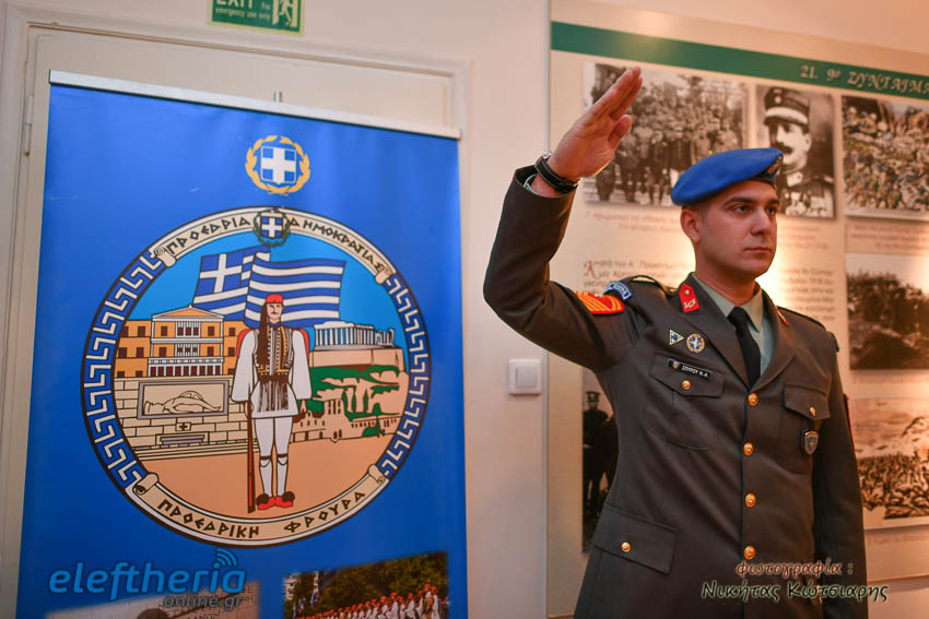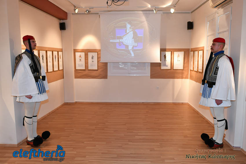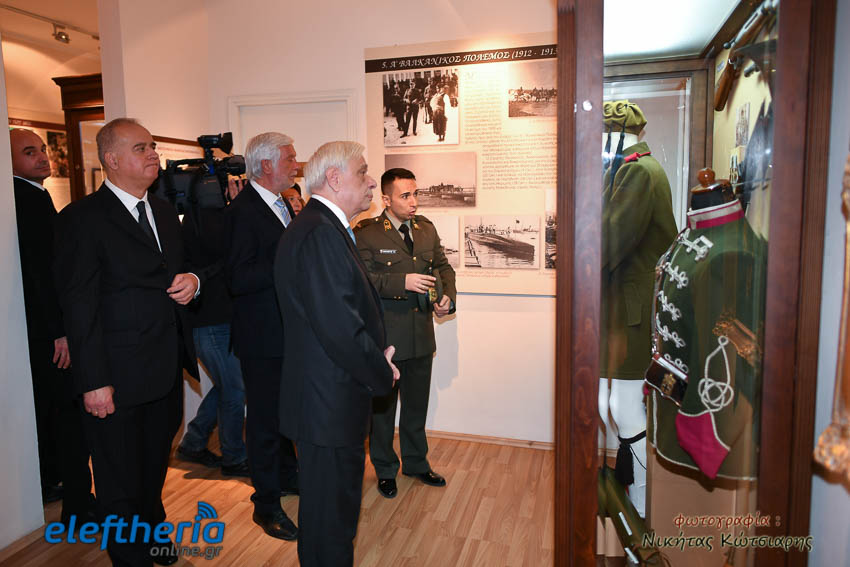 Εκεί ξεναγήθηκε στην έκθεση με τίτλο: "Η Ευζωνική Στολή", που αποτελεί δωρεά του Αλέξανδρου Χαΐτογλου.