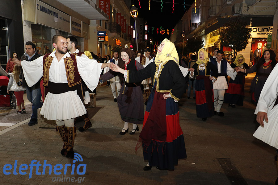 Κατά τα παραδοσιακά καλέσματα οι Νησιώτες χόρεψαν στον πεζόδρομο της Αριστομένους, μπροστά από το ιστορικό Δημαρχείο, και ανέβηκαν στο γραφείο του δημάρχου για το επίσημο κάλεσμα.