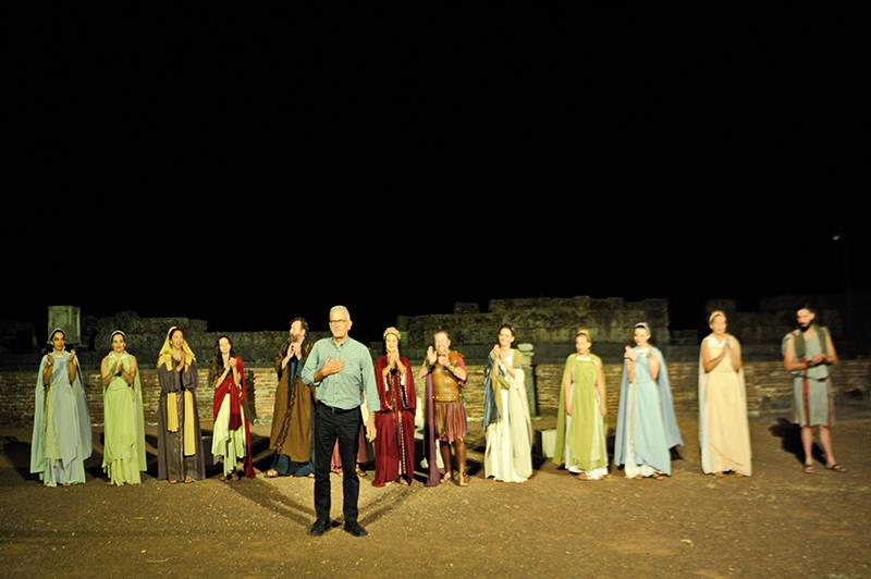 Λίγο πριν την έναρξη της παράστασης η ποιήτρια Ελίζα Αλεξανδρίδου προλόγισε και ευχαρίστησε όλους όσους στήριξαν την προσπάθεια των συντελεστών, όπως την Εφορεία Αρχαιοτήτων Μεσσηνίας, την Πειραματική Σκηνή Καλαμάτας, το Ιδρυμα Ελληνισμού, τον Δήμο Μεσσήνης, το Ιδρυμα “Επιμένουμε Ελλάδα”, τον Τομέα Σαμαρειτών Ερυθρού Σταυρού, το Κέντρο Αποκατάστασης «Διάπλαση Μεσσηνίας» και το Μετρό Αθήνας. Στη συνέχεια τιμήθηκε ο καθηγητής - αρχαιολόγος Πέτρος Θέμελης από το Ιδρυμα Ελληνισμού και τον πρόεδρό του καθηγητή Ανδρέα Αθηναίο. Στη συνέχεια οι θεατές παρακολούθησαν εκστασιασμένοι την παράσταση.