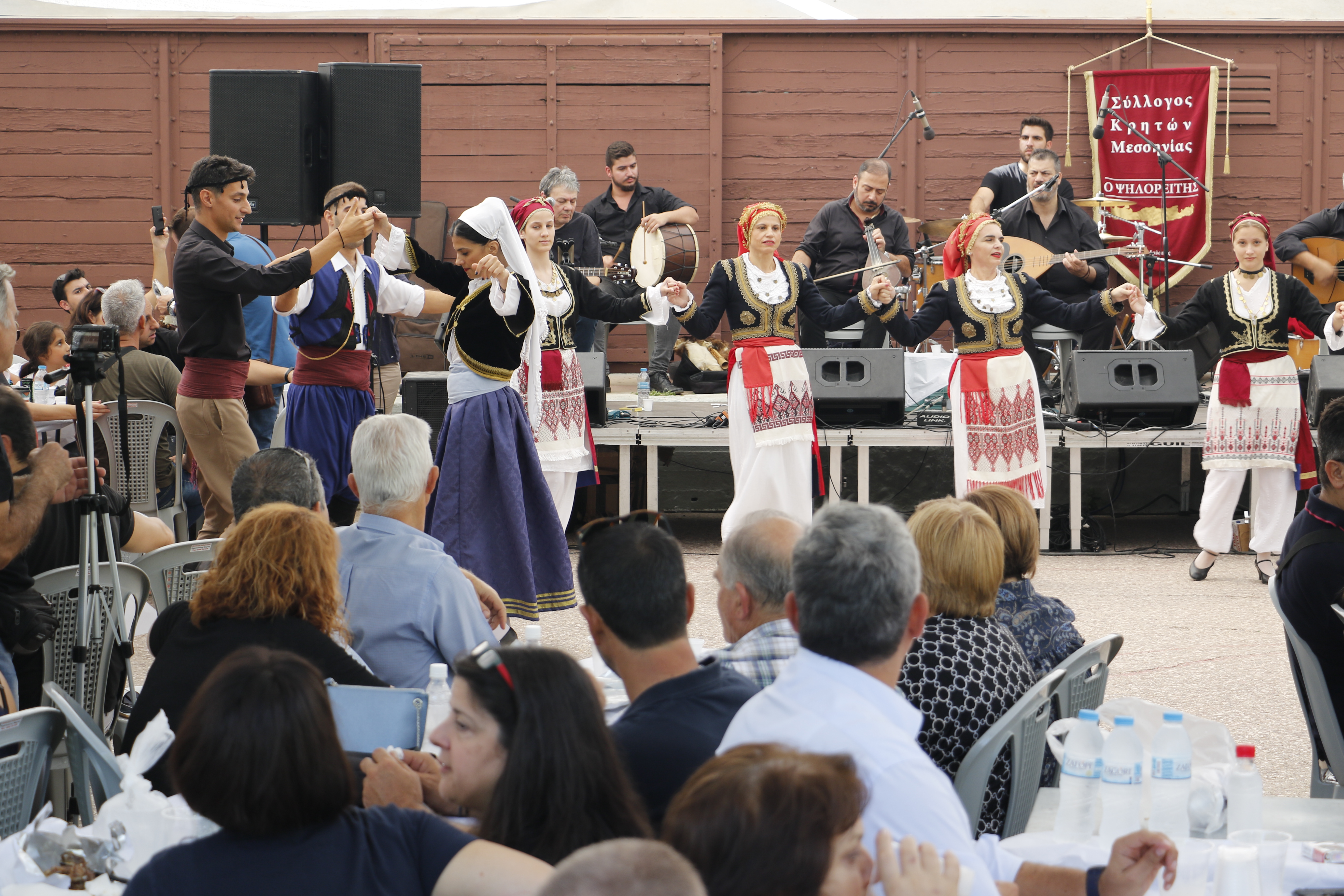 Το μενού περιλάμβανε άφθονη τσικουδιά, βραστό κρέας με πιλάφι και τσιγαριαστό, ένα παραδοσιακό πιάτο της δυτικής Κρήτης.