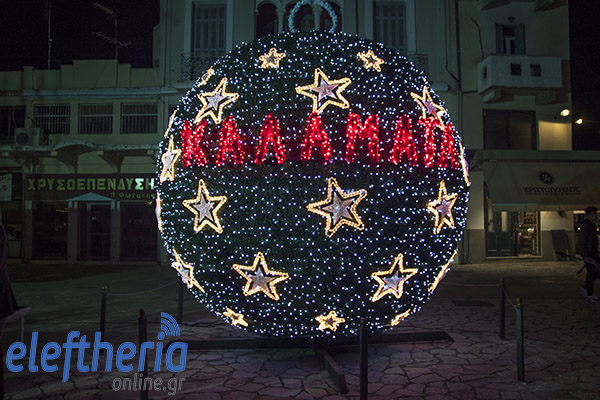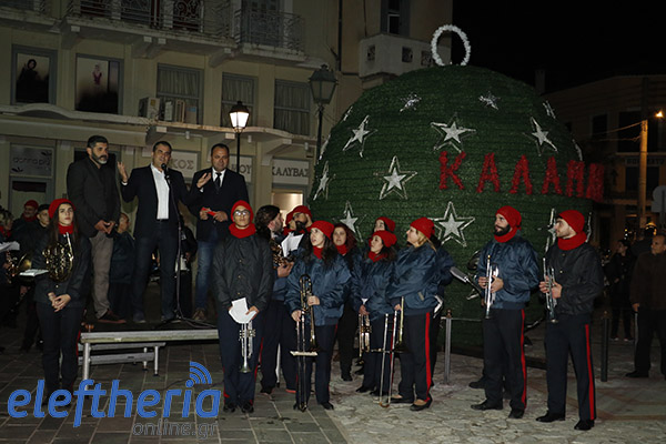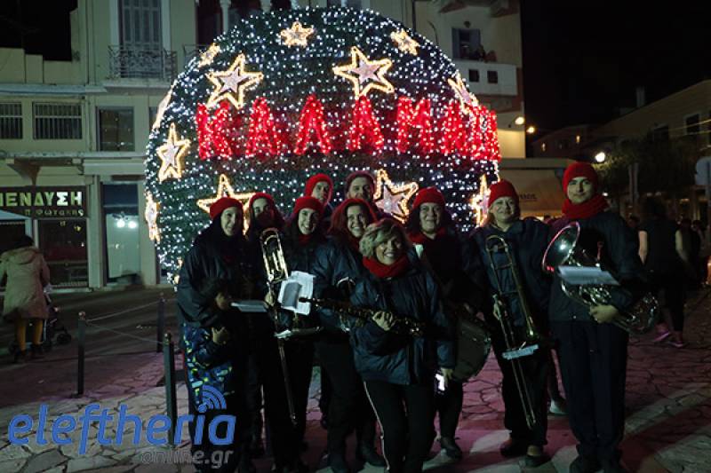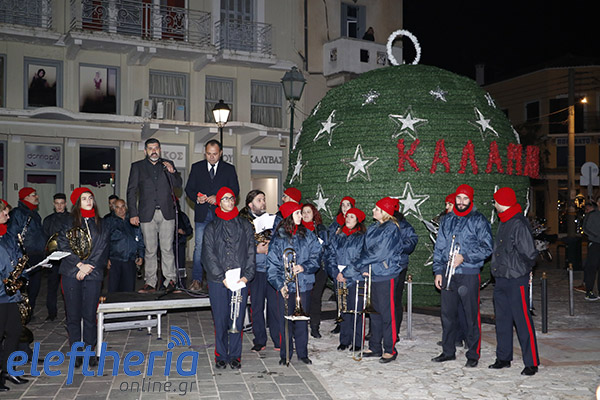 Μετά το άναμμα του δέντρου στην κεντρική πλατεία την Παρασκευή, το Σάββατο είχαμε τη φωταγώγηση του χριστουγεννιάτικου καραβιού στο λιμάνι. Χθες το πρόγραμμα περιελάμβανε χριστουγεννιάτικες μελωδίες από τη Δημοτική Φιλαρμονική στα Λέικα, τα Γιαννιτσάνικα και την πλατεία 23ης Μαρτίου όπου άναψε και η χριστουγεννιάτικη μπάλα, παρουσία του δημάρχου Καλαμάτας Θανάση Βασιλόπουλου.