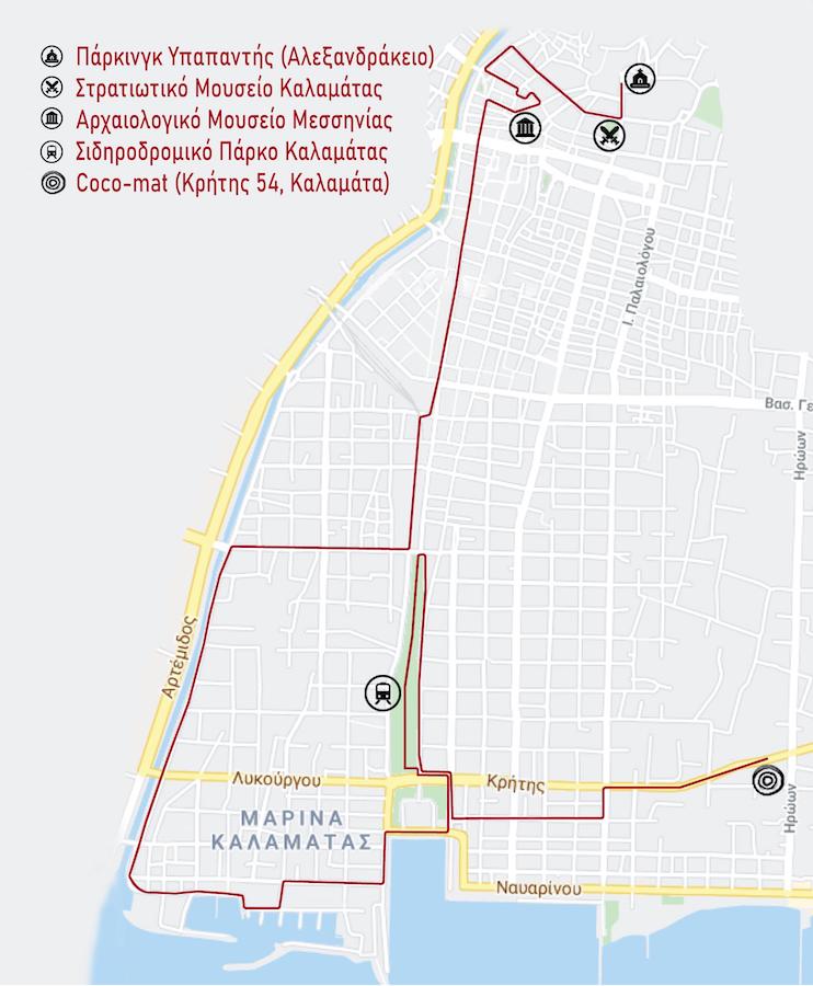 Η ποδηλατική διαδρομή θα διαρκέσει περίπου 2,5 ώρες, θα γίνουν 3 στάσεις και θα περιλαμβάνονται ξεναγήσεις στο Αρχαιολογικό και στο Στρατιωτικό Μουσείο (στα Ελληνικά).