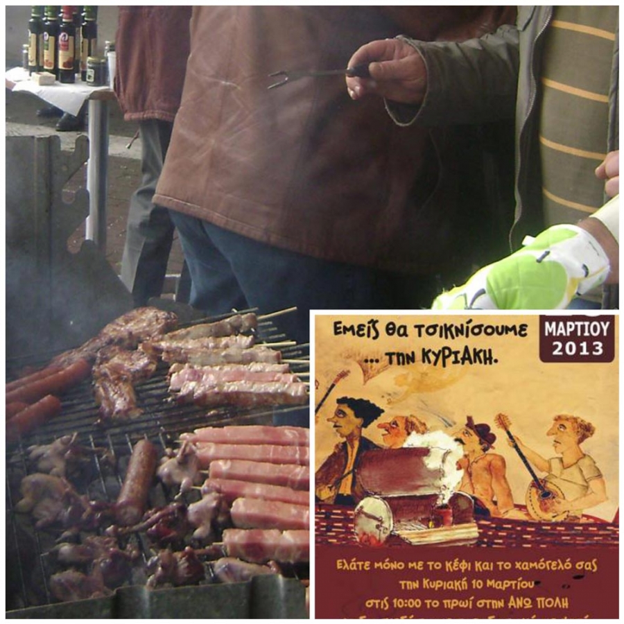 Μπορεί ο καιρός προχθές Τσικνοπέμπτη να τους χάλασε τα σχέδια για το μεγάλο τσίκνισμα, όμως δεν το βάζουν κάτω κι έτσι καλούν όλους την Κυριακή από τις 10 ώρα το πρωί και μετά στην Ανω Πόλη, να διασκεδάσουν με παραδοσιακά ψητά, άφθονο κρασί και μουσική.