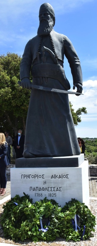 Οι εκδηλώσεις συνεχίστηκαν στο προαύλιο του ναού Αναστάσεως του Χριστού Μανιακίου, όπου τελέστηκε επιμνημόσυνη δέηση μπροστά στον ανδριάντα του ήρωα αρχιμανδρίτη Γρηγορίου Δικαίου (Παπαφλέσσα). Ακολούθησε κατάθεση στεφάνων από τον εκπρόσωπο της κυβέρνησης, γενικό γραμματέα του υπουργείου Εθνικής Αμυνας Αντώνη Οικονόμου, τον εκπρόσωπο της Βουλής των Ελλήνων βουλευτή Μεσσηνίας Γιάννη Λαμπρόπουλο, τον εκπρόσωπο των Ενόπλων Δυνάμεων διοικητή της 120 ΠΕΑ σμήναρχο Κωνσταντίνο Καραβλίδη, τον αντιπεριφερειάρχη Μεσσηνίας Στάθη Αναστασόπουλο, τον δήμαρχο Πύλου-Νέστορος Παναγιώτη Καρβέλα, τον πρόεδρο της Κοινότητας Μανιακίου Σταύρο Σταθόπουλο και τους εκπροσώπους των απογόνων της οικογένειας Παπαφλέσσα Παναγιώτη Φλέσσα και Αθανάσιο Δικαίο.
