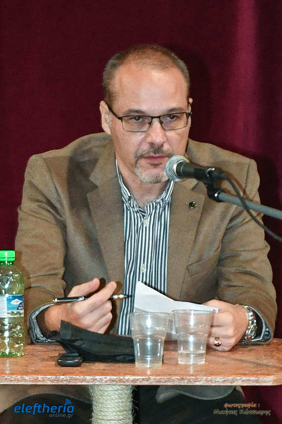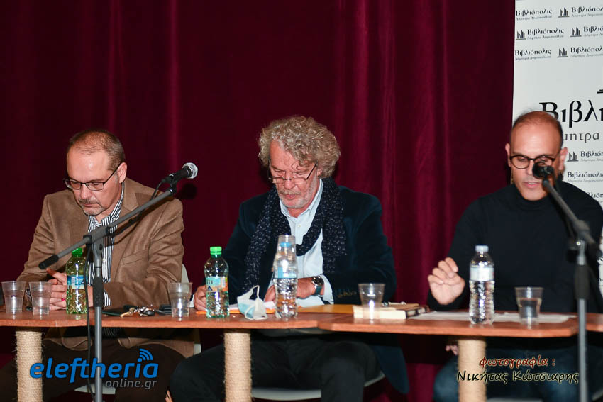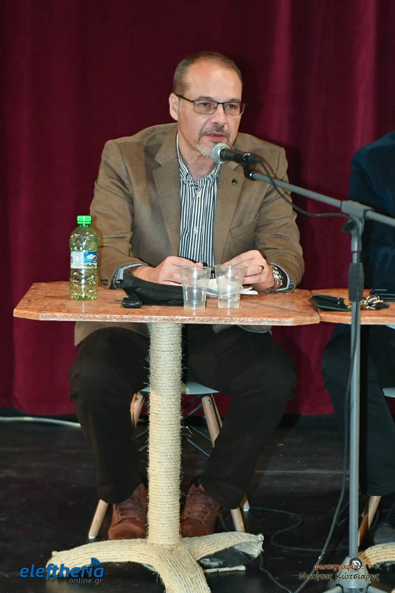 Στο αμφιθέατρο της Δημοτικής Φιλαρμονικής εκτός από τον Καλαματιανό συγγραφέα για το βιβλίο μίλησαν ο πολιτικός μηχανικός Γιώργος Γιαννόπουλος και δικηγόρος Αντώνης Κατσάς, υπό τον συντονισμό του πολιτικού μηχανικού Βασίλη Παπαευσταθίου.