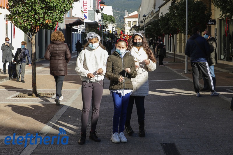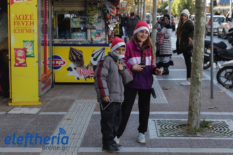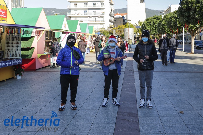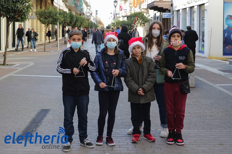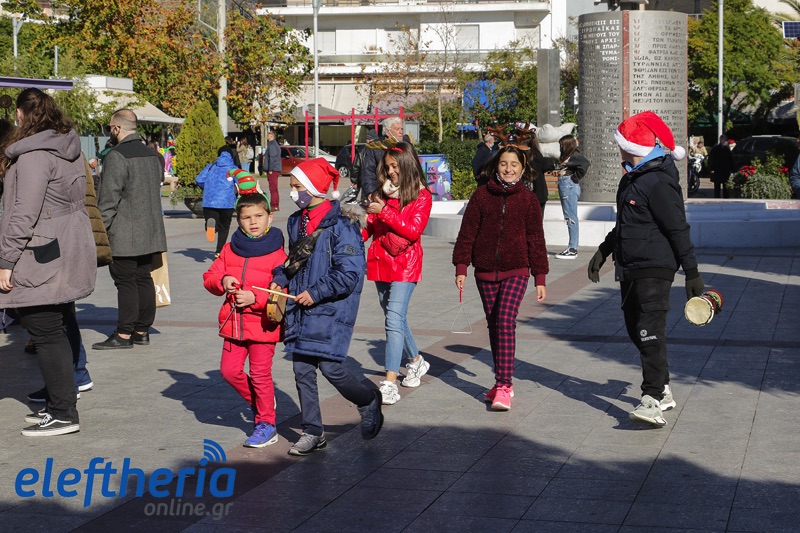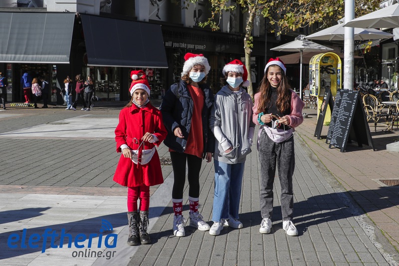 Τόσο στο κέντρο της πόλης, που ήταν σήμερα γεμάτο από κόσμο και σε εορταστικό κλίμα, όσο και σε γειτονιές παιδιά έψαλαν τα κάλαντα, ως είθισται την παραμονή των Χριστουγέννων.