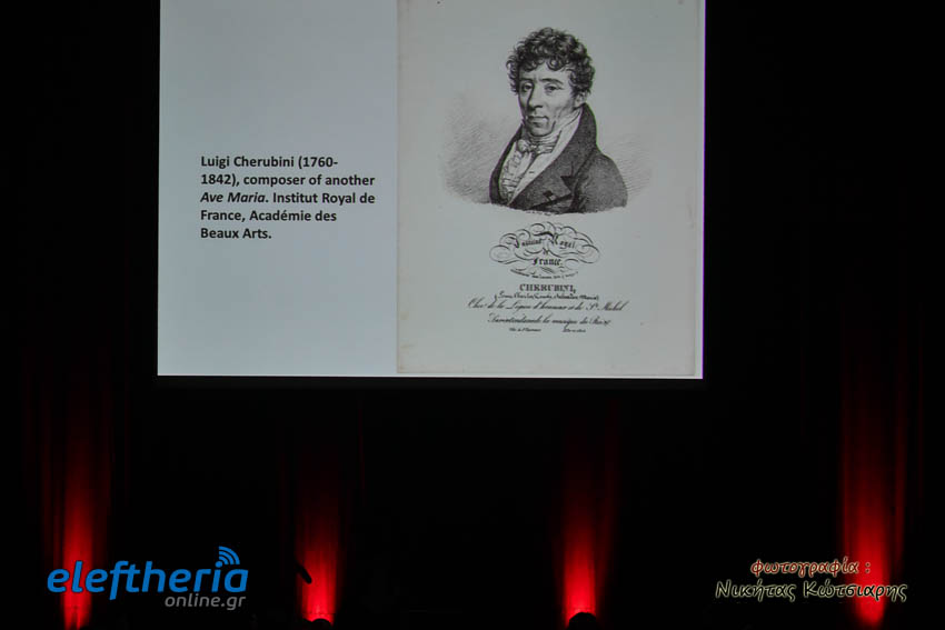Στην εκδήλωση ακούστηκαν έργα των Caccini, Cherubini, Liszt, Saint Saens, Mascagni, Gomez και Νικολέα. Τραγούδησε η Ευτυχία Δημητρακοπούλου, ενώ η παρουσίαση των κειμένων έγινε από τον μουσικολόγο Γιάννη Πλεμμένο. Διήυθυνε ο Κώστας Νικολέας.