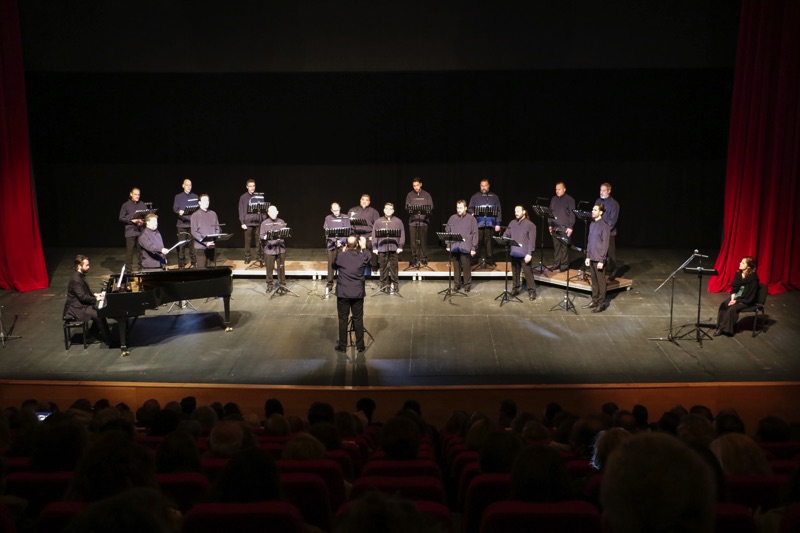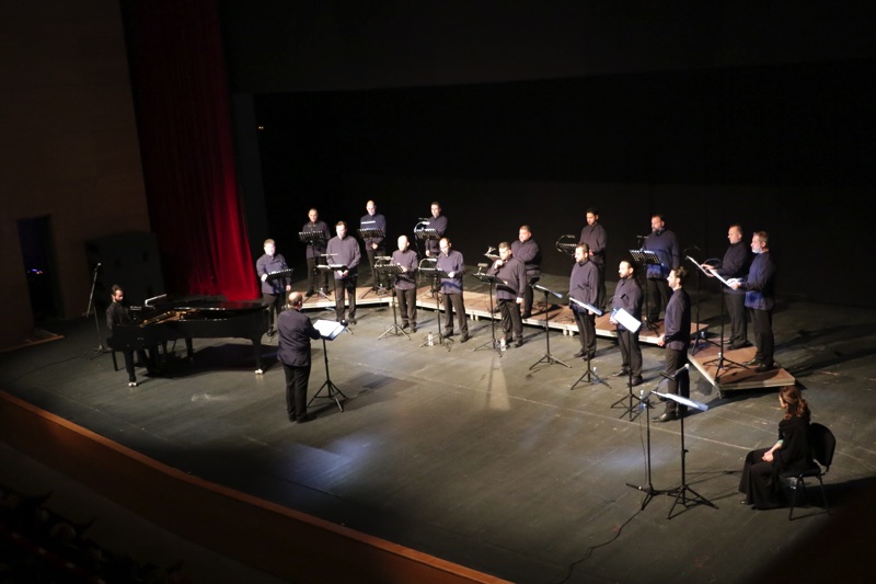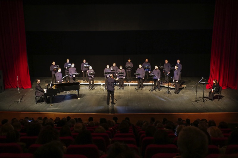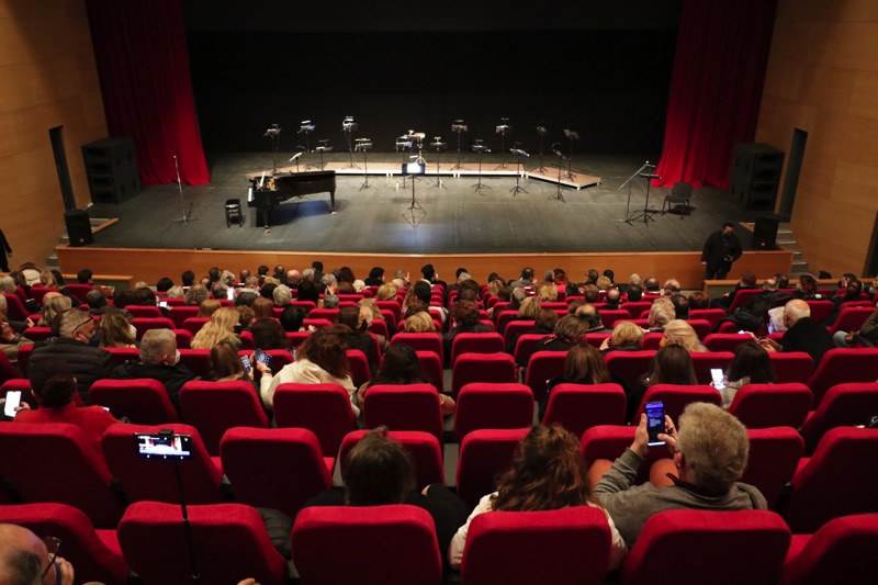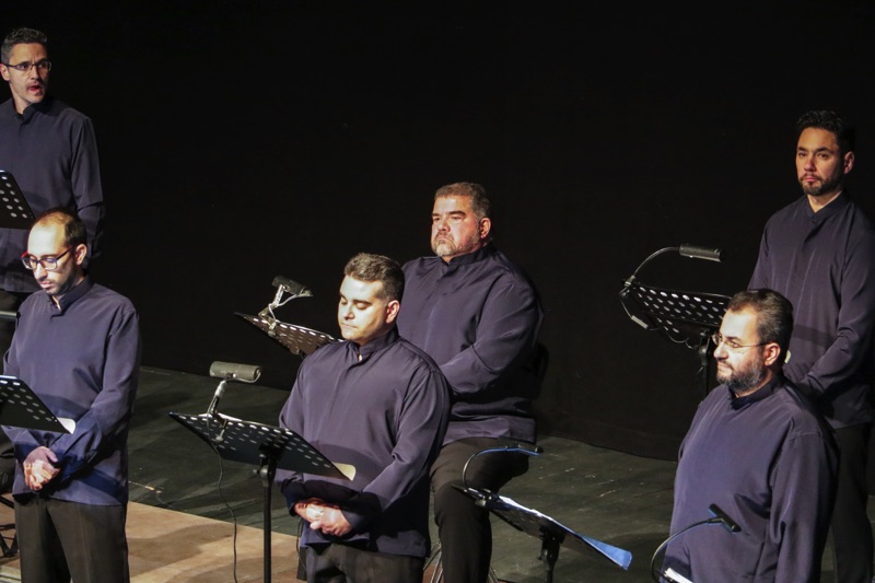 Το κοινό που γέμισε την κεντρική σκηνή του Μεγάρου, απόλαυσε το φωνητικό σύνολο “ΜεῙΖοΝ Ensemble” στο μνημειώδες έργο των Διονυσίου Σολωμού - Νικόλαου Μάντζαρου: “Υμνος εις την Ελευθερίαν” σε διεύθυνση του μαέστρου της Εθνικής Λυρικής Σκηνής Αγαθάγγελου Γεωργακάτου.