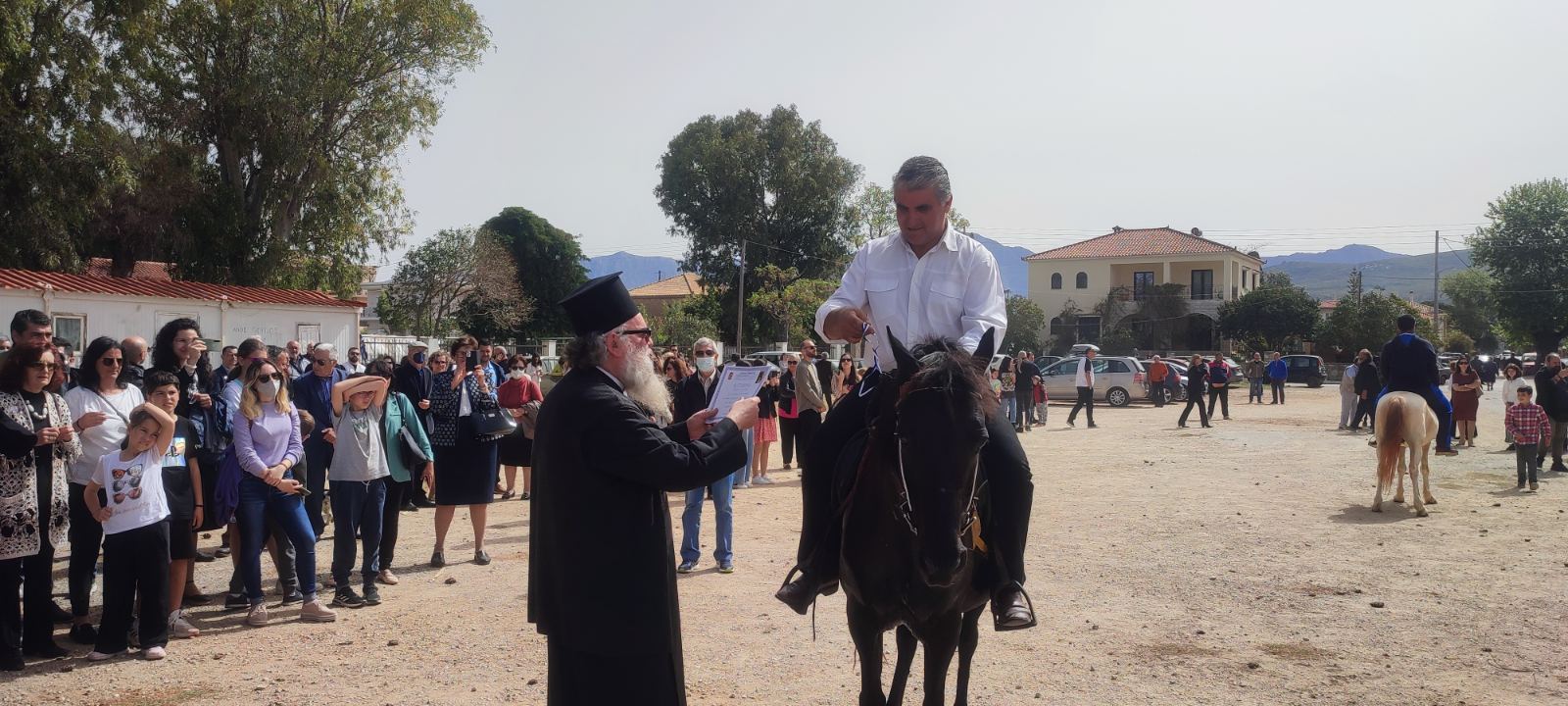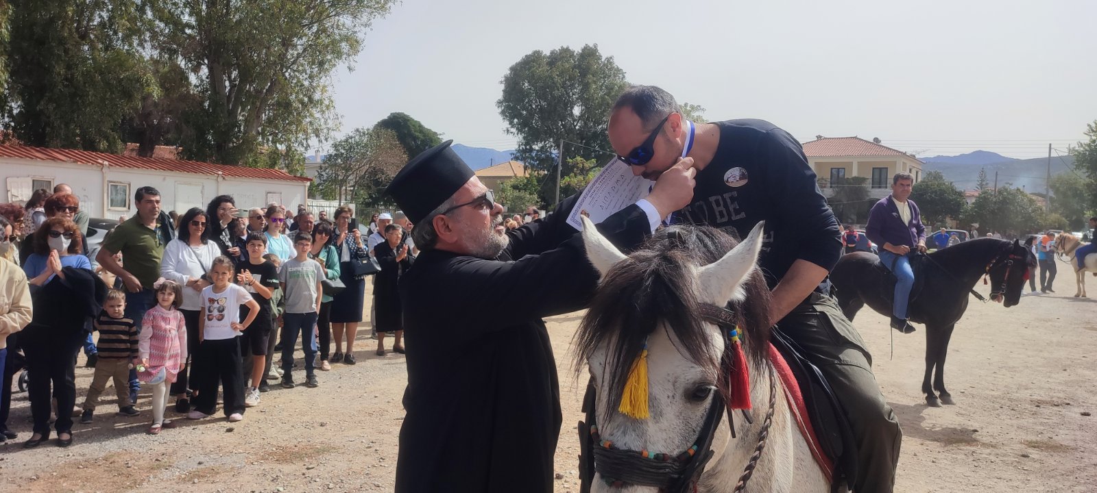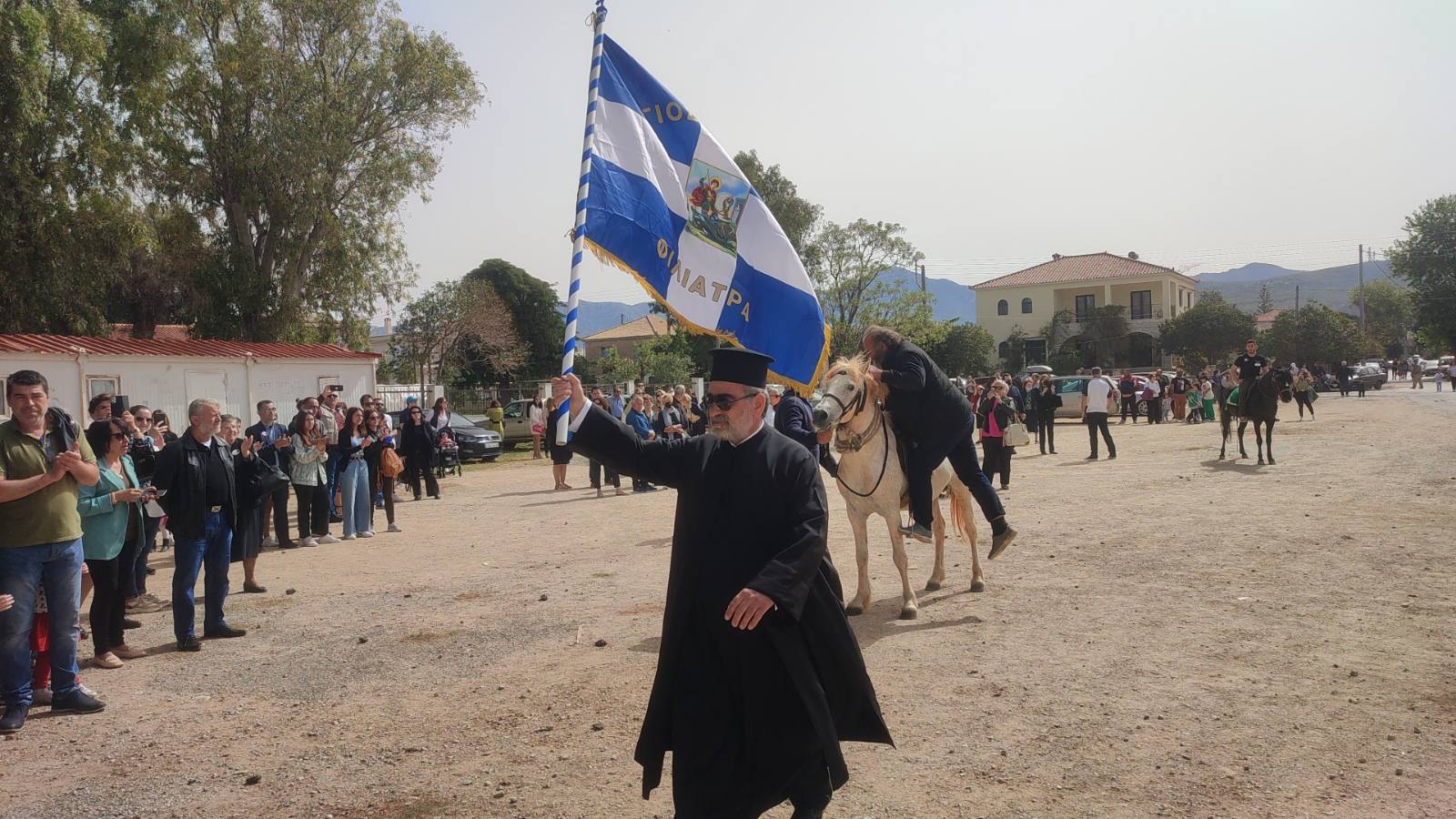 Ακολούθως ο πατήρ Διονύσιος Καλογερόπουλος παρέδωσε τη σημαία στον Νίκο Μίχο, που μαζί με τους άλλους ιππείς την περιέφεραν στην πόλη, ενώ επιστρέφοντας τους απονεμήθηκαν τιμητικά μετάλλια.