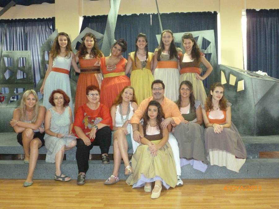 Χορός γυνακών: Καλυψώ Αλμπάνη, Παναγιώτα Γεωργανά, Έλλη Γιαννακούλα, Νεφέλη Ζονάφου, Θεοδώρα Καρμή, Τζίνα Κομποχόλη, Πολυτίμη Μούστου, Δέσποινα Παναγιώταρου, Αναστασία Τζιωρτζίδη, Αρτεμις Κουμουτσάκη, Αντωνία Παυλέα, Αναστασία Τενέντε, Γιώτα Νικητοπούλου.