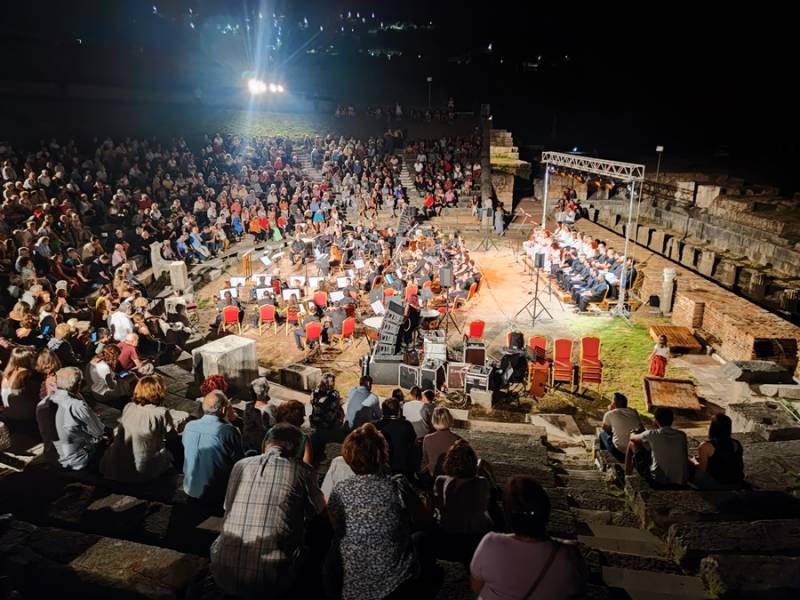 Ο Μεσσήνιος ερμηνευτής Γιάννης Θωμόπουλος και 30μελής χορωδία, με τη συνοδεία της Φιλαρμονικής Ορχήστρας του Δήμου Καλαμάτας υπό τη διεύθυνση του μαέστρου Κώστα Νικολέα, παρουσίασαν στο κοινό που κατέκλεισε το αρχαίο θέατρο μελοποιημένα ποιήματα των δύο βραβευμένων με νόμπελ ποιητών Γιώργου Σεφέρη (Επιφάνια – Αβέρωφ) και Pablo Neruda (Canto General). Κείμενα του Πάμπλο Νερούδα παρουσίασε σε δική της μετάφραση η συγγραφέας Φωτεινή Νικολαΐδου.