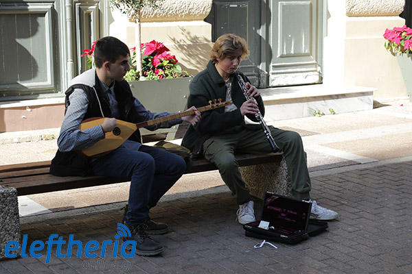 Είτε με τα παραδοσιακά τρίγωνα, είτε με άλλα μουσικά όργανα το κέντρο της πόλης σήμερα το πρωί είχε όπως κάθε χρόνο τέτοια μέρα ένα ιδιαίτερο εορταστικό χρώμα.