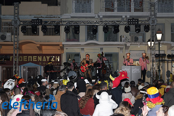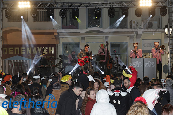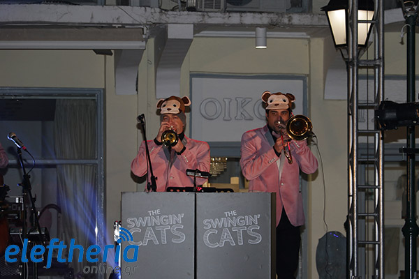 Τα καρναβαλικά πληρώματα παρέλαβαν τα λάβαρα τους ενώ η εκδήλωση περιελάμβανε μουσική από τους “The Swingin’Cats”.
