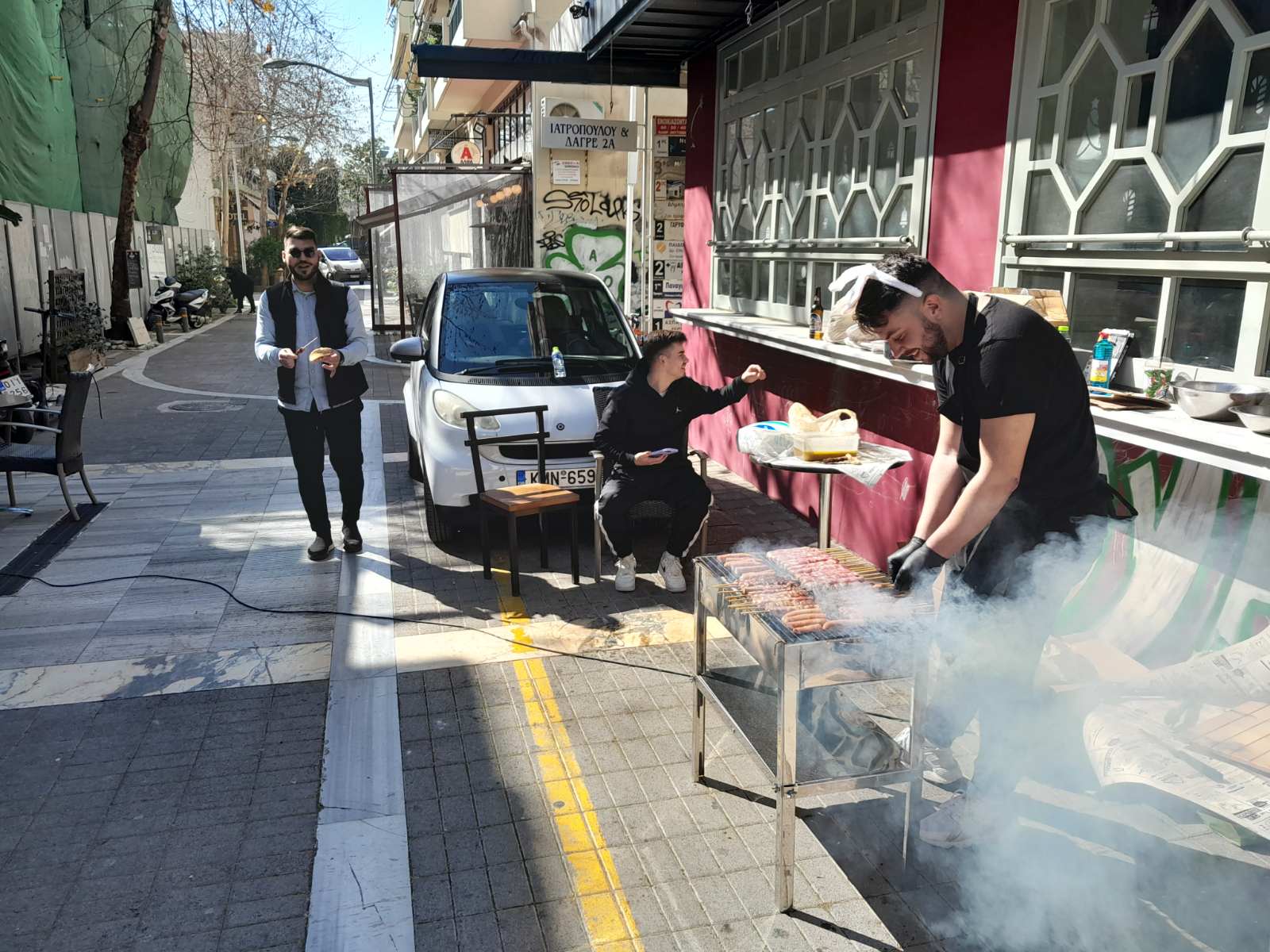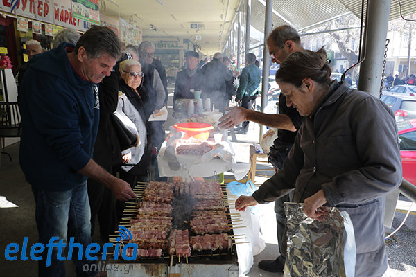 Ψησταριές έχουν στηθεί σε ψητοπωλεία, κρεοπωλεία, καταστήματα, αλλά και σπίτια με τους Καλαματιανούς να μην χάνουν την ευκαιρία για το καθιερωμένο... τσίκνισμα με καλή διάθεση και παρέα.