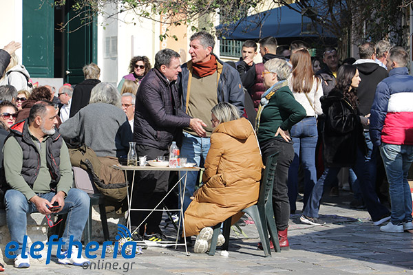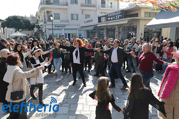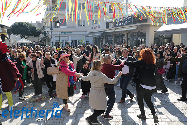 Αρκετός κόσμος ανταποκρίθηκε στο κάλεσμα του δήμου και το μεσημέρι βρέθηκε στο Ιστορικό Κέντρο, μπροστά από το ναό των Αγίων Αποστόλων και συμμετείχε στο γλέντι με το συγκρότημα “Ηχος του Νότου”.