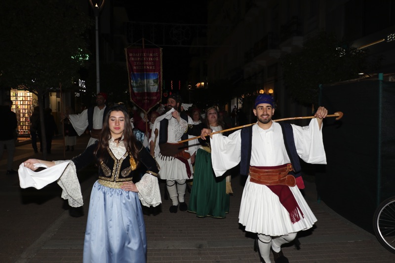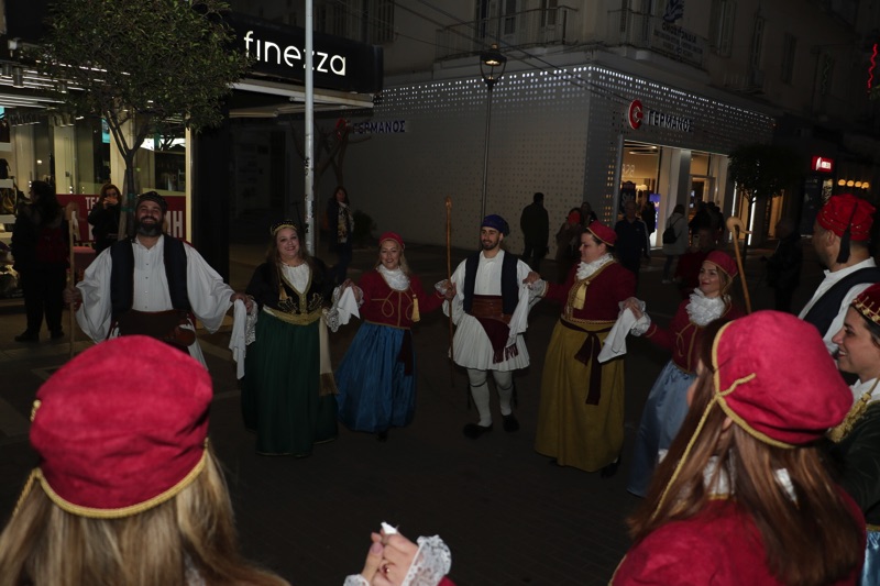 Η ομάδα έκανε στάση στο Ιστορικό Δημαρχείο, όπου ο Γ. Αθανασόπουλος και οι χορευτές κάλεσαν τον δήμαρχο Θανάση Βασιλόπουλο στο καρναβάλι της Μεσσήνης.