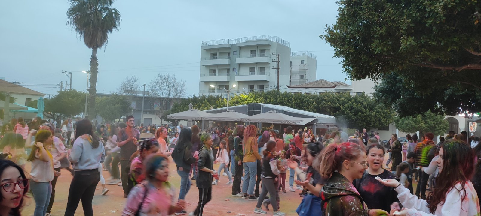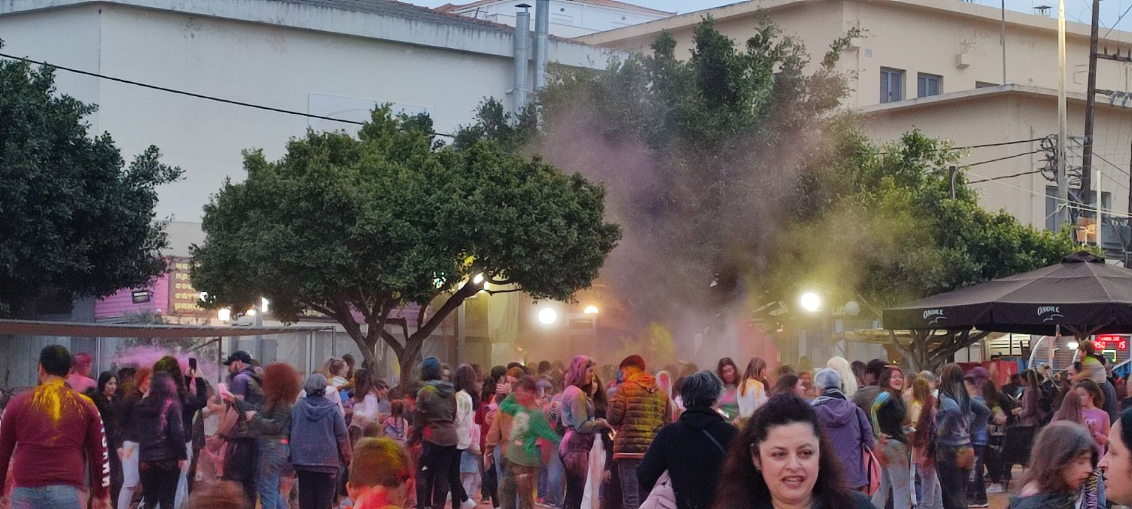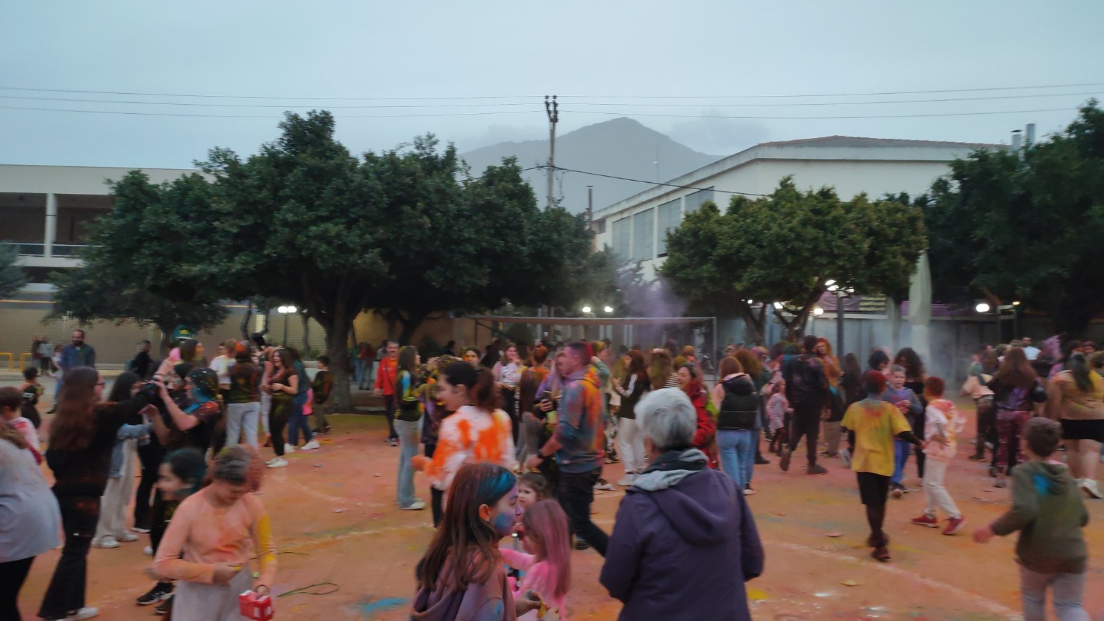Η ιδιότυπη... μάχη χρωμάτων διοργανώθηκε με μέριμνα του Εμπορικού Συλλόγου Κυπαρισσίας και συμμετείχαν μικροί και μεγάλοι με την πλατεία να "πλημμυρίζει" από κόσμο και χρώματα.