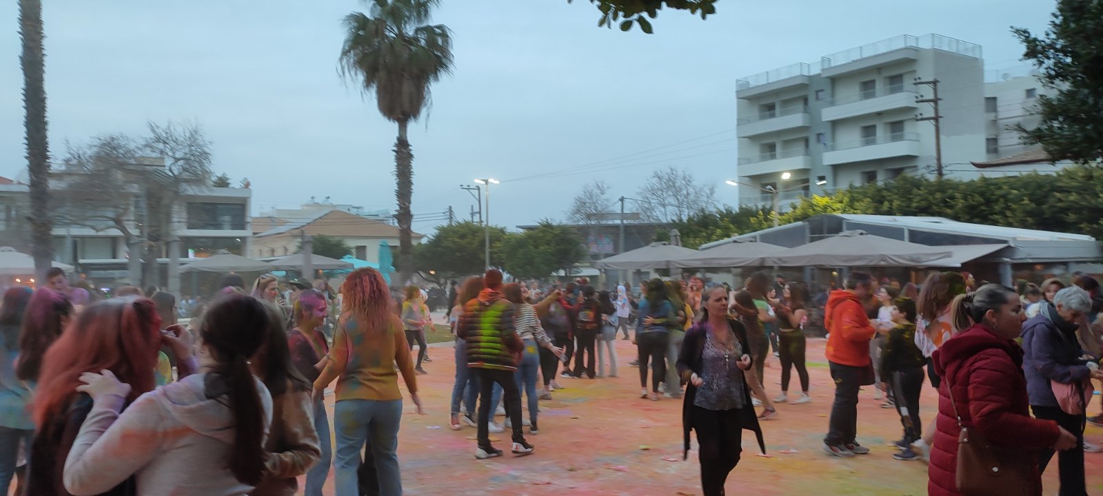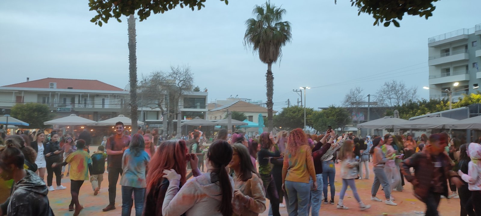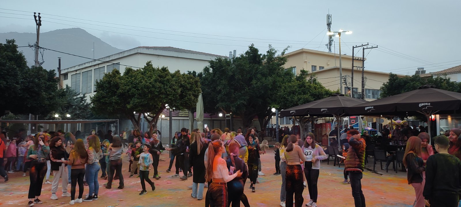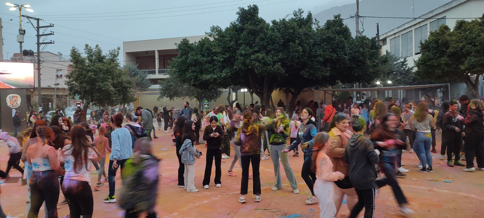 Η ιδιότυπη... μάχη χρωμάτων διοργανώθηκε με μέριμνα του Εμπορικού Συλλόγου Κυπαρισσίας και συμμετείχαν μικροί και μεγάλοι με την πλατεία να "πλημμυρίζει" από κόσμο και χρώματα.