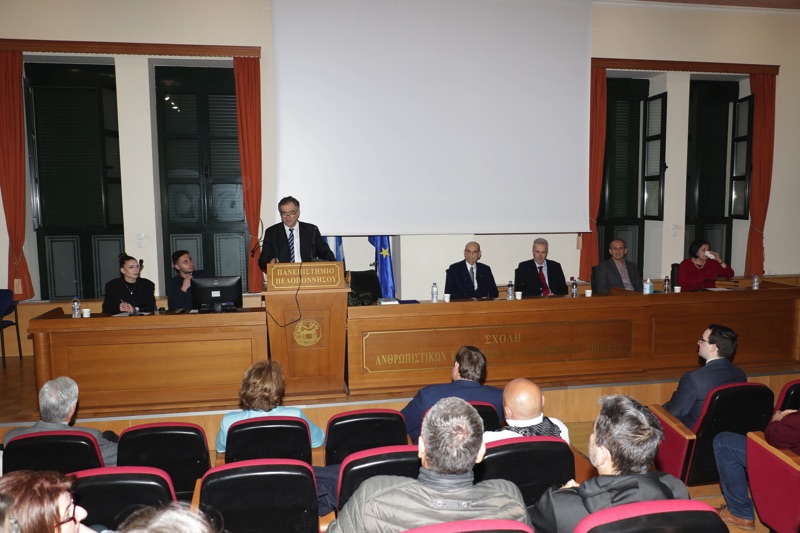 Χαιρετισμούς απηύθυναν ο πρύτανης του Πανεπιστημίου Πελοποννήσου Θανάσης Κατσής, ο κοσμήτορας της Σχολής Ανθρωπιστικών Επιστημών και Πολιτισμικών Σπουδών Νίκος Ζαχαριάς, η πρόεδρος του Τμήματος Ιστορίας - Αρχαιολογίας και Διαχείρισης Πολιτιστικών Αγαθών (ΤΙΑΔΠΑ) Ιωάννα Σπηλιοπούλου, το μέλος του Δ.Σ. του Φοιτητικού Συλλόγου του ΤΙΑΔΠΑ Κωνσταντίνος - Παναγιώτης Δαραβίγκας και η αντιπρόεδρος του Φοιτητικού Συλλόγου του Τμήματος Φιλολογίας Χριστίνα Τσατσούλη.