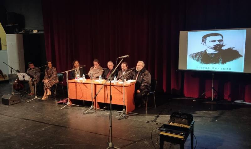 Αφορμή ήταν η εν εξελίξει νέα φιλολογική έκδοση του έργου του από το Ίδρυμα «Κωστής Παλαμάς», το οποίο βρίσκεται στον δέκατο έβδομο τόμο και όταν ολοκληρωθεί θα εκτείνεται σε πενήντα και πλέον τόμους. Μέσα από τις εισηγήσεις τους οι ομιλητές προσέγγισαν το έργο του «Λειτουργού και Ψάλτη», Κωστή Παλαμά, αναδεικνύοντας και υπενθυμίζοντας στο κοινό πολλά στοιχεία από το έργο του. Για το έργο του Ποιητή, μίλησε ο ομότιμος Καθηγητής του Ε.Κ.Π.Α. και Πρόεδρος του Ιδρύματος «Κωστής Παλαμάς» Κωνσταντίνος Κασίνης, ο Καθηγητής νεοελληνικής φιλολογίας και Πρόεδρος του τμήματος φιλολογίας του Παν/μίου Πελοποννήσου Γιώργος Ανδρειωμένος, ο Καθηγητής Νεοελληνικής φιλολογίας του Ε.Κ.Π.Α. Ευριπίδης Γαραντούδης και η Αναπληρώτρια Καθηγήτρια φιλολογίας του Παν/μίου Πάτρας Άννα Κατσιγιάννη. Κατά την εκδήλωση ακούστηκε η φωνή του Κ. Παλαμά να απαγγέλει, ενώ χαρακτηριστικά του ποιήματα διάβασε ο ποιητής και δοκιμιογράφος Δημήτρης Κοσμόπουλος. Η Μαρία Κρασοπούλου και ο Νικόλας Παλαιολόγος απέδωσαν μελοποιημένα έργα του Έλληνα ποιητή.