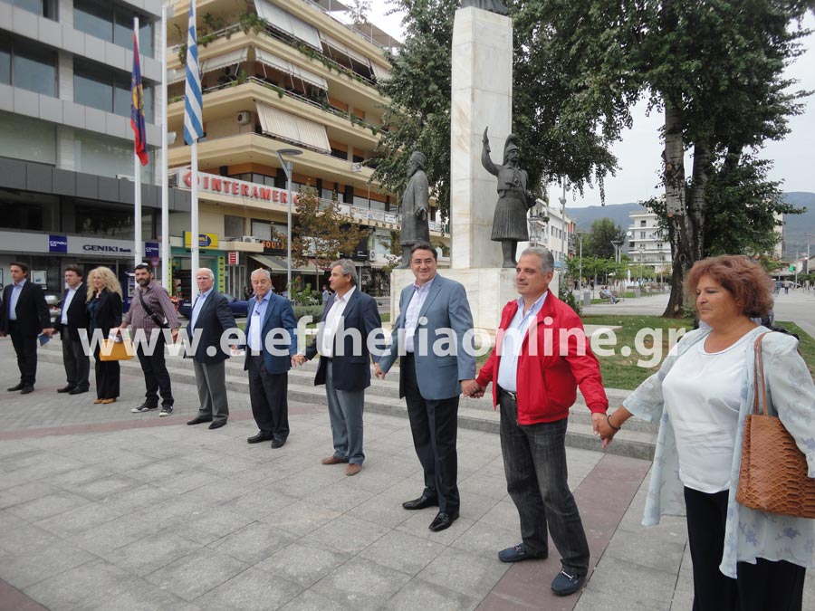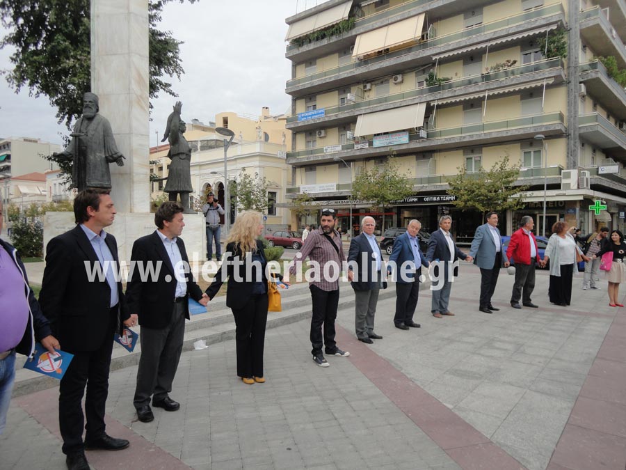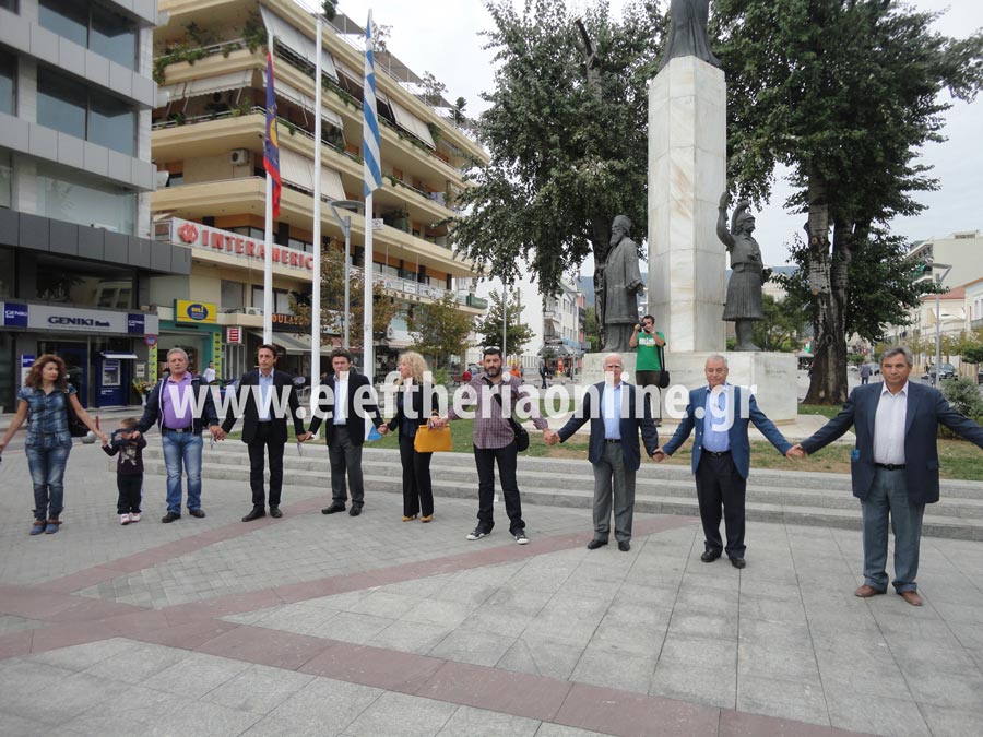 Γράφτηκε από την ΕΛΕΥΘΕΡΙΑ OnlineΑνθρώπινη αλυσίδα κατά της βίας απ’ όπου κι αν προέρχεται, πραγματοποίησαν σήμερα το απόγευμα στην κεντρική πλατεία της Καλαμάτας, τοπικά στελέχη και μέλη της Νέας Δημοκρατίας.