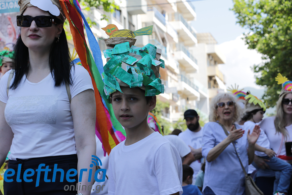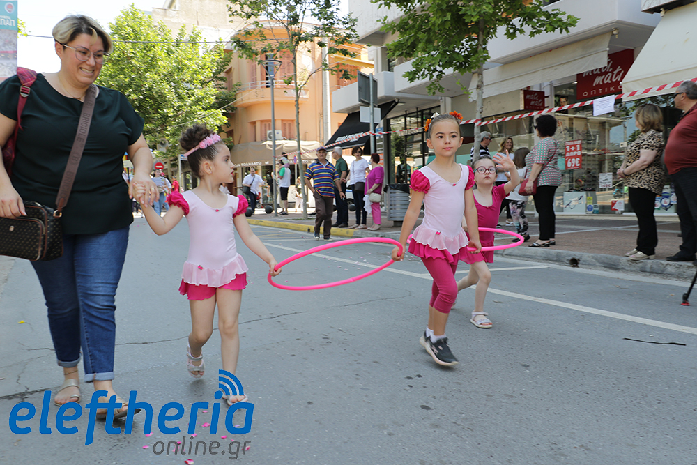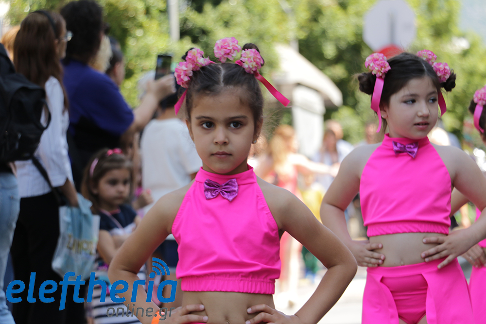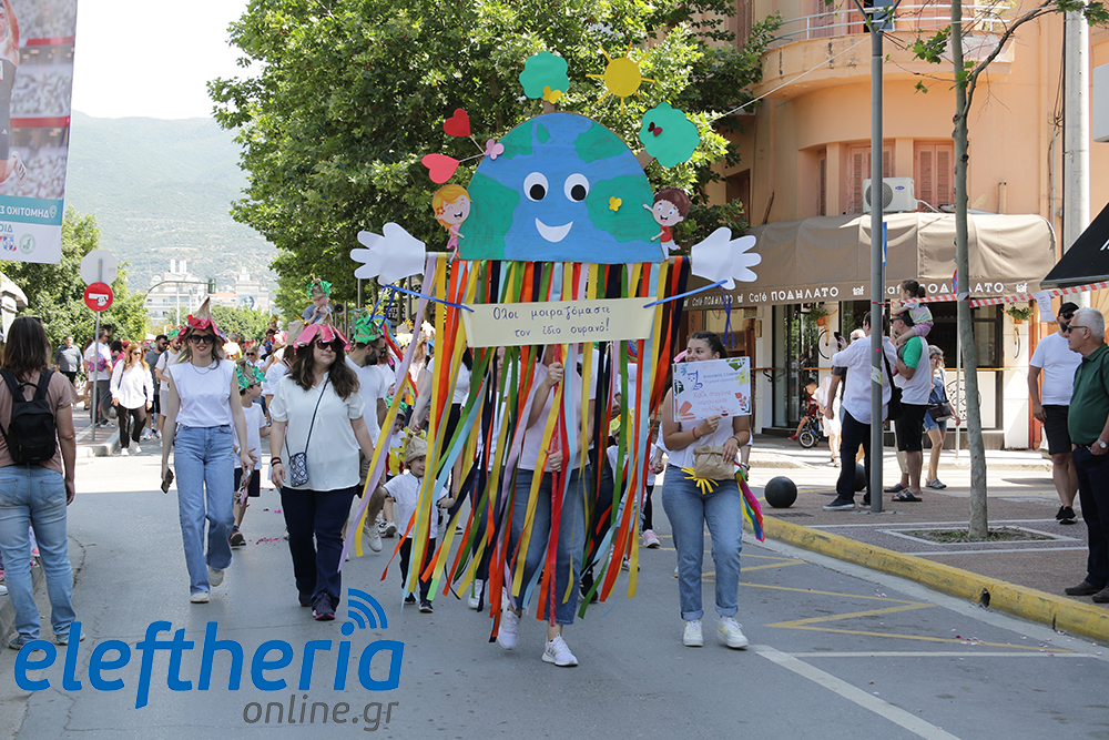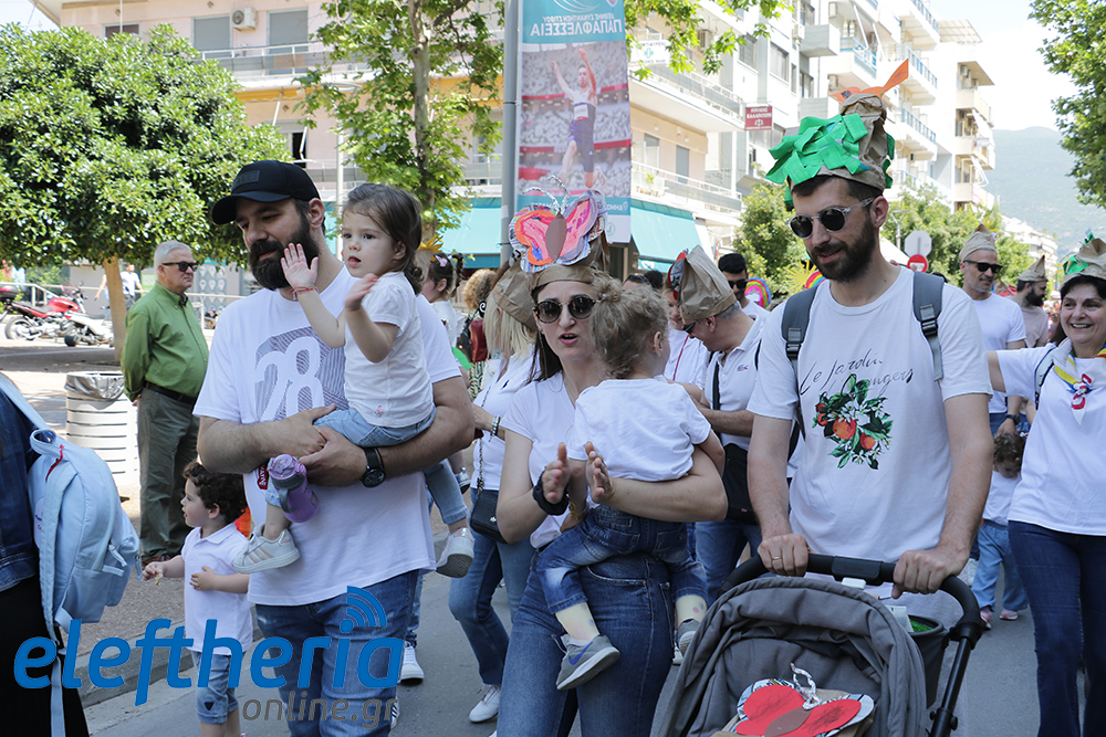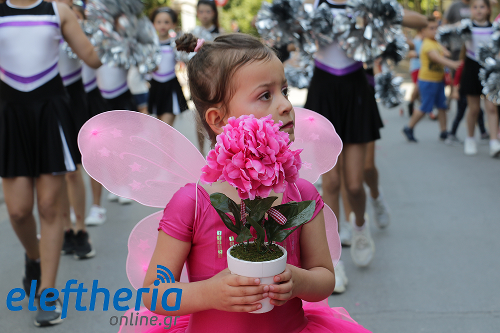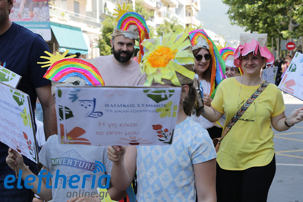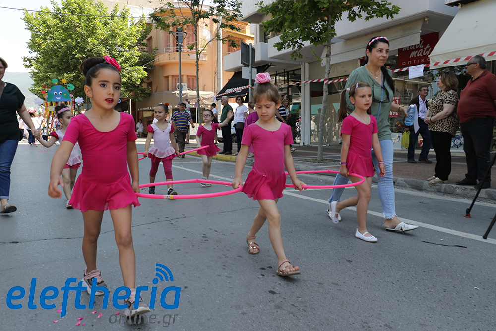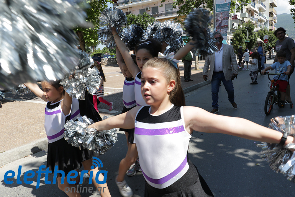 Μέλη χορευτικών και γυμναστικών συλλόγων, μικροί μαθητές με τους γονείς τους, αλλά και παιδιά από διάφορα καλλιτεχνικά σχήματα έδωσαν πολύ όμορφο χρώμα στην πόλη ξεκινώντας την παρέλαση από το νότιο τμήμα της κεντρικής πλατείας και καταλήγοντας στον χώρο του πατινάζ στο Πάρκο Σιδηροδρόμων.