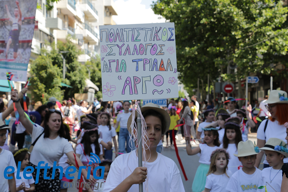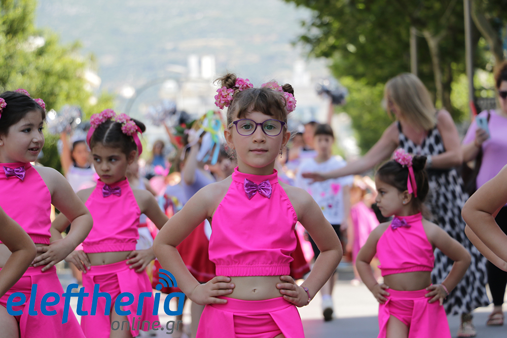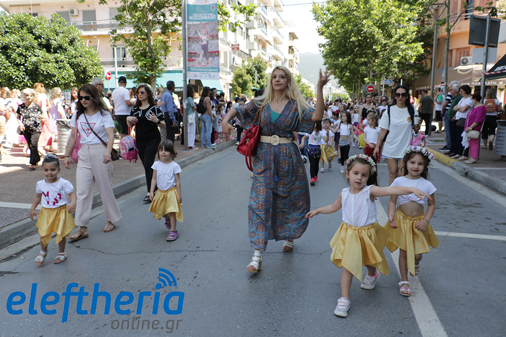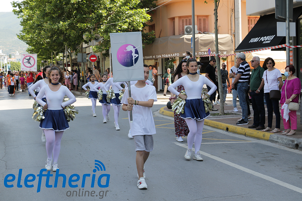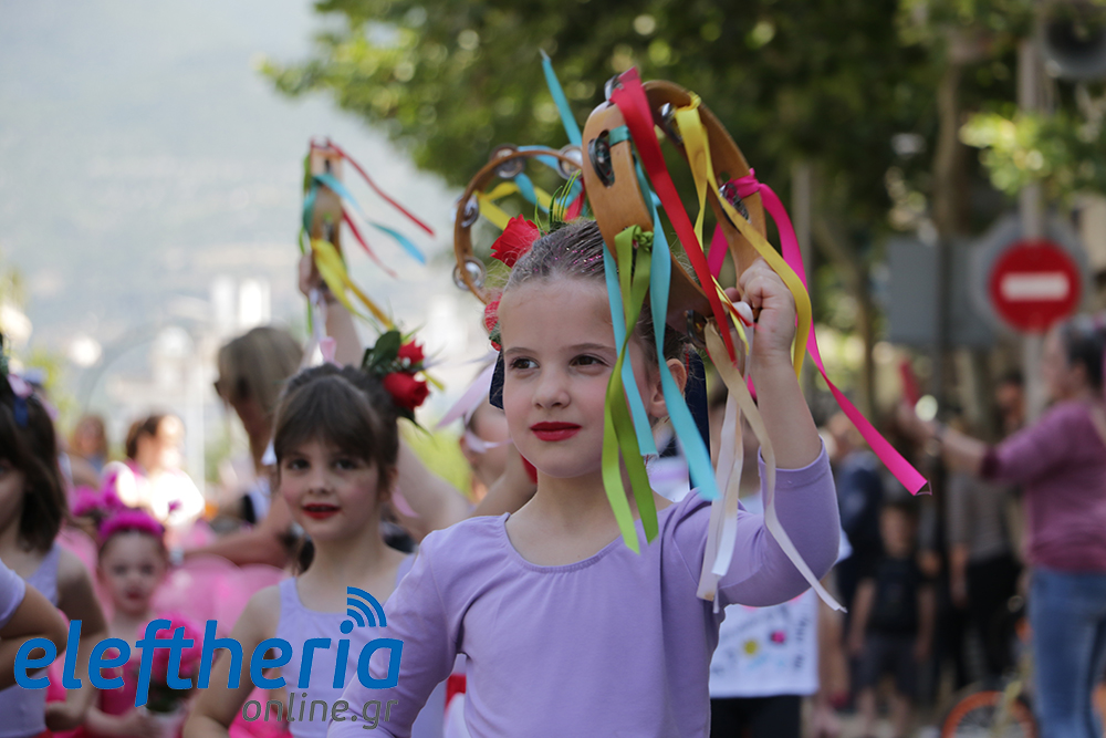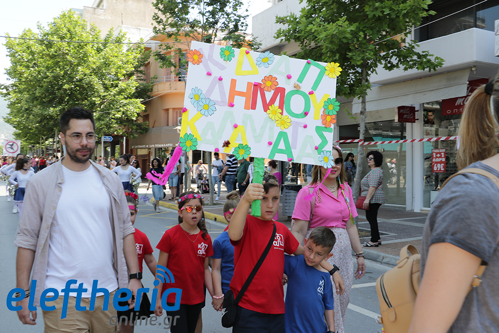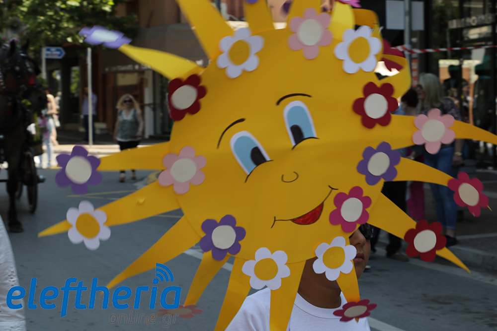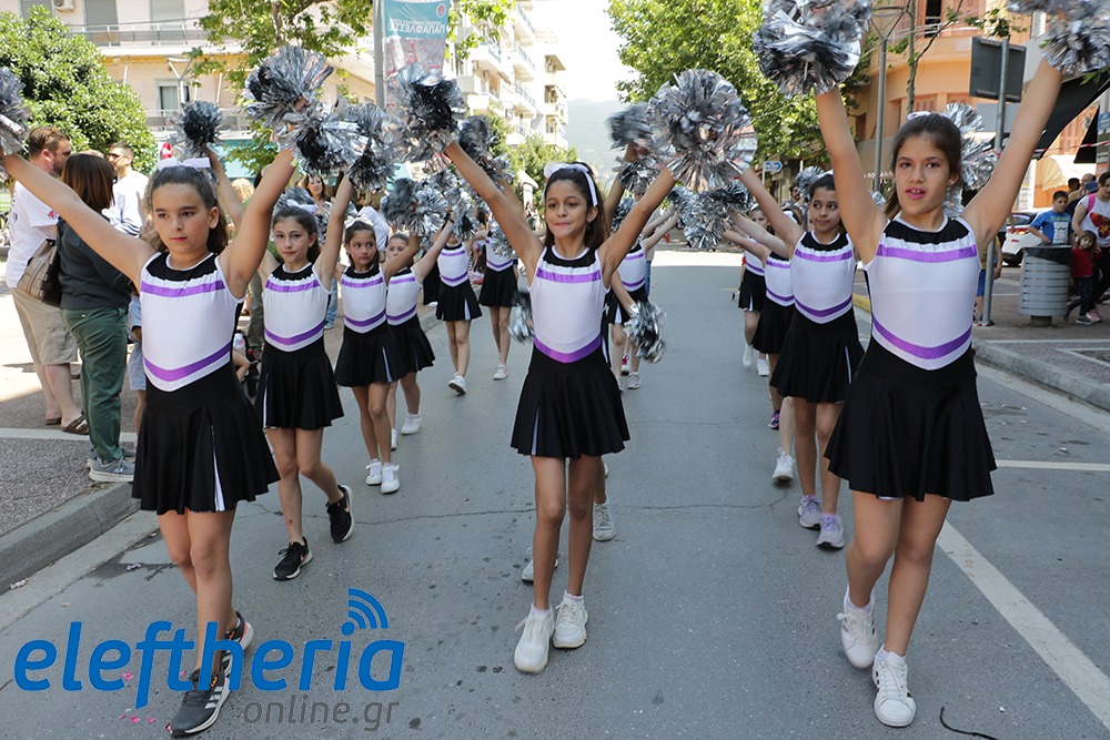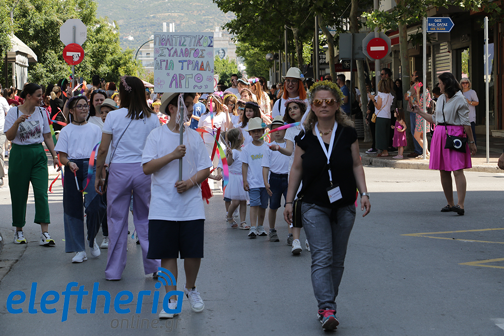 Μέλη χορευτικών και γυμναστικών συλλόγων, μικροί μαθητές με τους γονείς τους, αλλά και παιδιά από διάφορα καλλιτεχνικά σχήματα έδωσαν πολύ όμορφο χρώμα στην πόλη ξεκινώντας την παρέλαση από το νότιο τμήμα της κεντρικής πλατείας και καταλήγοντας στον χώρο του πατινάζ στο Πάρκο Σιδηροδρόμων.