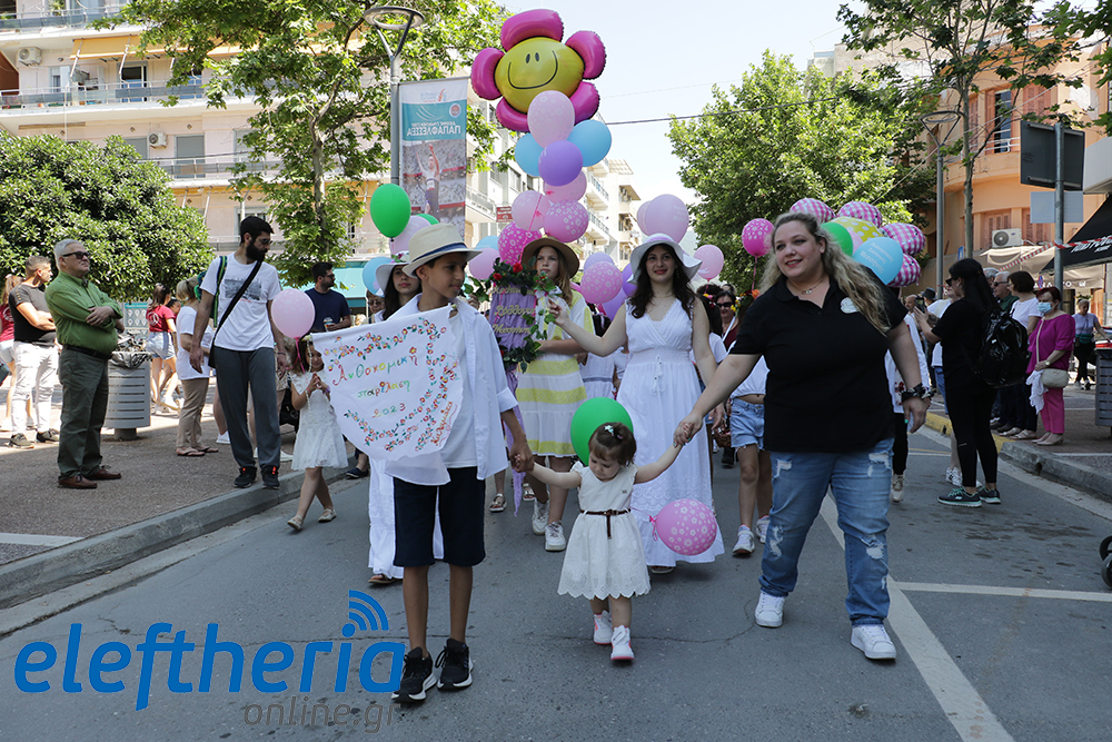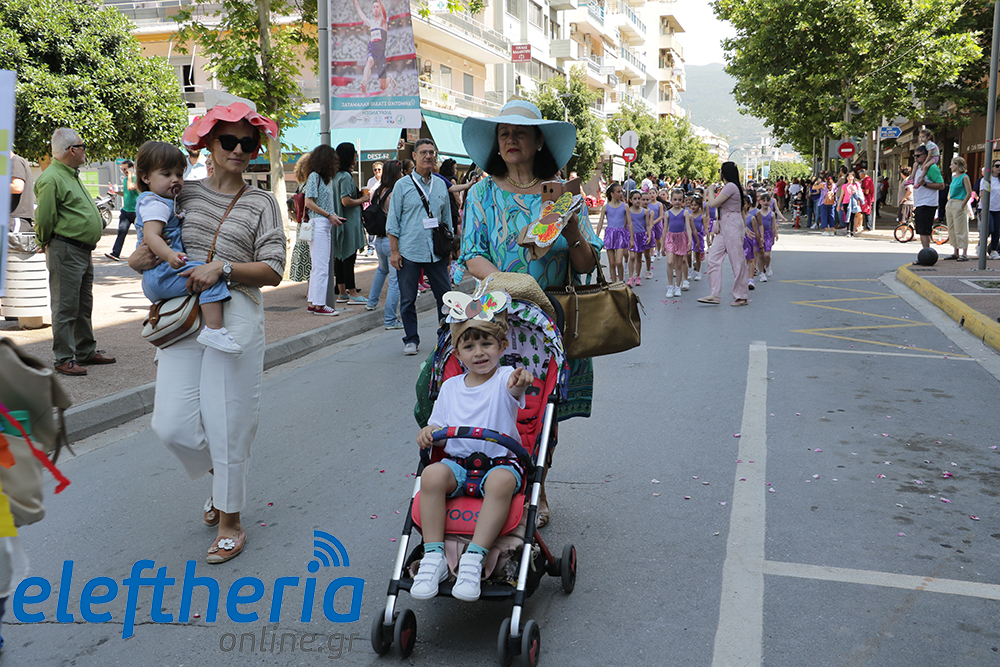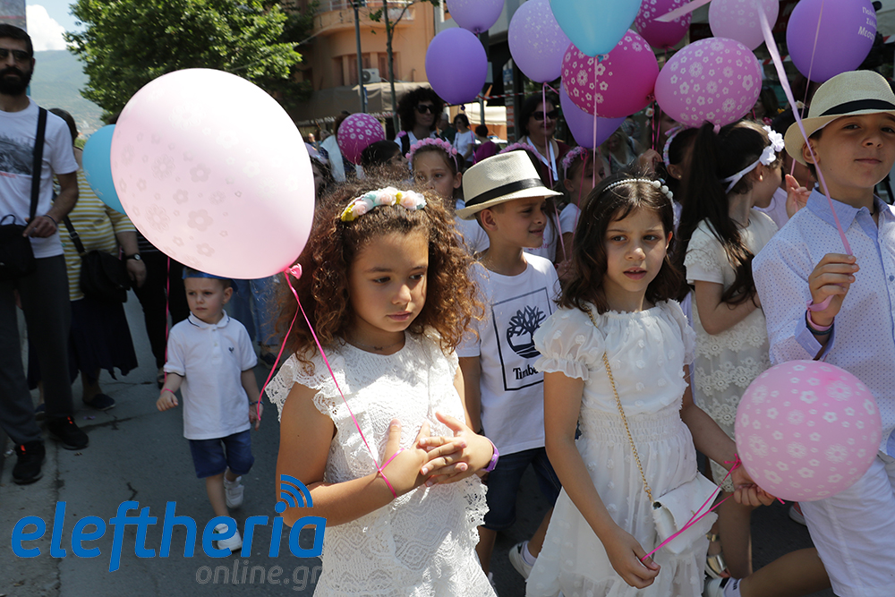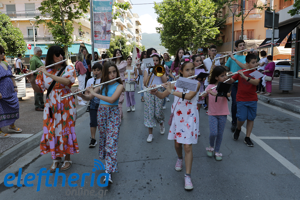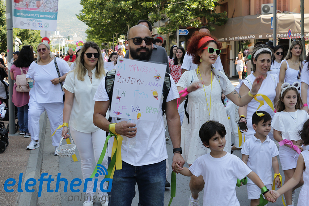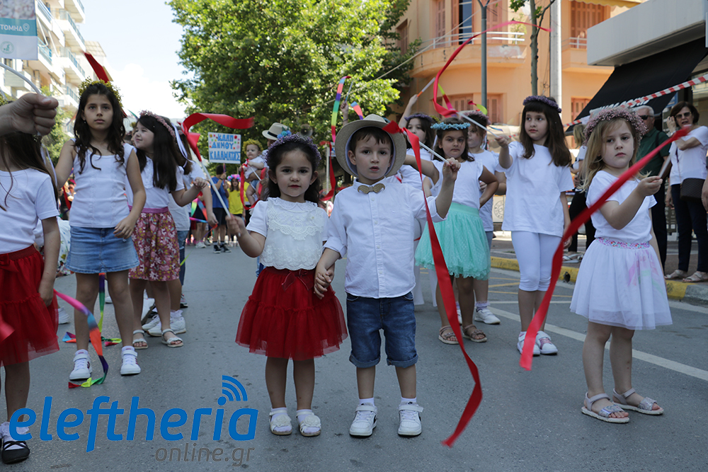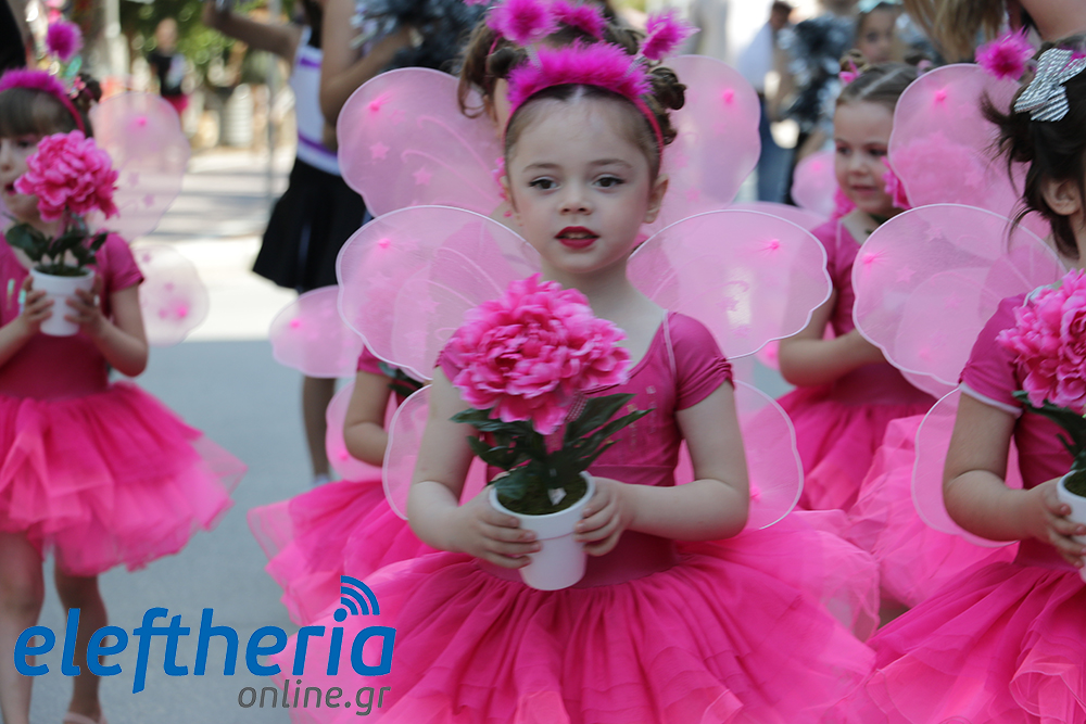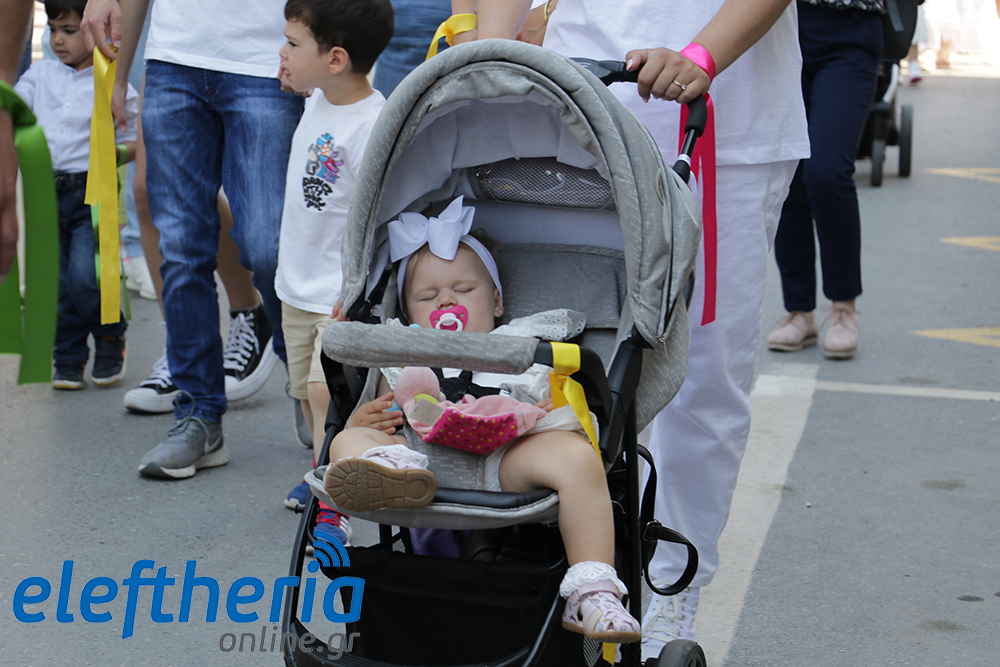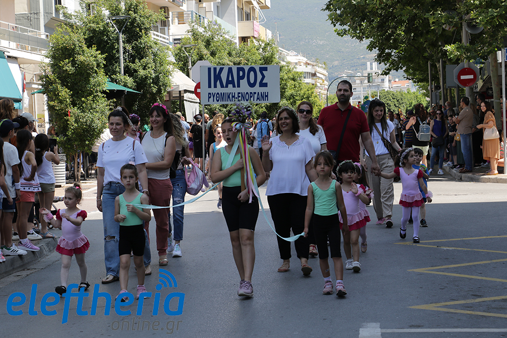 Μέλη χορευτικών και γυμναστικών συλλόγων, μικροί μαθητές με τους γονείς τους, αλλά και παιδιά από διάφορα καλλιτεχνικά σχήματα έδωσαν πολύ όμορφο χρώμα στην πόλη ξεκινώντας την παρέλαση από το νότιο τμήμα της κεντρικής πλατείας και καταλήγοντας στον χώρο του πατινάζ στο Πάρκο Σιδηροδρόμων.