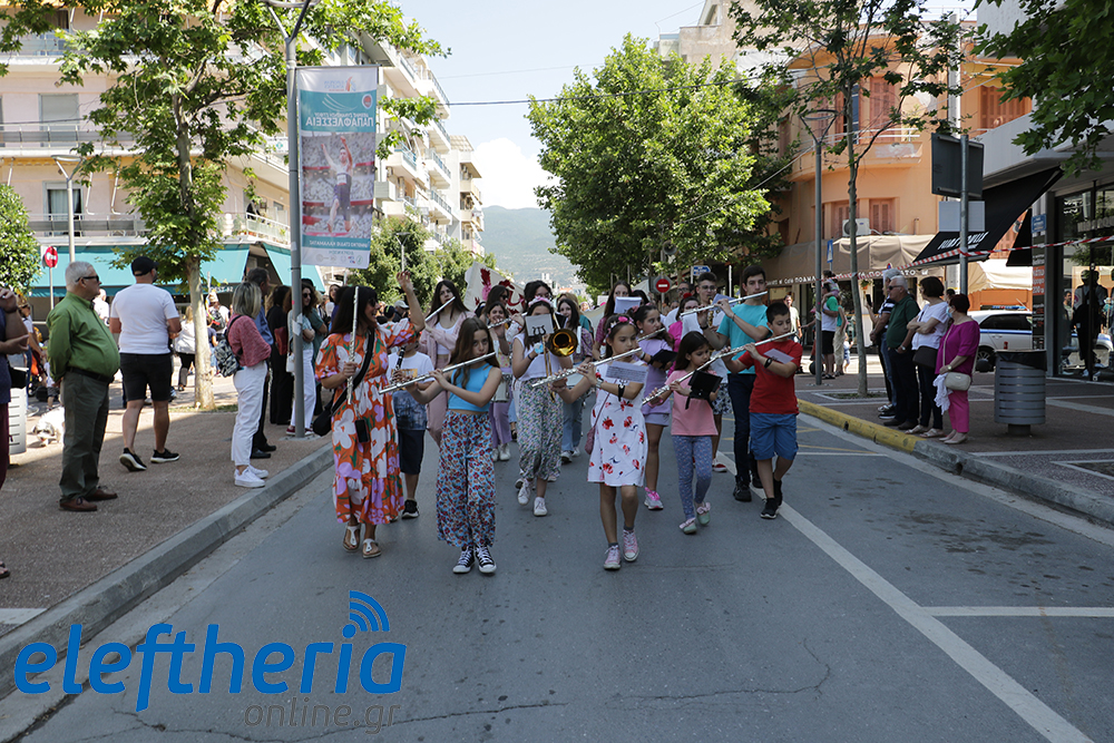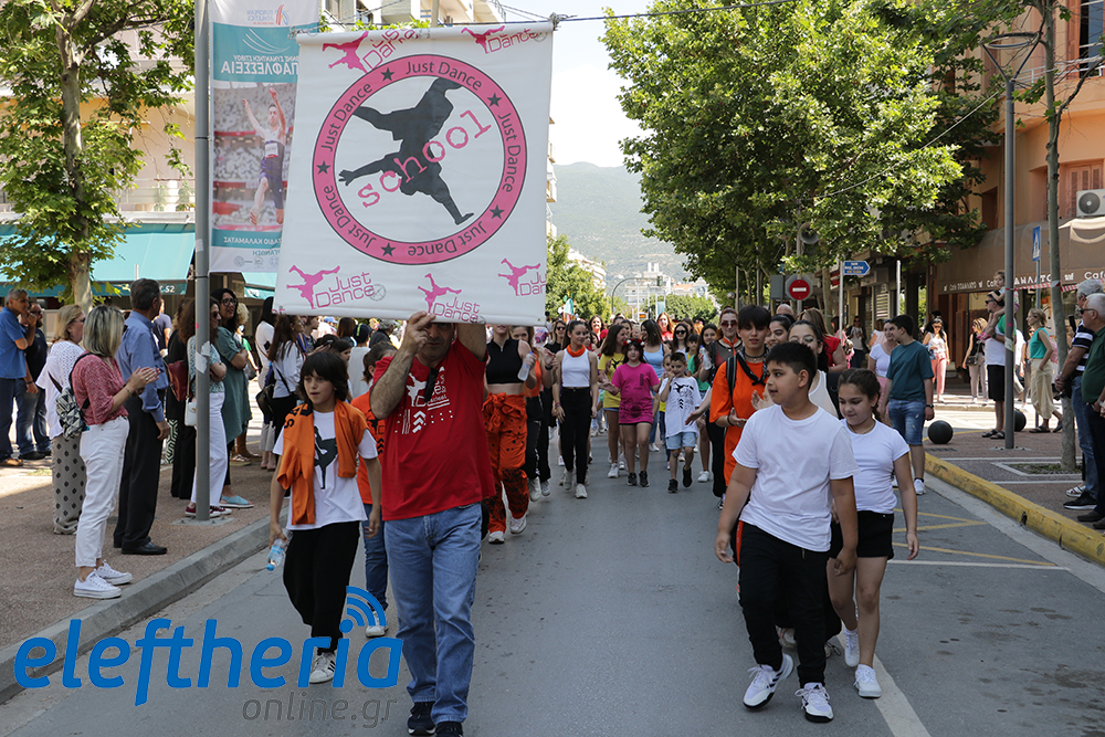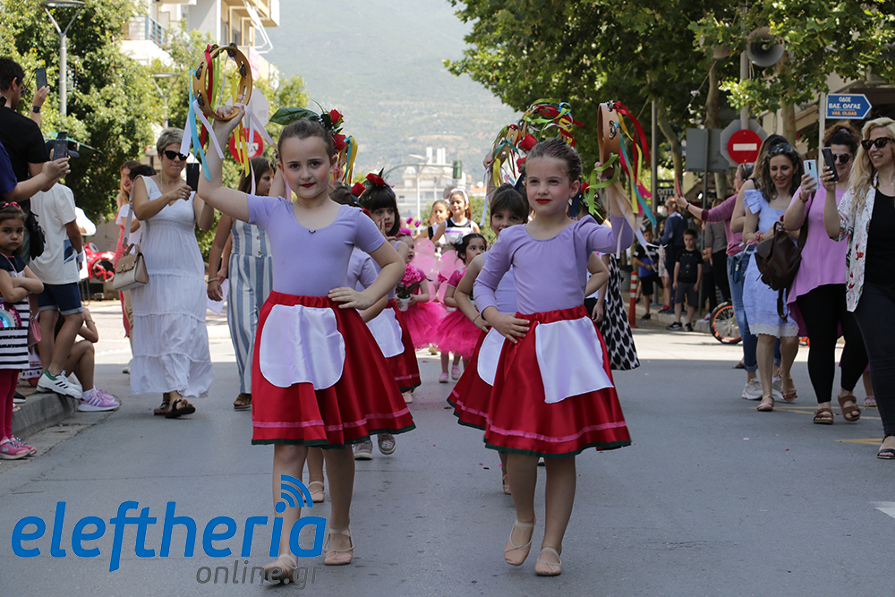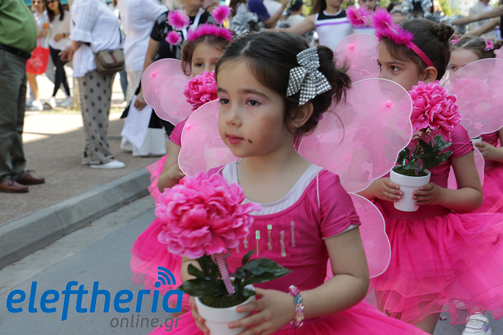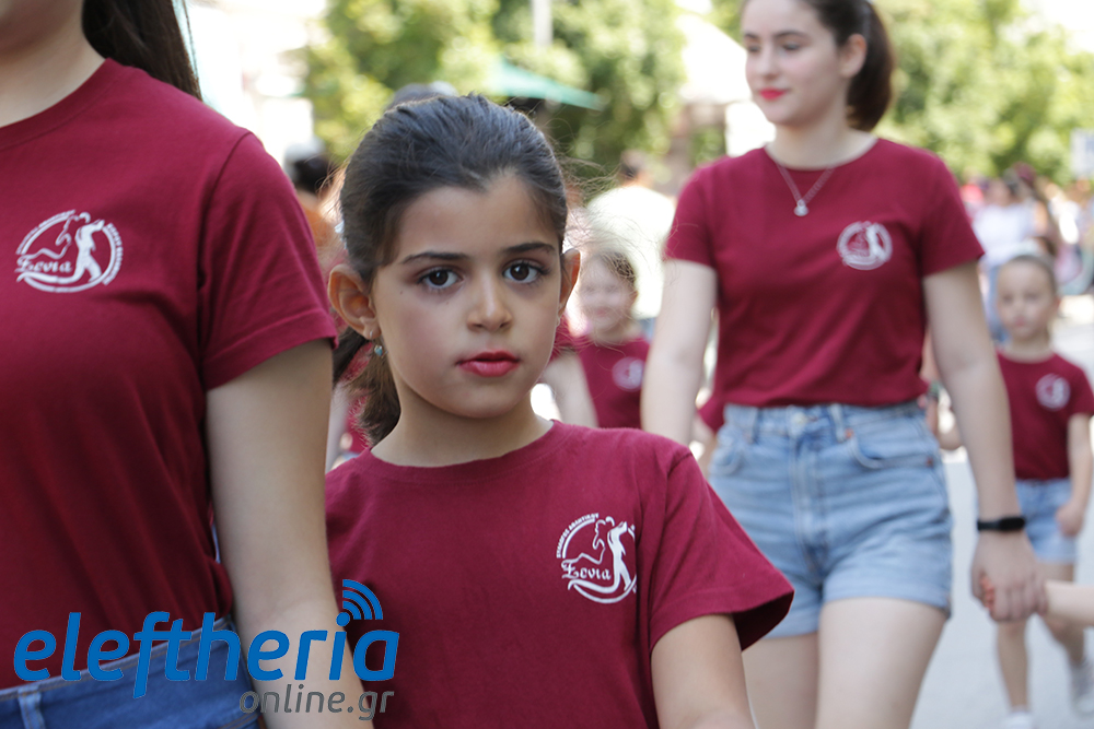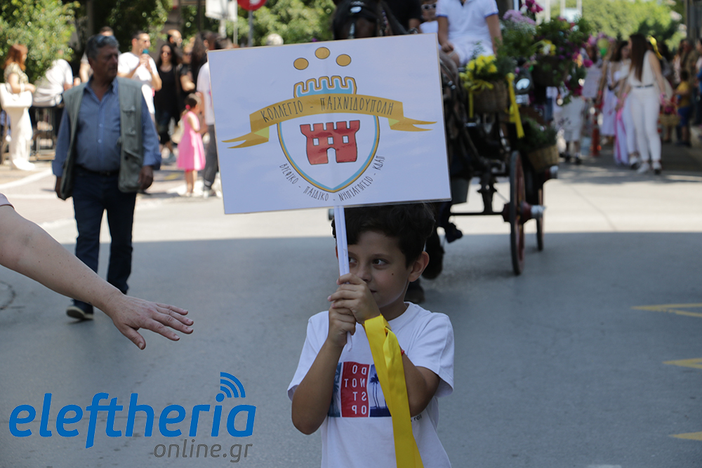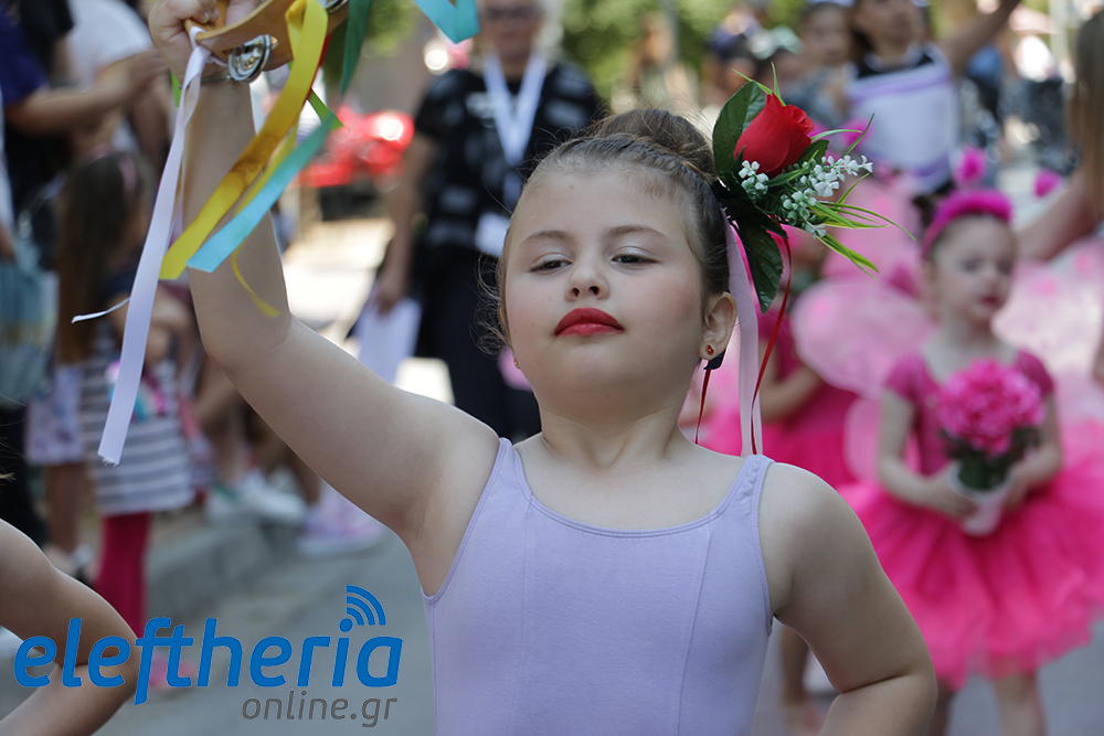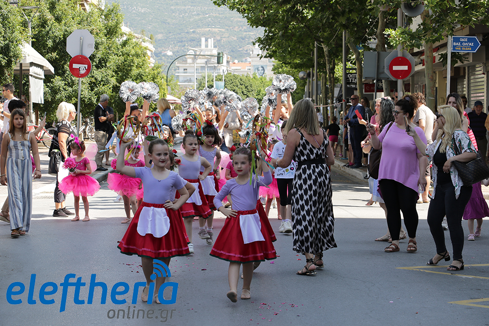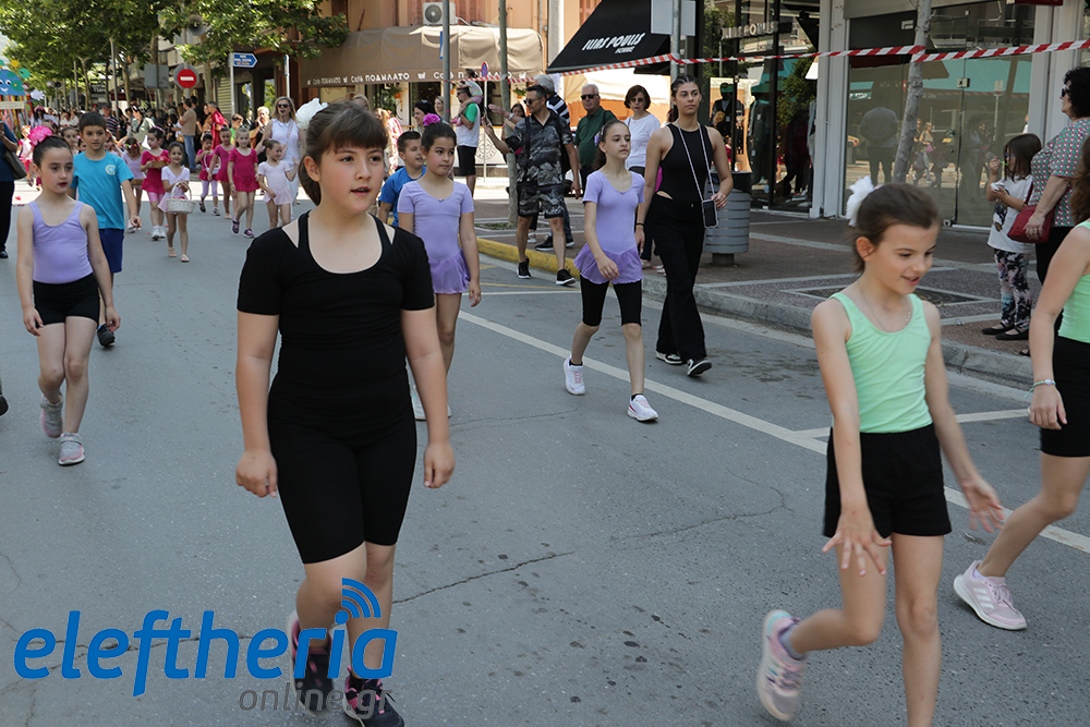 Μέλη χορευτικών και γυμναστικών συλλόγων, μικροί μαθητές με τους γονείς τους, αλλά και παιδιά από διάφορα καλλιτεχνικά σχήματα έδωσαν πολύ όμορφο χρώμα στην πόλη ξεκινώντας την παρέλαση από το νότιο τμήμα της κεντρικής πλατείας και καταλήγοντας στον χώρο του πατινάζ στο Πάρκο Σιδηροδρόμων.