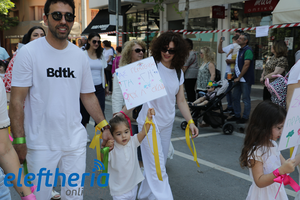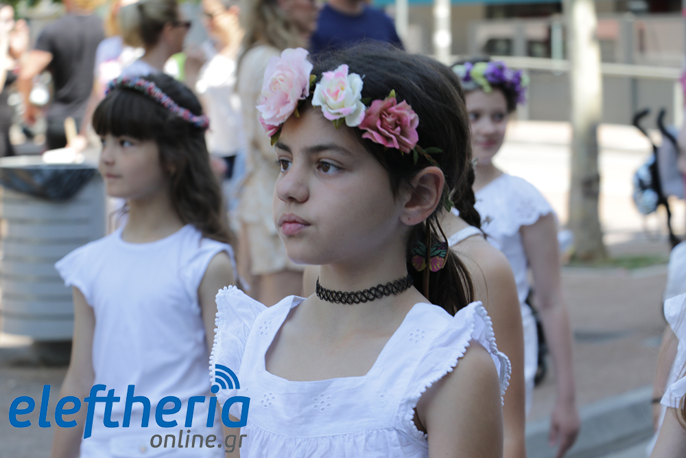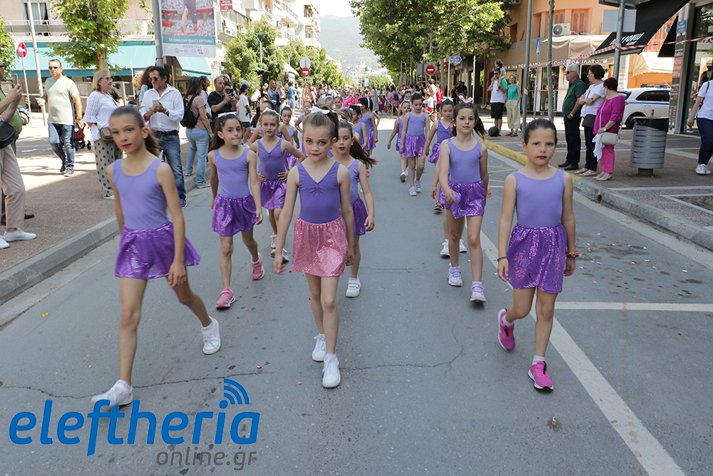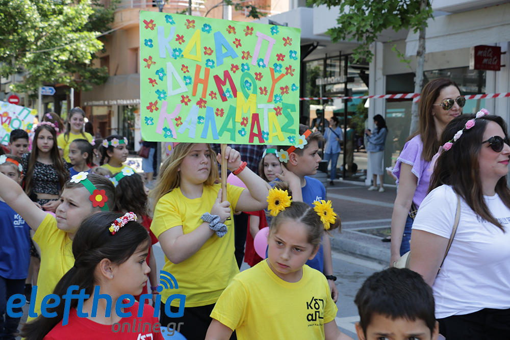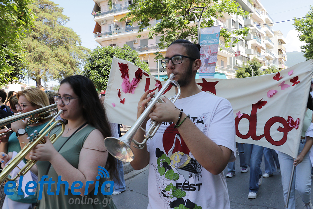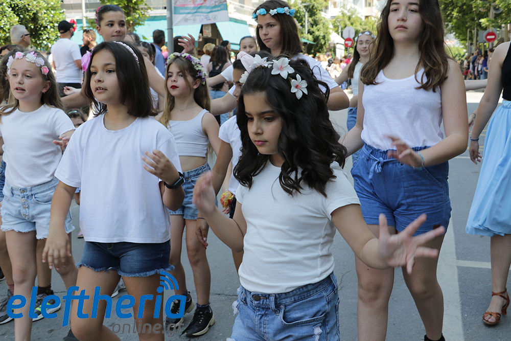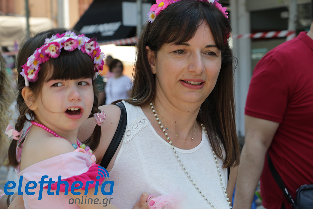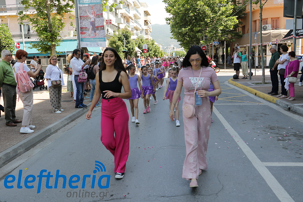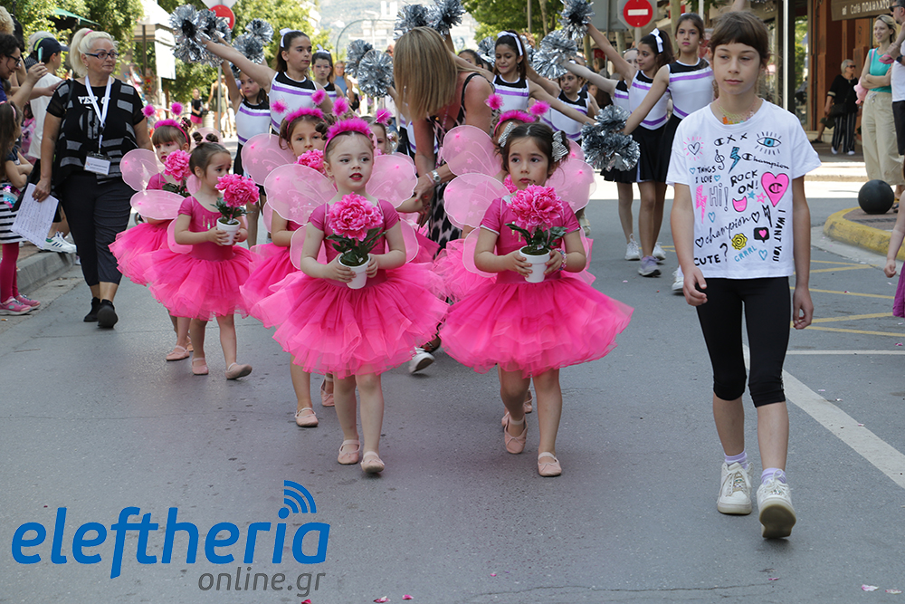 Μέλη χορευτικών και γυμναστικών συλλόγων, μικροί μαθητές με τους γονείς τους, αλλά και παιδιά από διάφορα καλλιτεχνικά σχήματα έδωσαν πολύ όμορφο χρώμα στην πόλη ξεκινώντας την παρέλαση από το νότιο τμήμα της κεντρικής πλατείας και καταλήγοντας στον χώρο του πατινάζ στο Πάρκο Σιδηροδρόμων.
