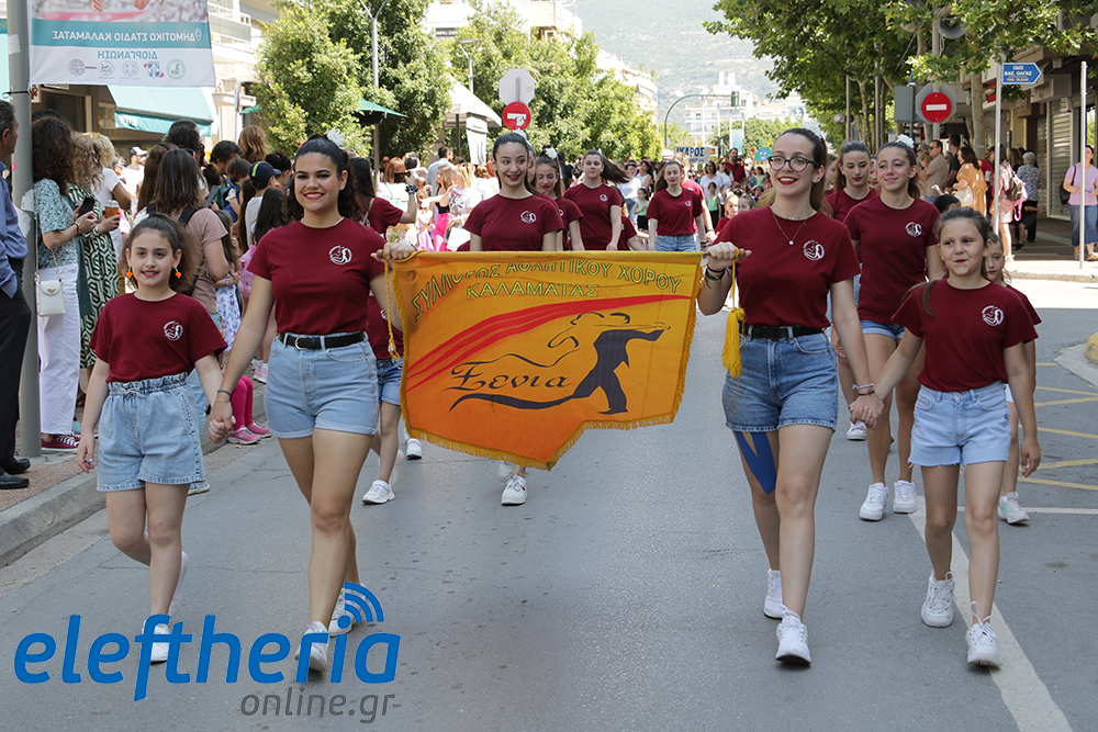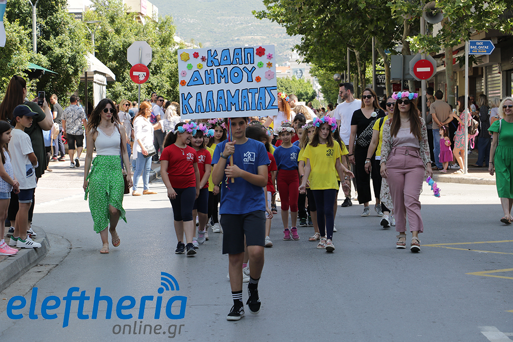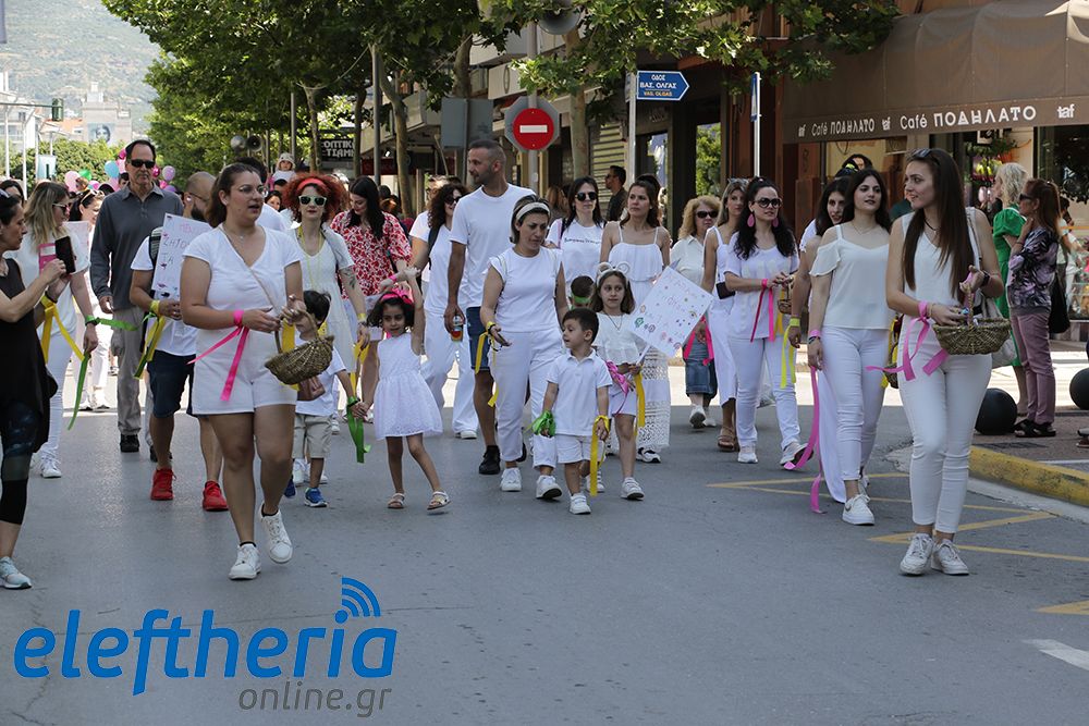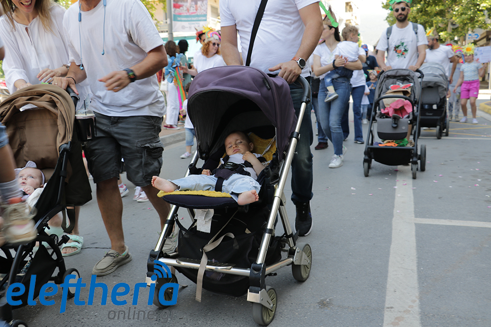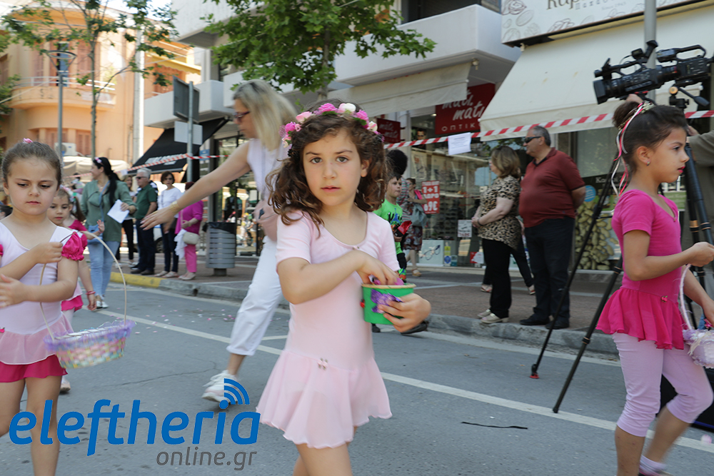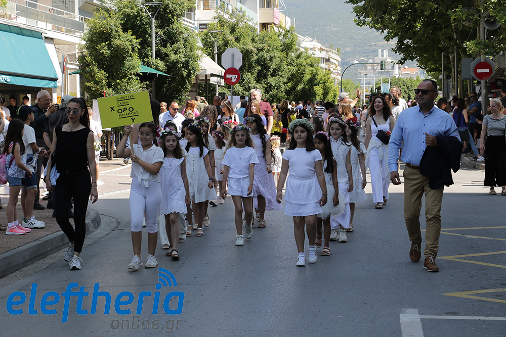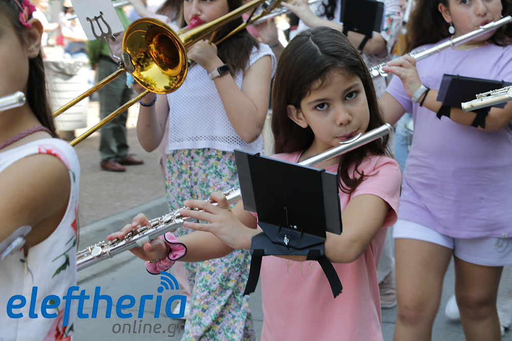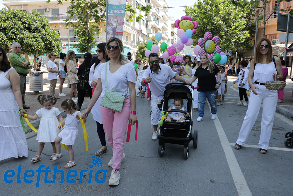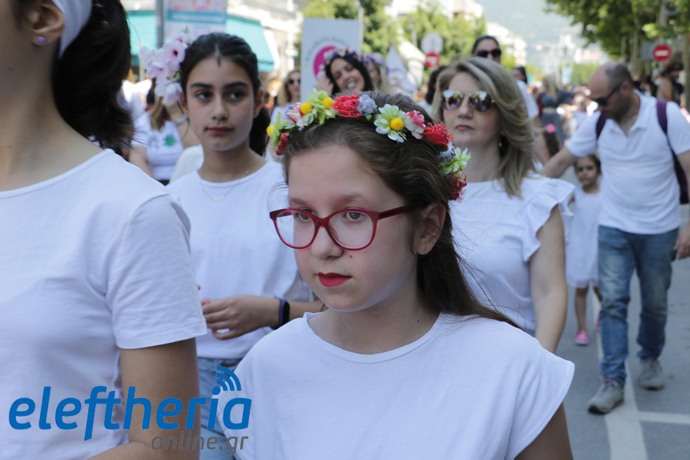 Μέλη χορευτικών και γυμναστικών συλλόγων, μικροί μαθητές με τους γονείς τους, αλλά και παιδιά από διάφορα καλλιτεχνικά σχήματα έδωσαν πολύ όμορφο χρώμα στην πόλη ξεκινώντας την παρέλαση από το νότιο τμήμα της κεντρικής πλατείας και καταλήγοντας στον χώρο του πατινάζ στο Πάρκο Σιδηροδρόμων.