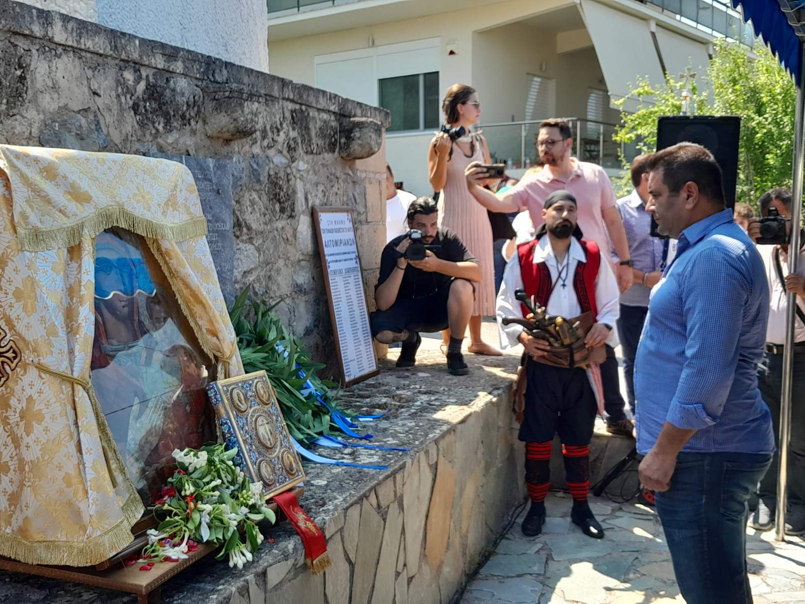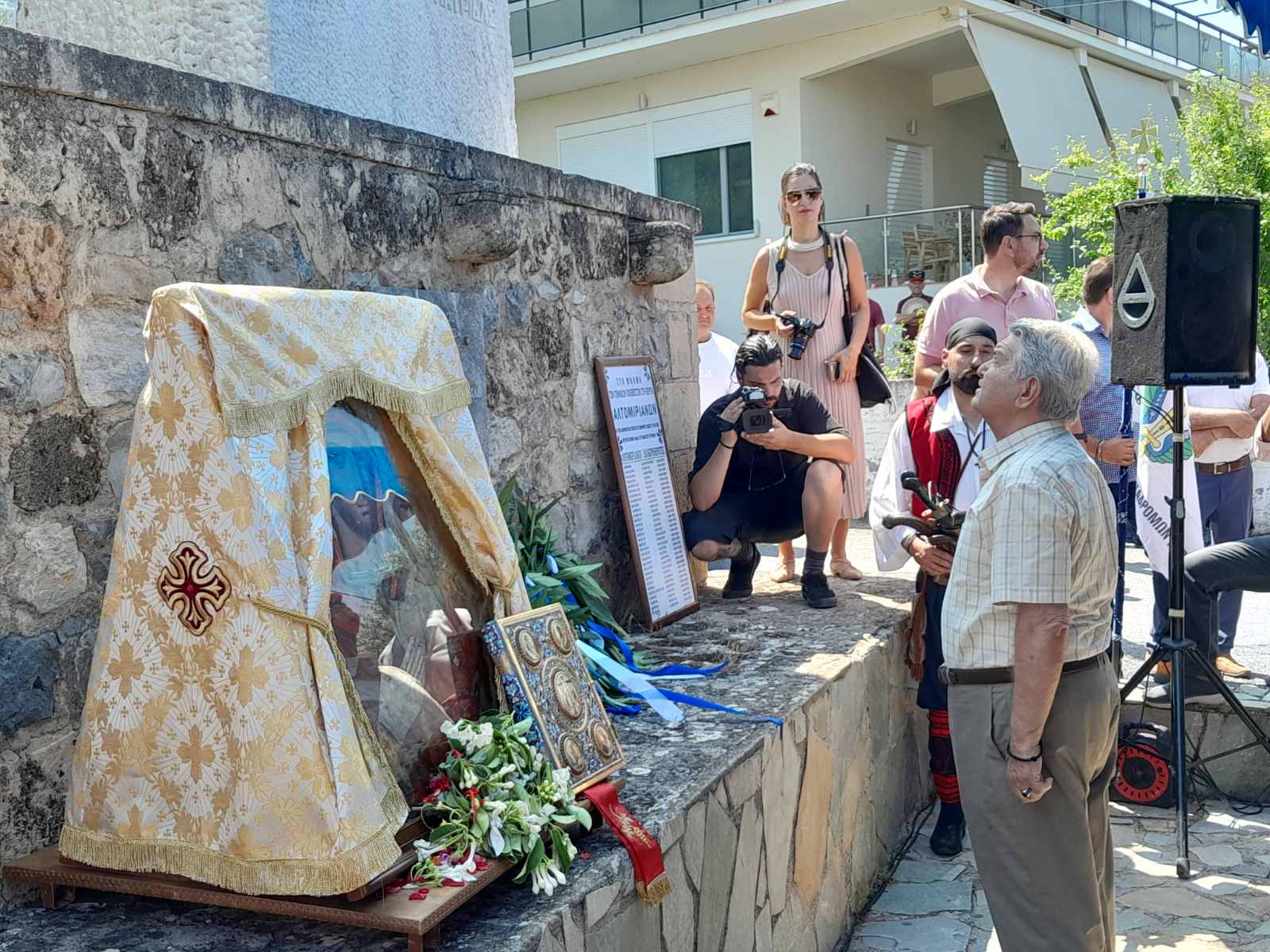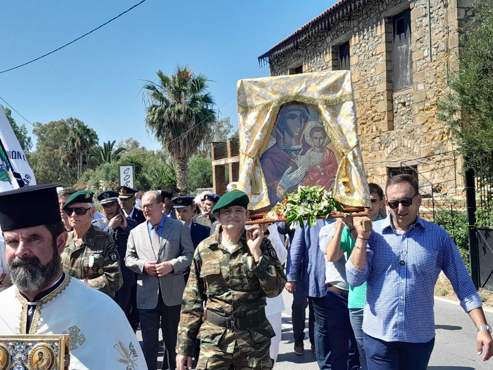 Ακολούθησε λιτανεία της εικόνας της Παναγίας της Ελπιδοφόρου έως τη θέση Μάνδρα Αλμυρού κι επιμνημόσυνη δέηση στο ηρώο των πεσόντων.