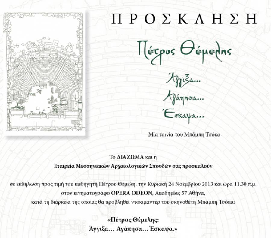 Γράφτηκε από την ΕΛΕΥΘΕΡΙΑ OnlineΤο πορτρέτο του καθηγητή Πέτρου Θέμελη μέσα από ντοκιμαντέρ που δημιούργησε ο γνωστός σκηνοθέτης Μπάμπης Τσόκας, θα παρουσιαστεί στην Αθήνα και στη συνέχεια στη Μεσσήνη.