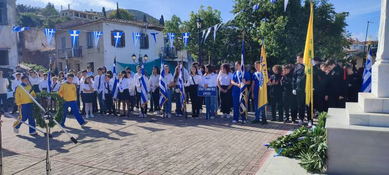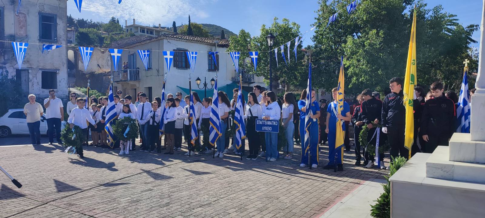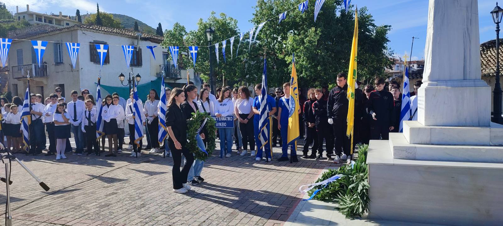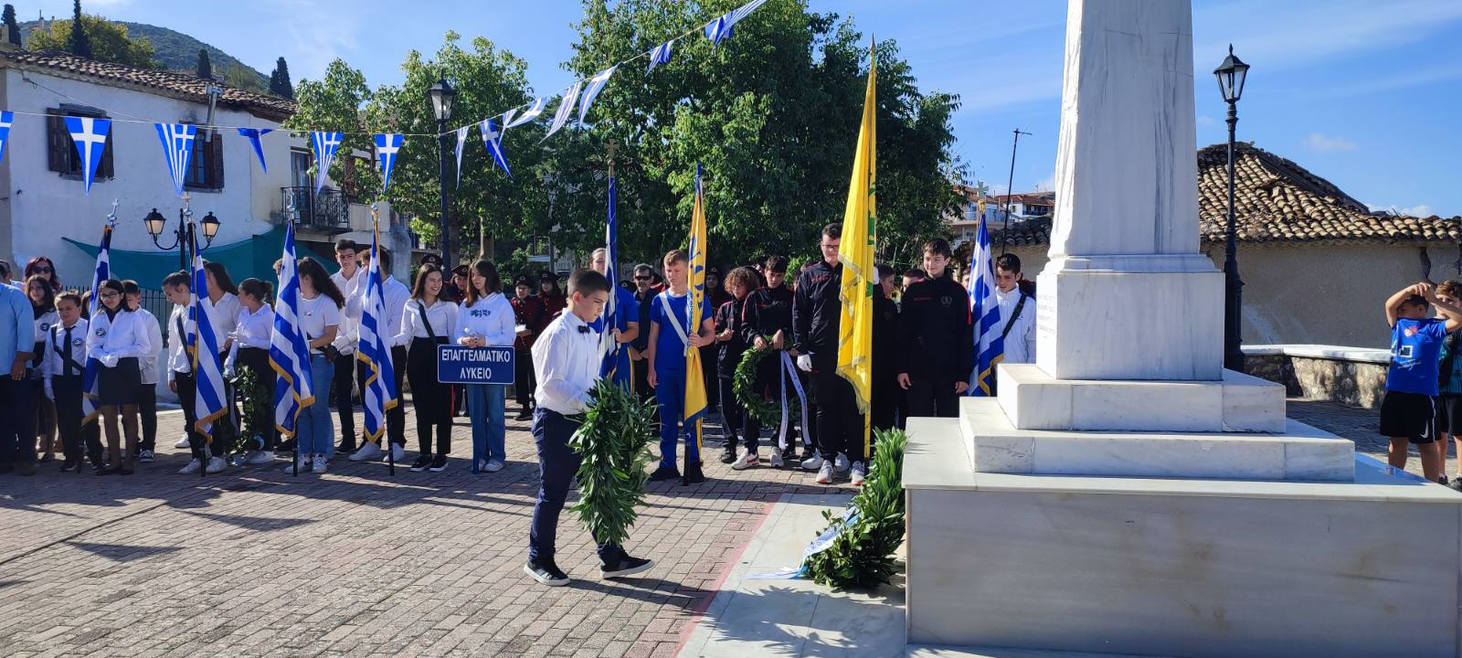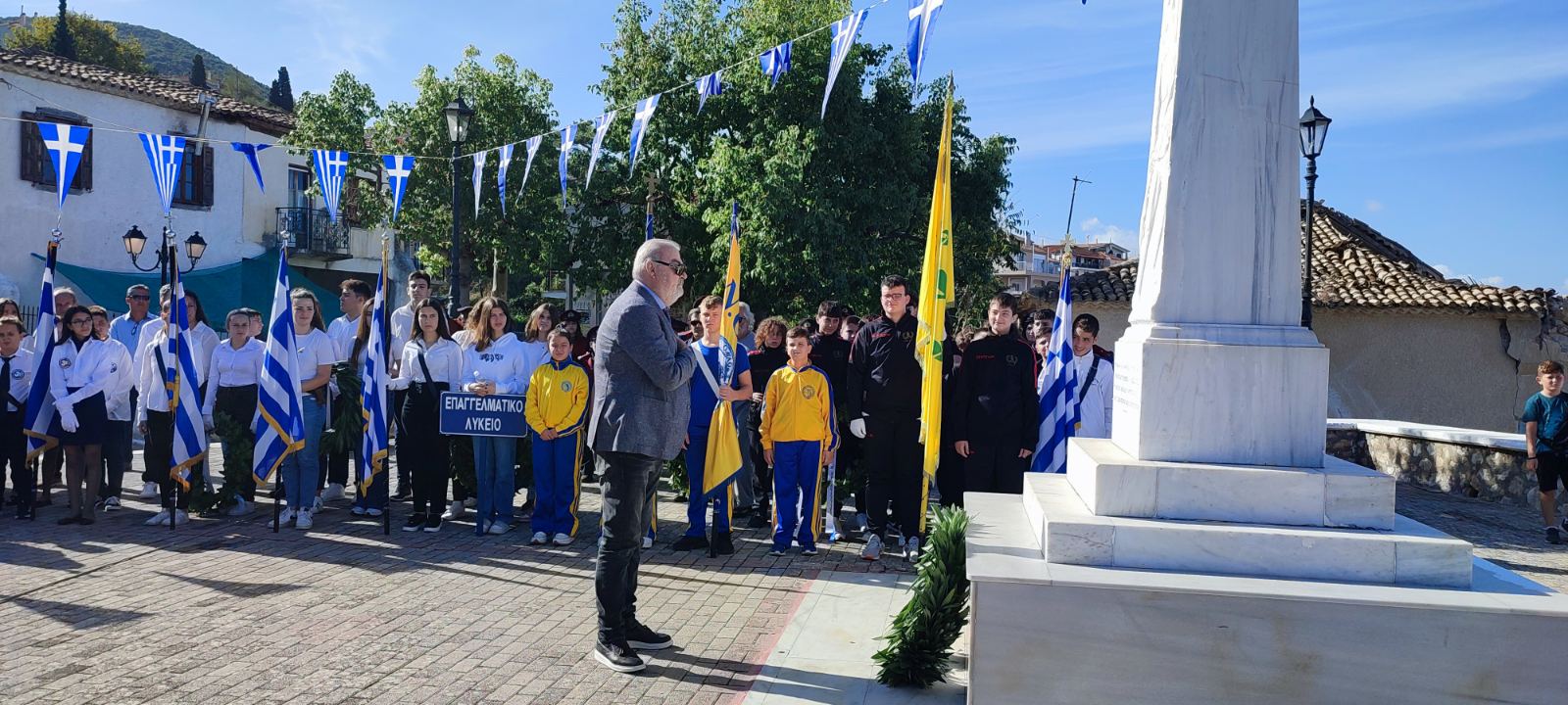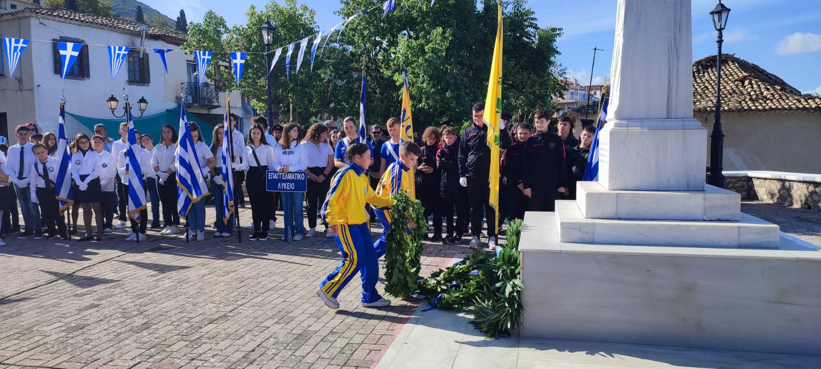 Οι εκδηλώσεις ξεκίνησαν με επιμνημόσυνη δέηση και ακολούθησε κατάθεση στεφάνων από το Δήμαρχο Τριφυλίας Γεώργιο Λεβεντάκη και μαθητές από όλα τα σχολεία της πόλης και τα αθλητικά σωματεία.