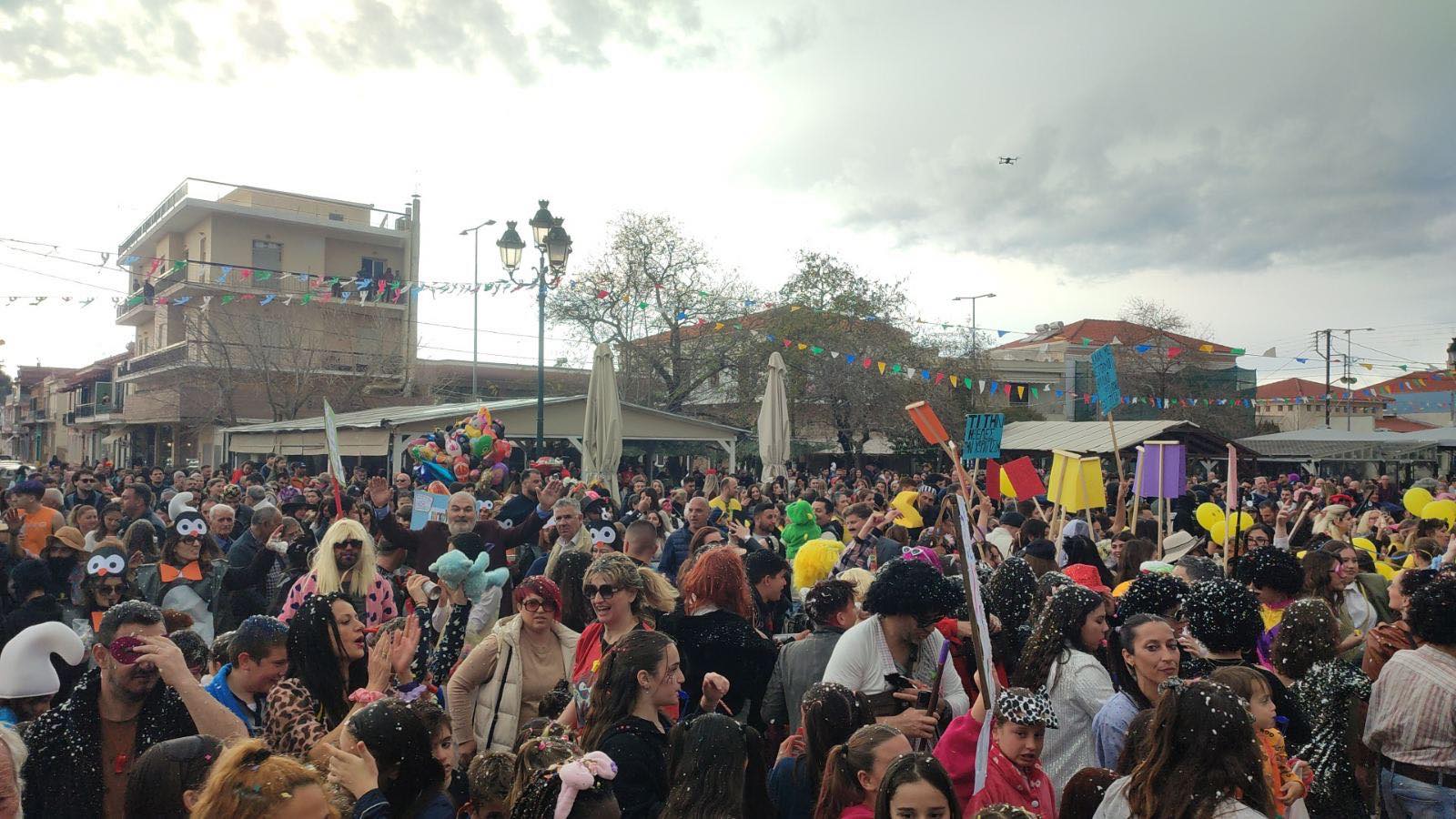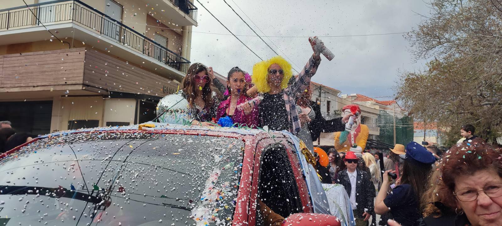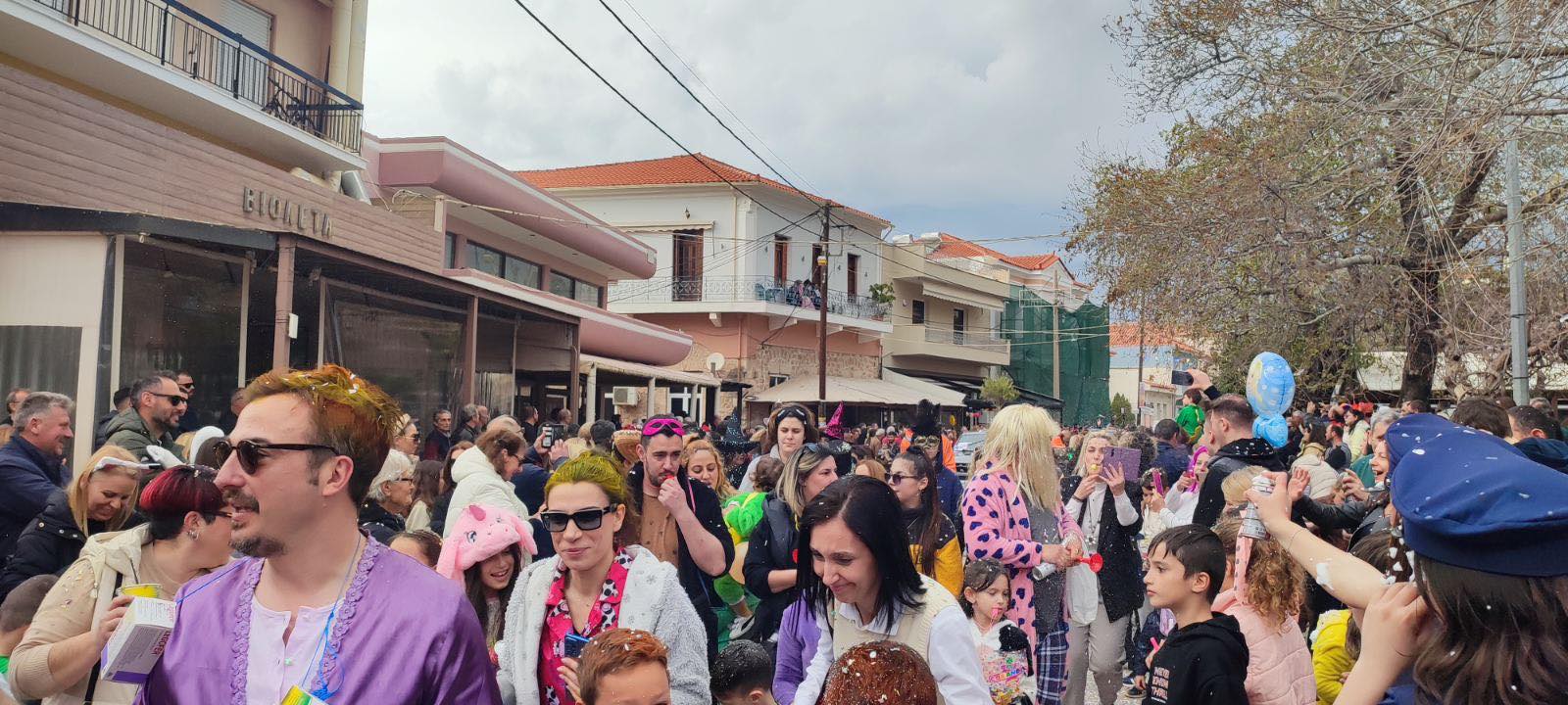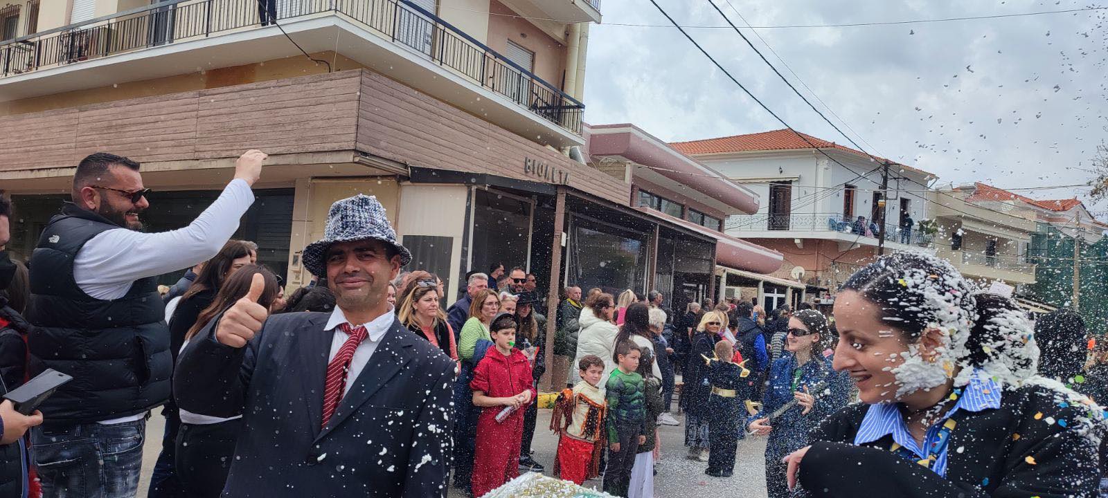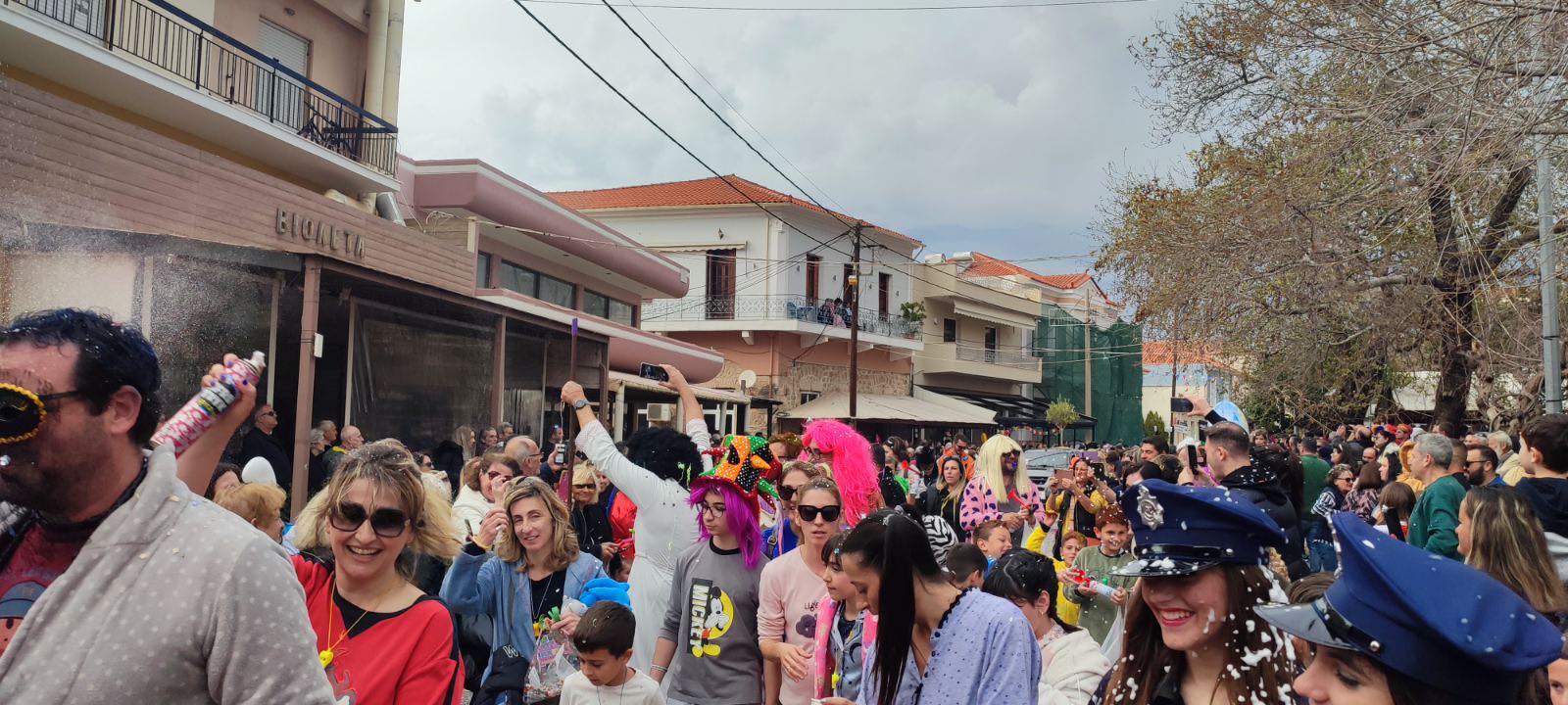 Η βροχή που ξεκίνησε μετά τη λήξη της παρέλασης δεν πτόησε τους καρναβαλιστές, που συνέχισαν το γλέντι τους στα πάρτι που οργανώθηκαν σε καταστήματα εστίασης της πόλης και όχι μόνο.
