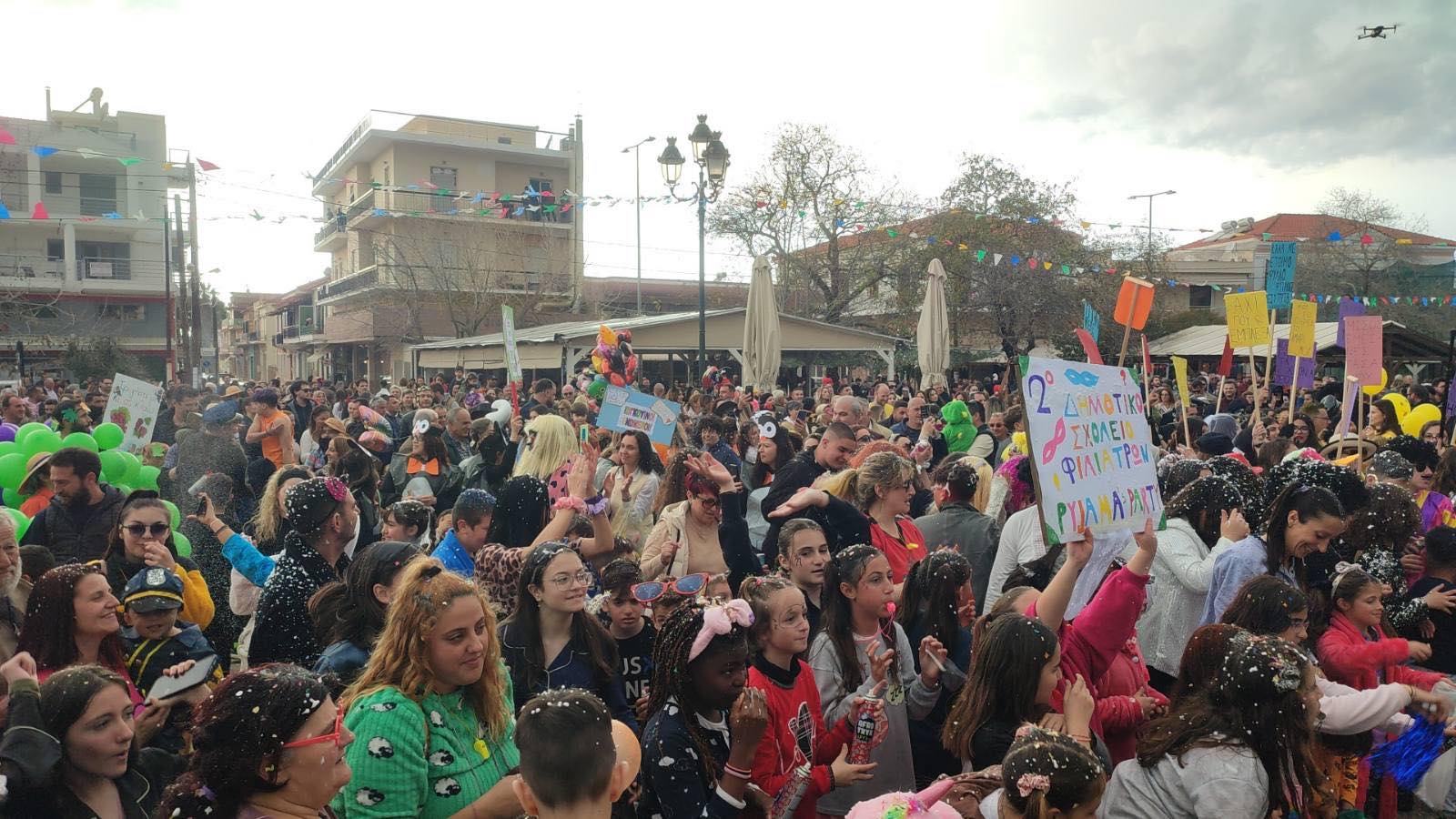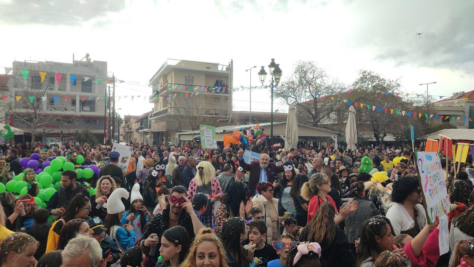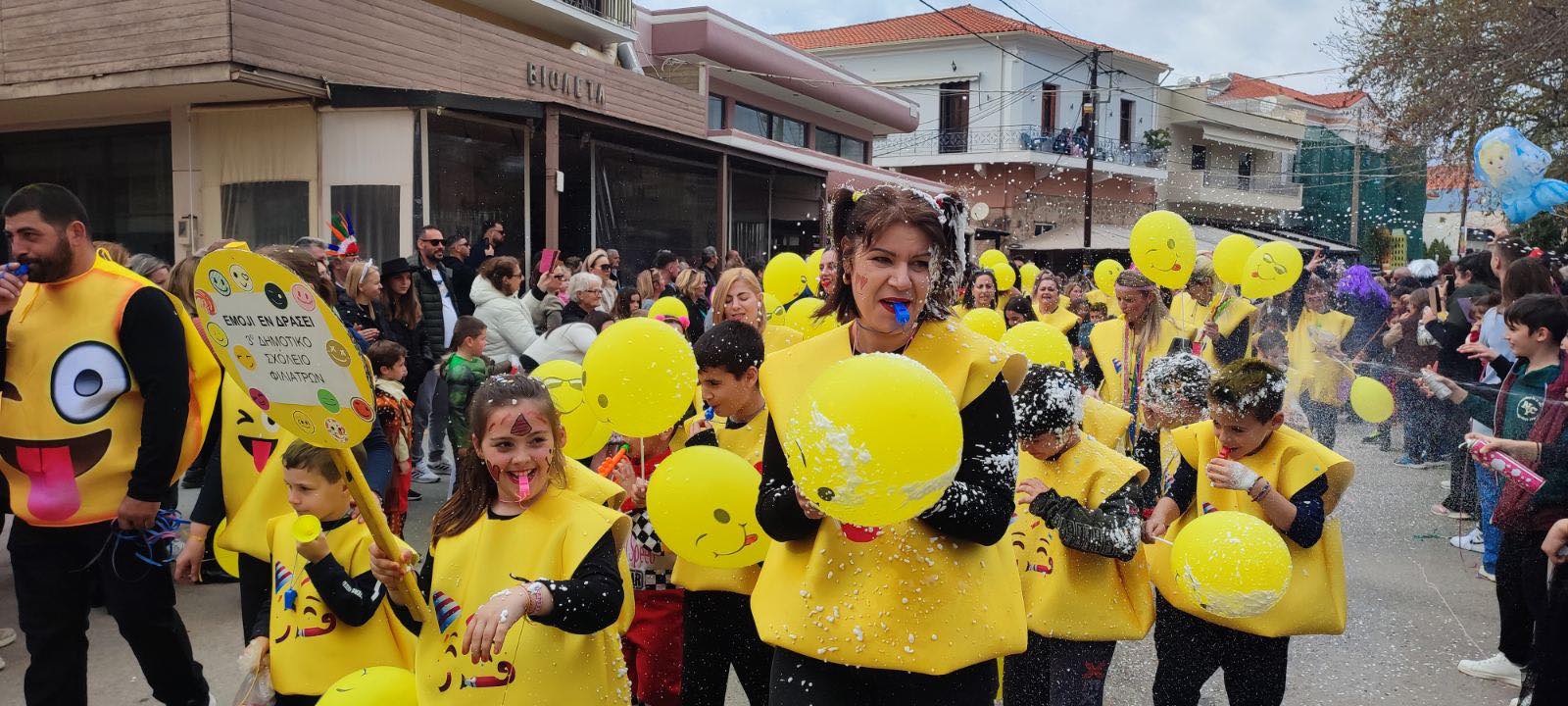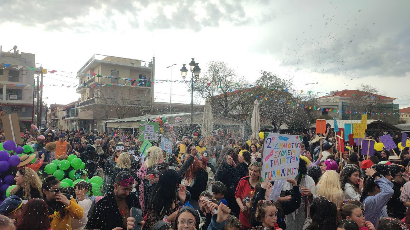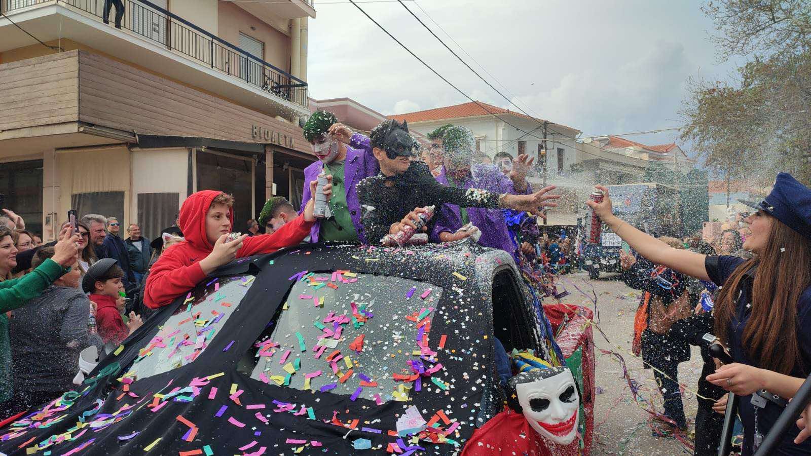 Η βροχή που ξεκίνησε μετά τη λήξη της παρέλασης δεν πτόησε τους καρναβαλιστές, που συνέχισαν το γλέντι τους στα πάρτι που οργανώθηκαν σε καταστήματα εστίασης της πόλης και όχι μόνο.