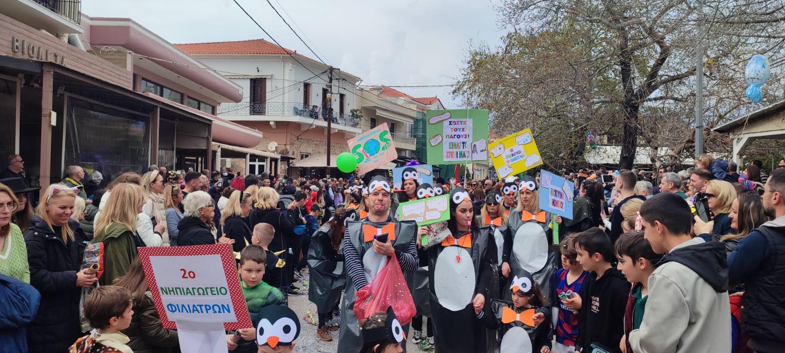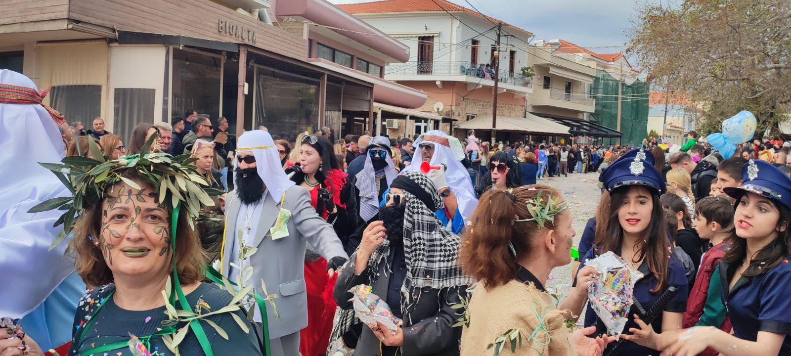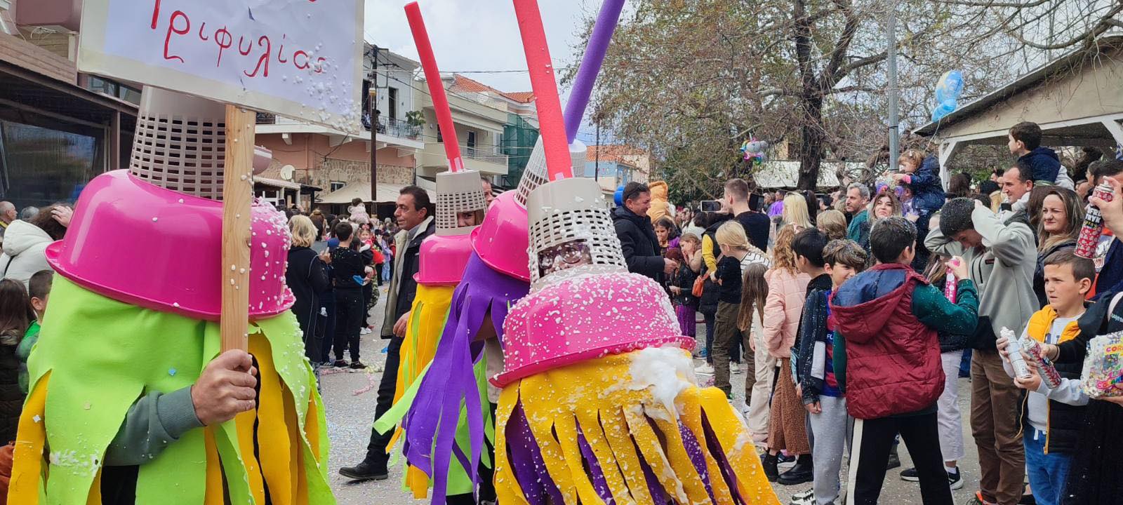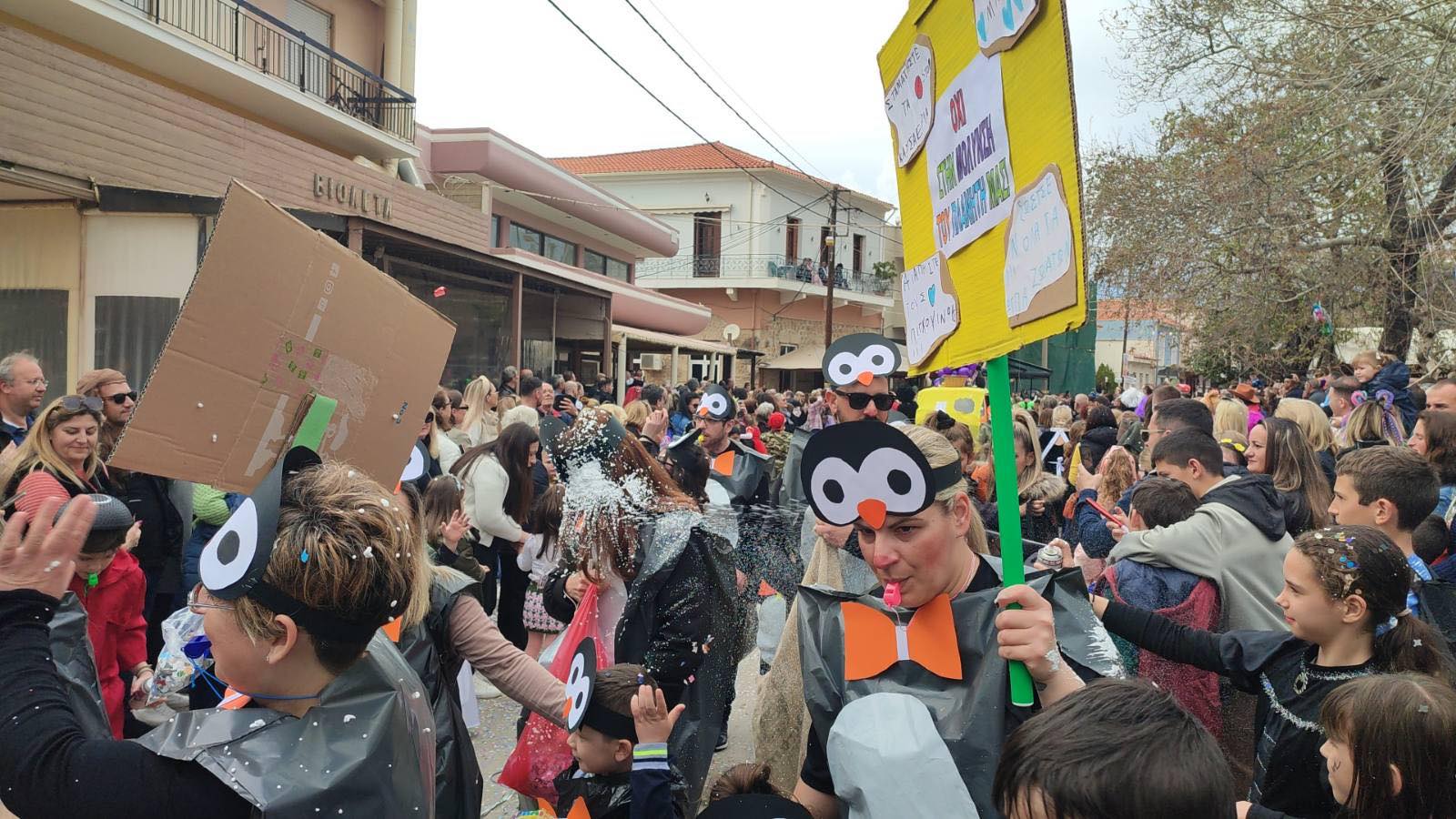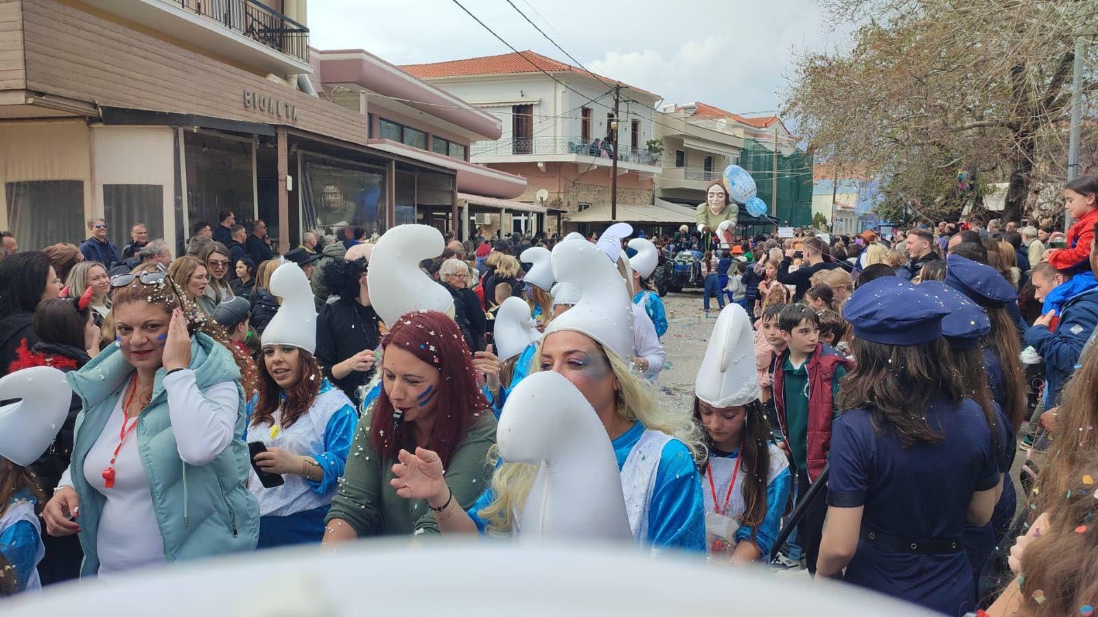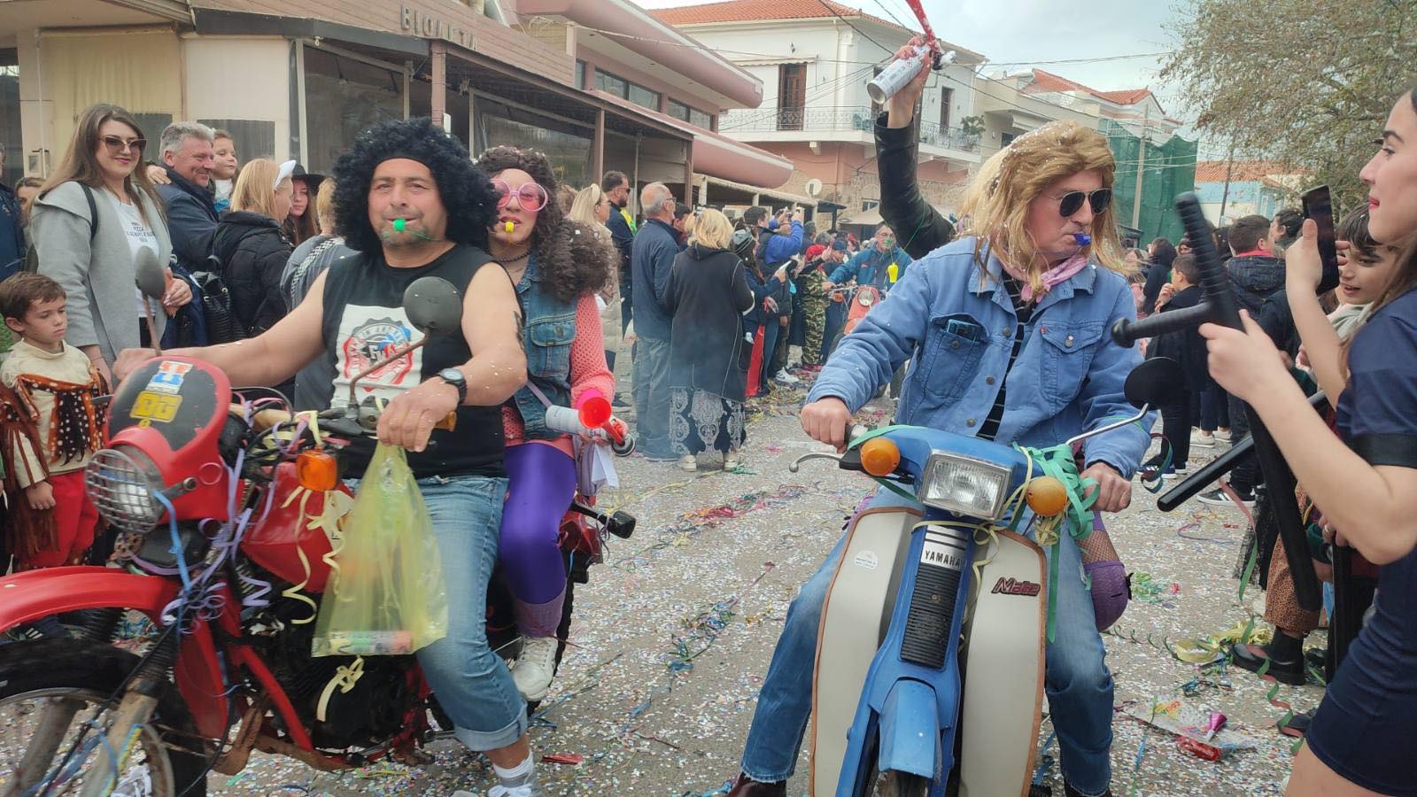 Η βροχή που ξεκίνησε μετά τη λήξη της παρέλασης δεν πτόησε τους καρναβαλιστές, που συνέχισαν το γλέντι τους στα πάρτι που οργανώθηκαν σε καταστήματα εστίασης της πόλης και όχι μόνο.