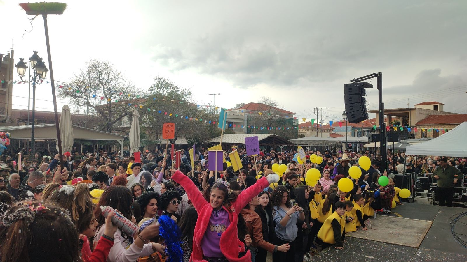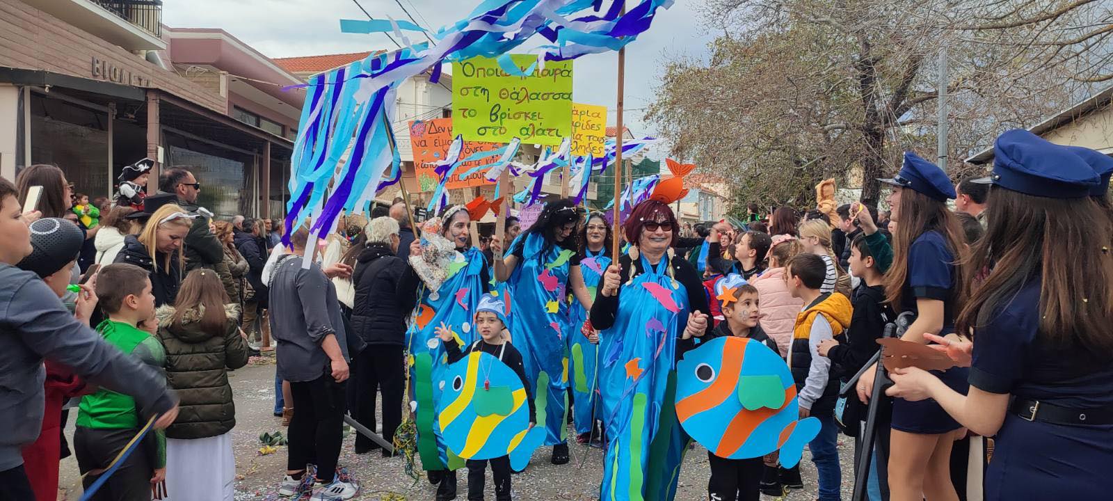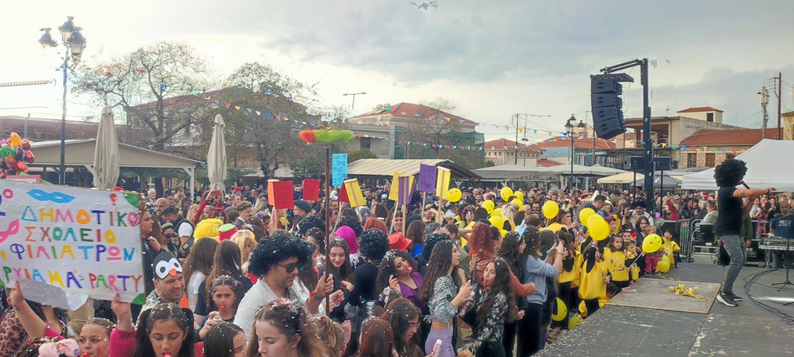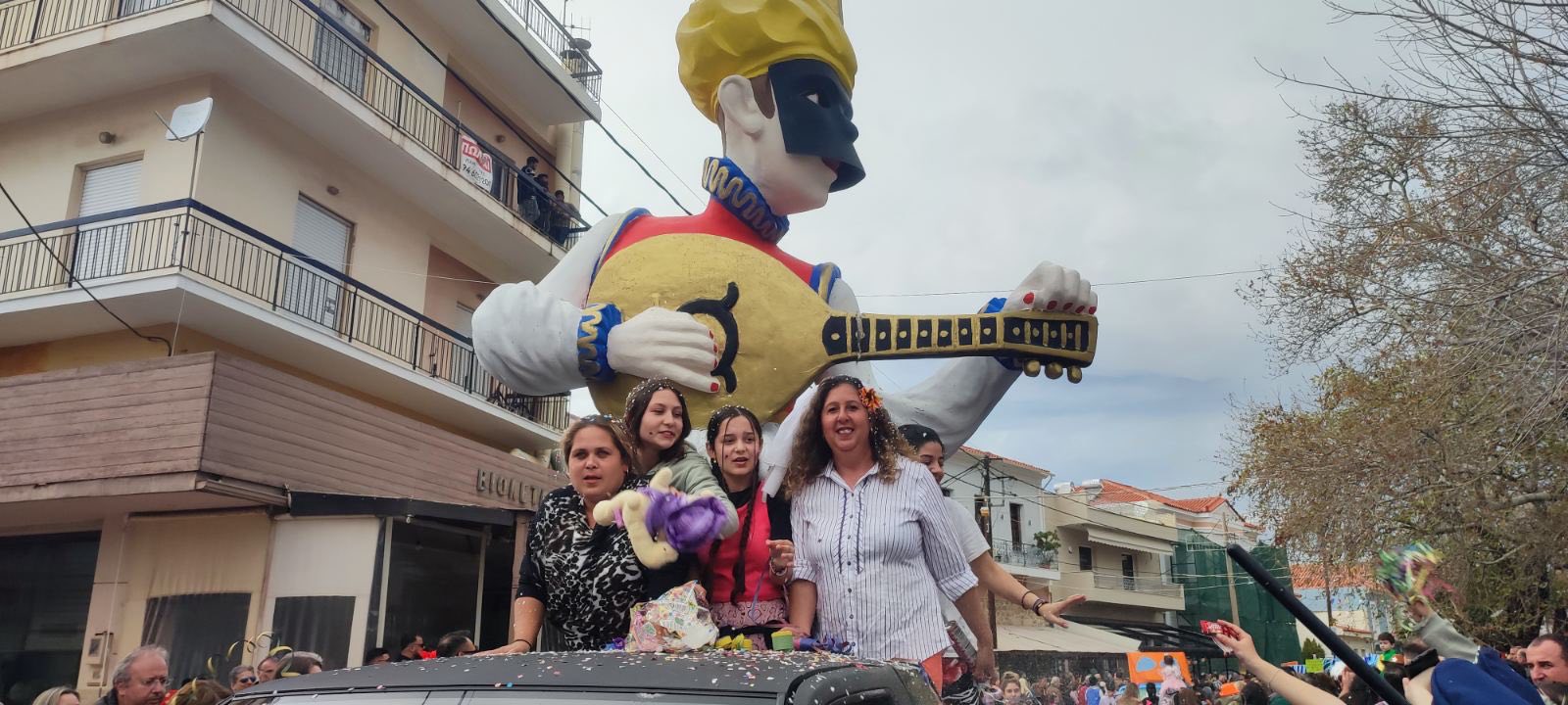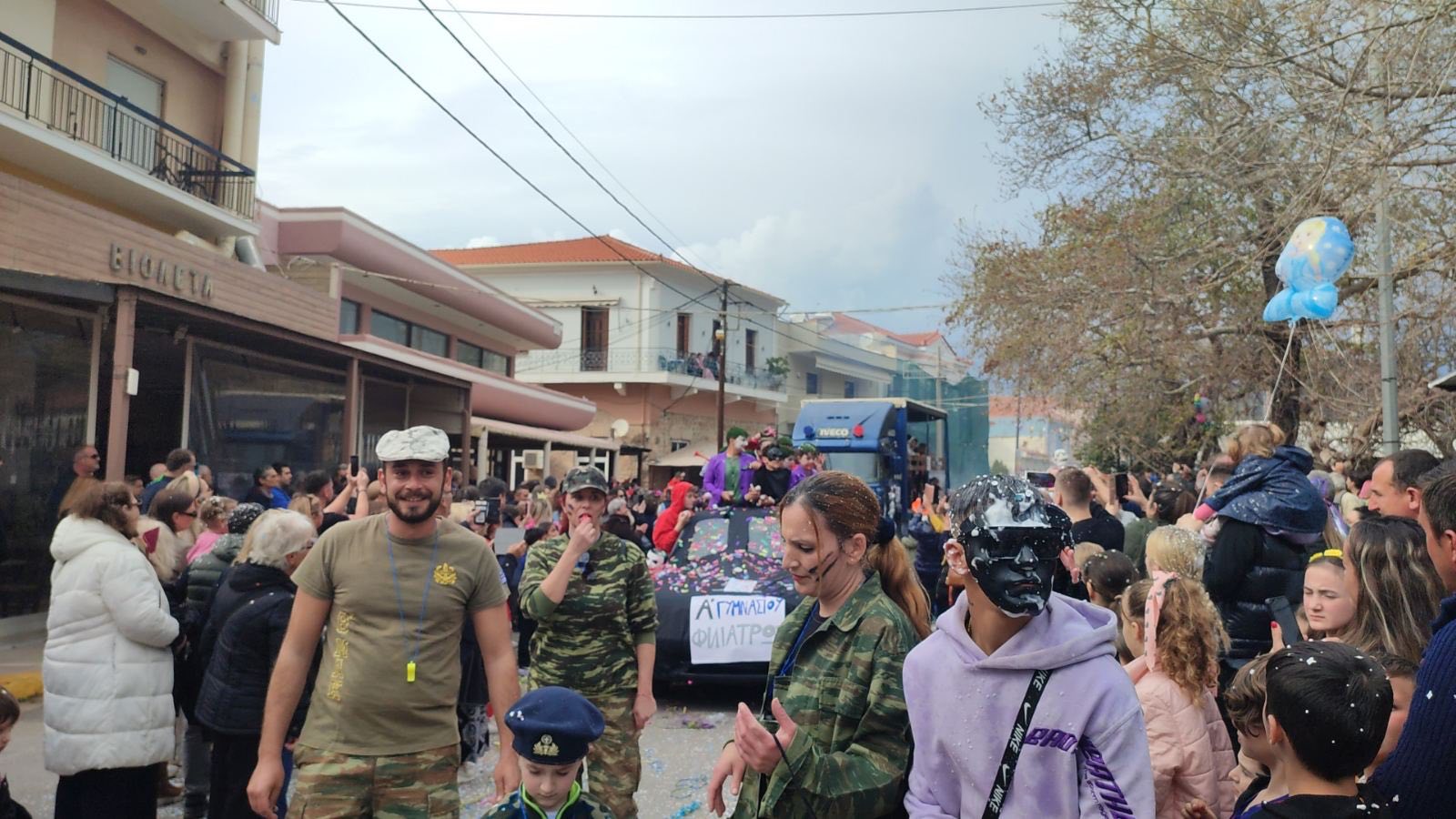 Η βροχή που ξεκίνησε μετά τη λήξη της παρέλασης δεν πτόησε τους καρναβαλιστές, που συνέχισαν το γλέντι τους στα πάρτι που οργανώθηκαν σε καταστήματα εστίασης της πόλης και όχι μόνο.