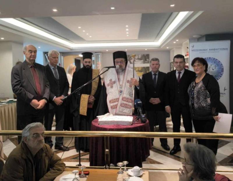 «Οι οικοδεσπότες, μέλη του Δ.Σ. της Μεσσηνιακής Αμφικτυονίας: Παναγιώτης Μπαζίγος (Γραμματέας, εκπρόσωπος Συλλόγου Μανιατών), Έφη Μπούνα (Οργανωτική Γραμματέας, Γ.Γραμ. του Εκπολ. Συλλόγου Πυλίων «το Ναυαρίνο»), Παναγιώτης Λούτος (Ταμίας και Πρόεδρος της Ομοσπονδίας Τριφυλιακών Συλλόγων) και ο Φώτης Μαρκόπουλος (Μέλος, Πρόεδρος του Συλλόγου Μεσσηνίων Ιλίου), φρόντισαν για την άψογη φιλοξενία των παρισταμένων» τονίζεται από τη Μ.Α., σημειώνοντας πως ιδιαίτερη ικανοποίηση προκάλεσε η εγγραφή νέων μελών από τις Ελληνικές Κοινότητες: α) Της Τασκένδης του Ουζμπεκιστάν που εκπροσωπήθηκε από τον Σπύρο Κατσιρέα, β) Του Καράκας της Βενεζουέλας που εκπροσωπήθηκε από την Ξένια Μπάλα – Μαραγκού και γ) Του Καΐρου της Αιγύπτου που εκπροσωπήθηκε από την Βασιλική Νικητοπούλου. Το φλουρί της πίτας έτυχε στην Στέλα Τσίγκου.