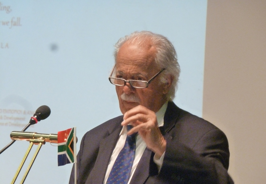 «Μεταξύ των άρθρων του Συντάγματος αναφέρεται ότι η Δημοκρατία της Νοτίου Αφρικής έχει 11 επίσημες γλώσσες οι οποίες αναγνωρίζονται και παρέχεται η δυνατότητα να διδάσκονται και οι γλώσσες διαφόρων μεταναστευτικών κοινοτήτων. Μεταξύ αυτών των 11 γλωσσών είναι και η ελληνική. Το ίδιο συμβαίνει και με τις θρησκείες που είναι ελεύθερες και κανείς δεν έχει το δικαίωμα να περιορίσει αυτές τις απόλυτες ελευθερίες του κάθε ατόμου. Γι’ αυτό λένε ότι ιδρύσαμε μια ουτοπία στην Νότιο Αφρική. Η αλήθεια είναι ότι προσπαθήσαμε σκληρά γι’ αυτό» είπε χαρακτηριστικά.