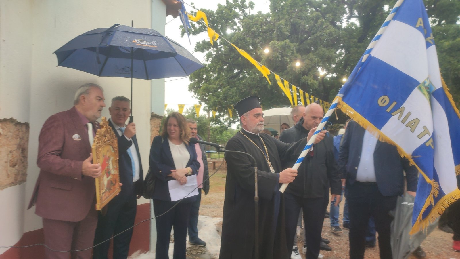 Νωρίς το πρωί τελέστηκε Θεία Λειτουργία και ακολούθησε επιμνημόσυνη δέηση στο μνημείο του αγωνιστή Πανάγου Λελώνη δίπλα από την υπεραιωνόβια βελανιδιά που οι Τούρκοι αποπειράθηκαν να κρεμάσουν, σώζοντας τον τελευταία στιγμή η αγαπημένη του Κρινιώ. Εψάλη ο εθνικός ύμνος και έγινε κατάθεση στεφανιών στο μνημείο από το δήμαρχο Τριφυλίας Γιώργο Λεβεντάκη, τον διοικητή του ΑΤ Τριφυλίας Αθανάσιο Δήμα, την εκπρόσωπο του Τοπικού Συμβουλίου Φιλιατρών Κωνσταντίνα Βέννου, καθώς και τους αντιδημάρχους Βασίλη Αθανασόπουλο, Αντώνη Βλάχο, Μαρία Παναγοπούλου, Δήμητρα Ανδρινοπούλου και Φώτη Γριβάκη.
