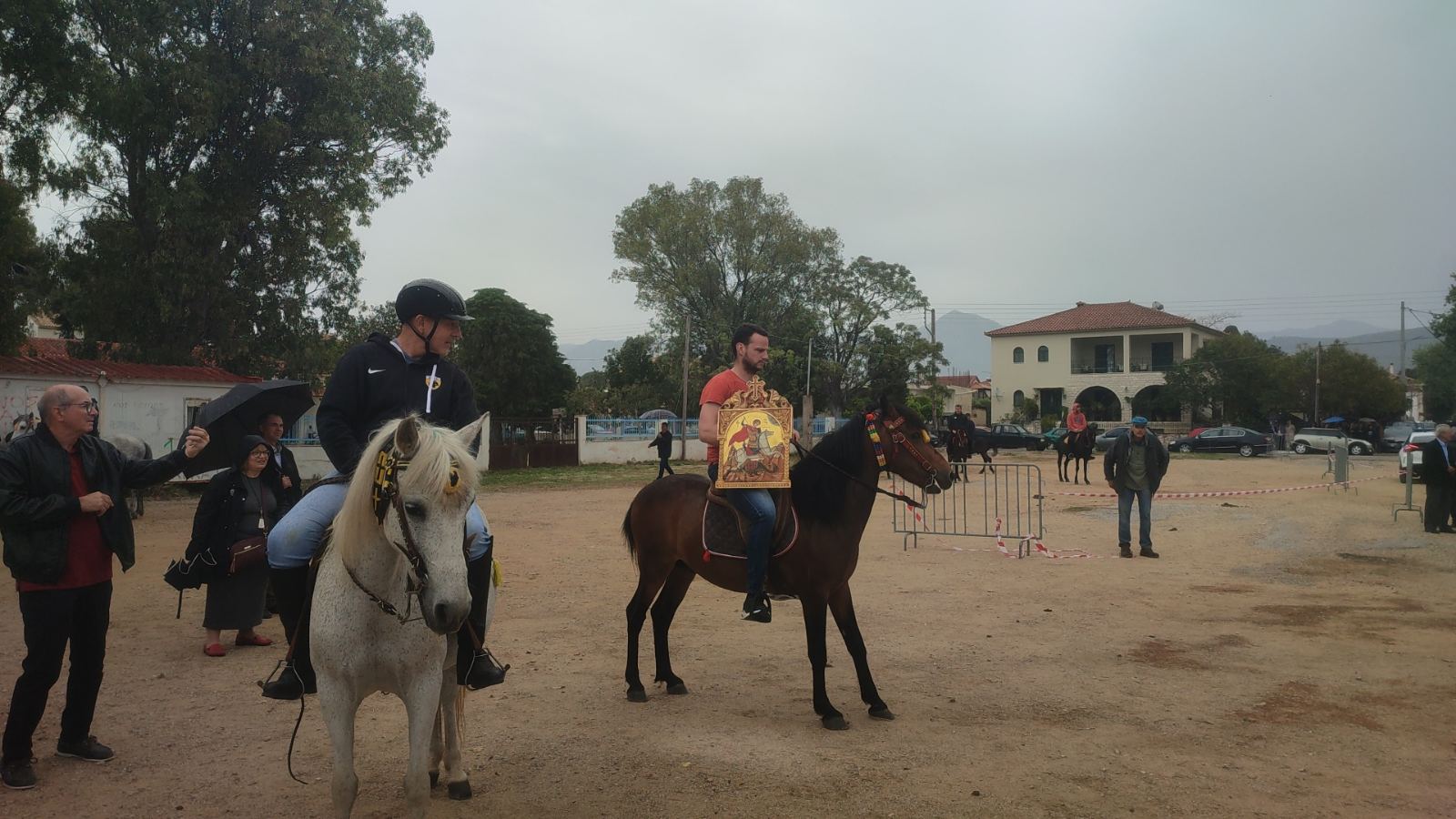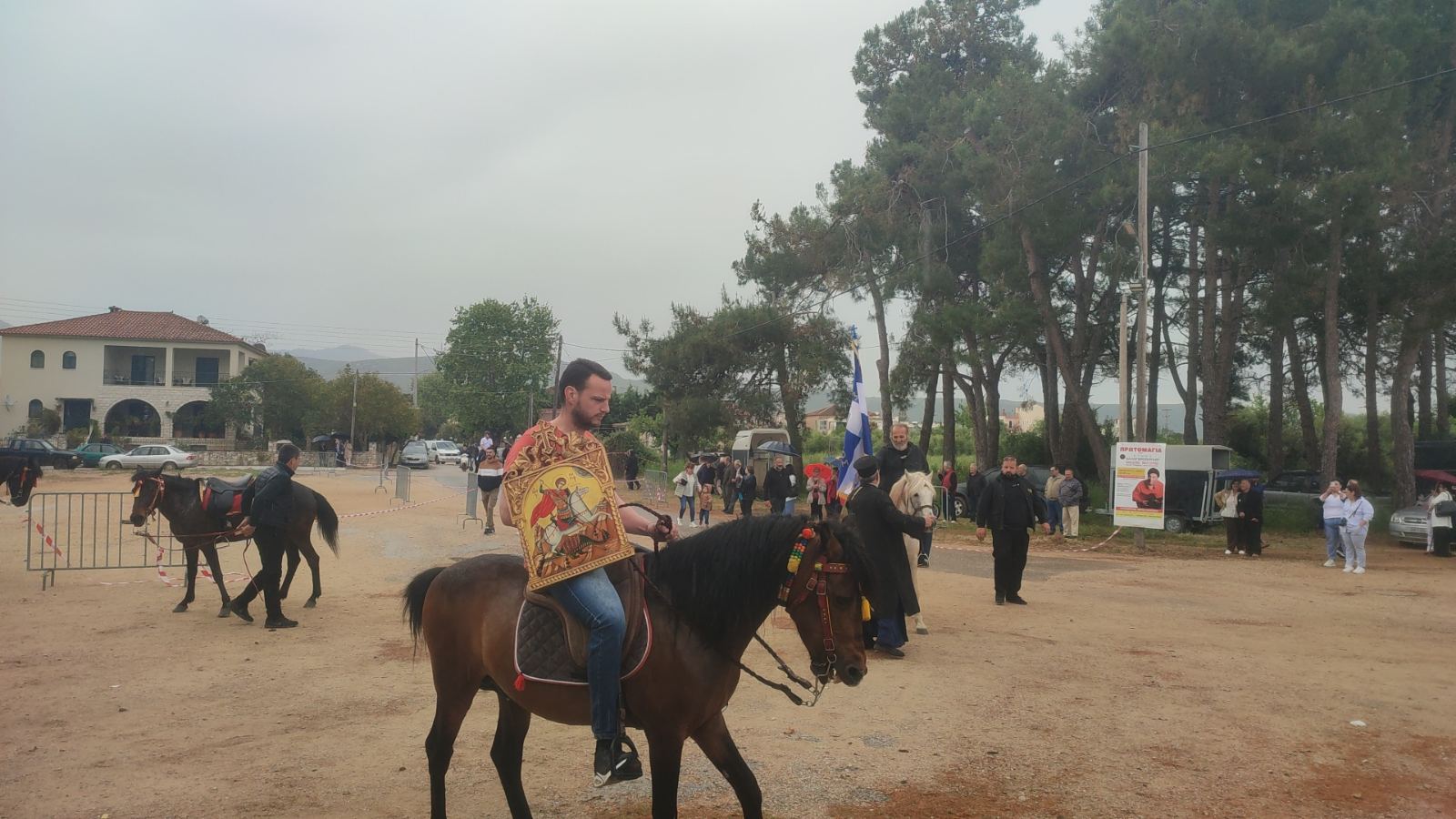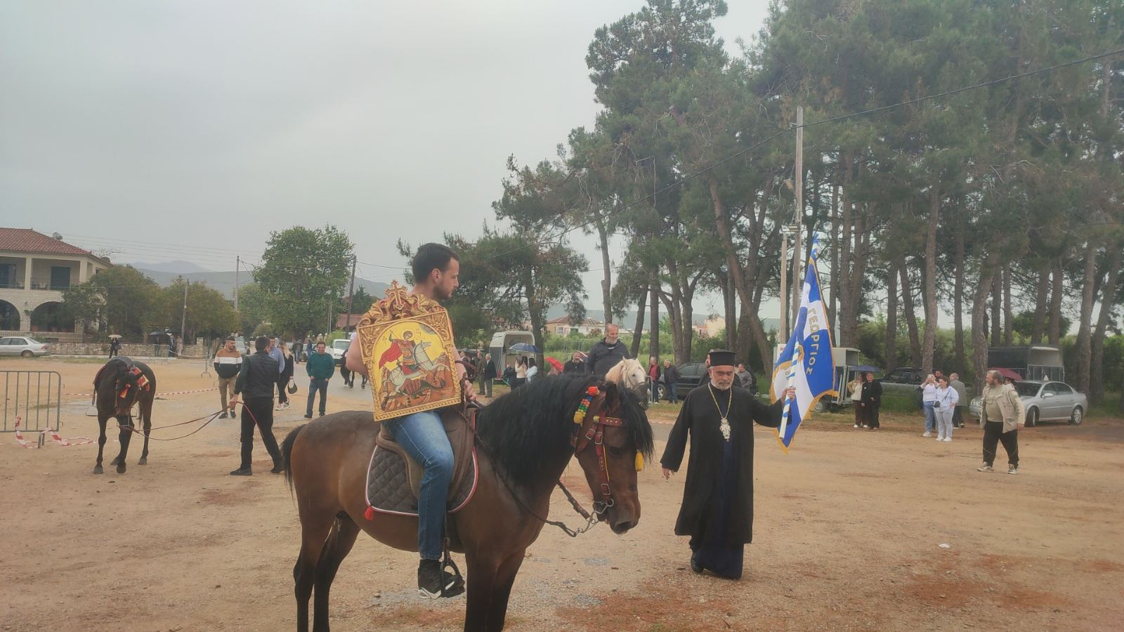 Στη συνέχεια από τον ιερέα Διονύσιο Καλογερόπουλο παραδόθηκε η σημαία με τη μορφή του Αγίου Γεωργίου και η εικόνα του σε ιππείς όπου πέρασαν από τους κεντρικούς δρόμους της πόλης και την κεντρική πλατεία πριν καταλήξουν και πάλι στο ιερό ναό του Αγίου Γεωργίου, όπου τους απονεμήθηκαν αναμνηστικά μετάλλια και κύπελλα.