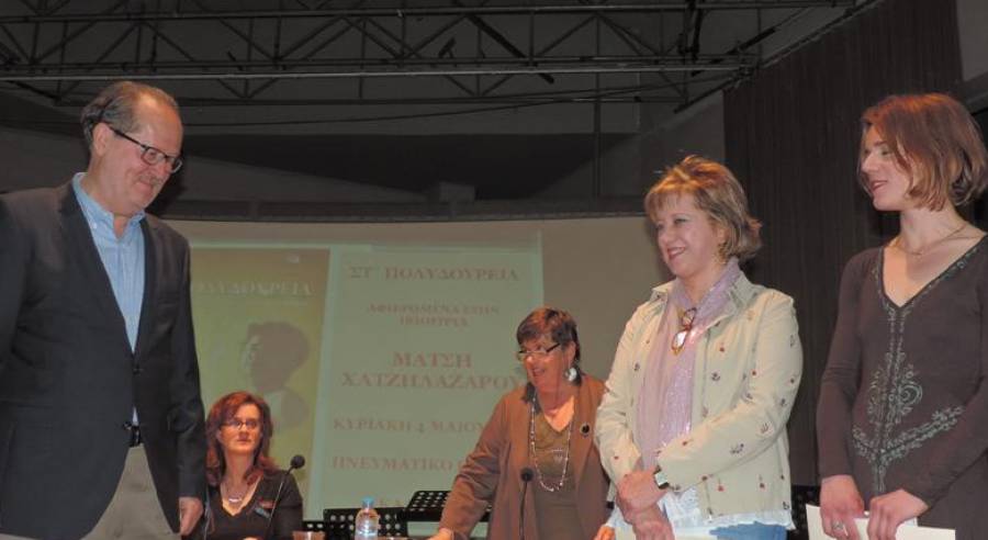 Η Μαρία Τσαγκαράκη πρόεδρος του Συνδέσμου Φιλολόγων Μεσσηνίας, εξέφρασε ευχαριστίες προς το δήμαρχο και το Δημοτικό Συμβούλιο για την υποστήριξη του Βραβείου Πολυδούρη (ο δήμος χορηγεί ποσόν 2.000 ευρώ για αυτό). Το κοινό παρακολούθησε βίντεο για την πρώτη Ελληνίδα υπερρεαλίστρια ποιήτρια, τη Μάτση Χατζηλαζάρου και στη συνέχεια μίλησε για εκείνη ο φιλόλογος – συγγραφέας Σταύρος Τσαγκαράκης. Στη συνέχεια, η Μαρία Τσαγκαράκη διάβασε το τελευταίο ποίημα της Μάτσης Χατζηλαζάρου για τον Ανδρέα Εμπειρίκο με τίτλο «Αντίστροφη αφιέρωση».