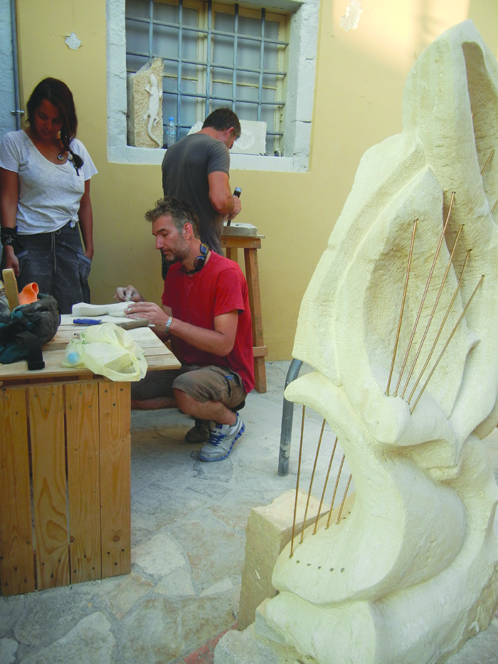Οπως είπε ο κ. Γκούζος, η ανταπόκριση του κόσμου σε αυτή τη δραστηριότητα ήταν και είναι εντυπωσιακή. Οι περαστικοί βλέπουν πώς η πέτρα παίρνει μορφή, σιγά-σιγά. Ανθρωποι όλων των ηλικιών, ξένοι και Ελληνες, ρωτάνε να μάθουν, δίνουν συγχαρητήρια στους δημιουργούς. Το υλικό που χρησιμοποιείται είναι μεσσηνιακό, από ένα αρχαίο λατομείο στην Ανδρούσα και το έχει κάνει δωρεά ο Γ. Γιαννακόπουλος. Ολα τα έργα θα εκτεθούν ολοκληρωμένα στις 10 Αυγούστου στην πανσέληνο, την Παγκόσμια Ημέρα Μουσείων.