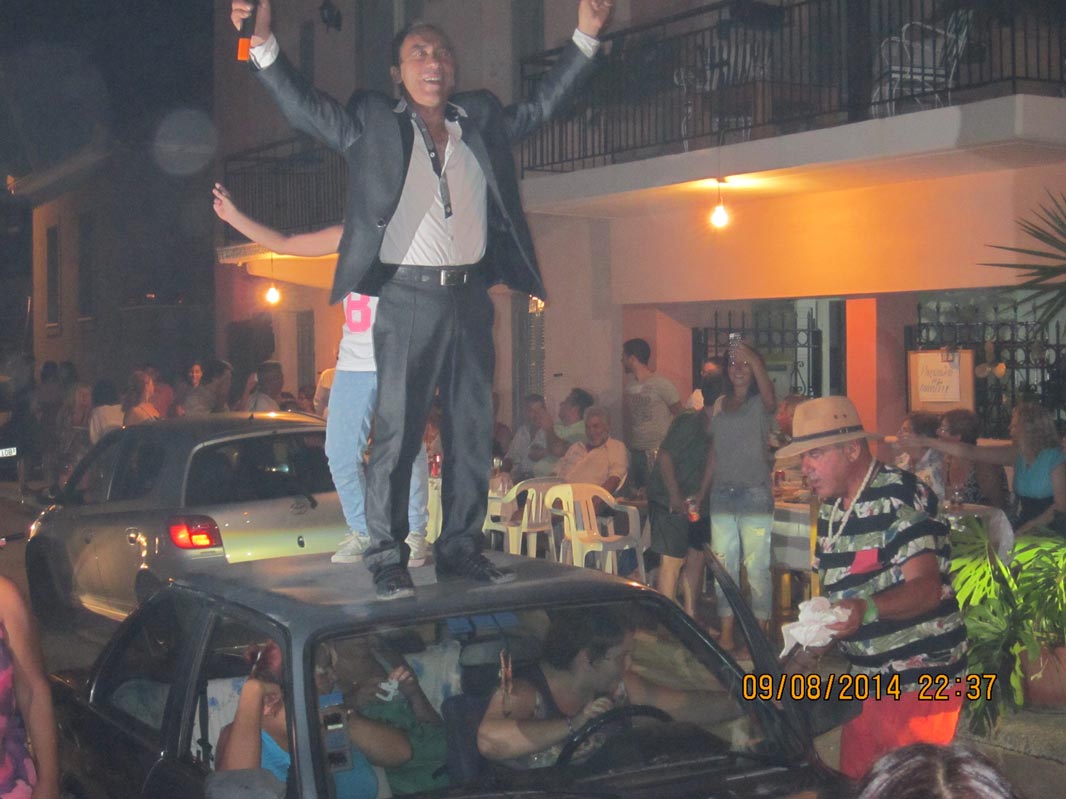 Με καλή μουσική από dj ντόπιοι, αλλά και παραθεριστές -Ελληνες και ξένοι- γλέντησαν τρώγοντας σουβλάκια, αλλά και μεζέδες από τα σπίτια της περιοχής και πίνοντας κρασί και μπίρα είχαν την ευκαιρία να διασκεδάσουν μια μέρα πριν την αυγουστιάτικη πανσέληνο. Μασκότ της βραδιάς, όπως κάθε καλοκαίρι, ο διασκεδαστής Σταμάτης, που τραγούδησε και χόρεψε στον ουρανό ενός BMW.