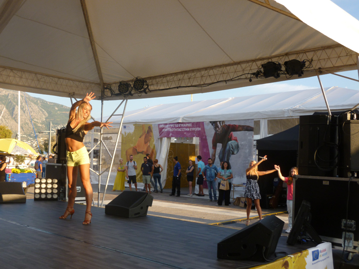 Σάββατο 13 Σεπτεμβρίου 1.15 - 1.45 μ.μ. και 4.15 - 4.45 μ.μ. hip hop show, 5 - 6 salsa footwork "Fame Dance Academy". 3.30 - 4.30 μ.μ. Erasmus+ (ΙΚΥ), Επιχειρησιακό Πρόγραμμα Εκπαίδευση και Διά Βίου Μάθηση (υπουργείο Παιδείας) "Erasmus για νέους επιχειρηματίες (Asset Technology)", Facebook chat για τις ευκαιρίες πρακτικής άσκησης - απασχόλησης από Ευρωπαϊκά προγράμματα. 4.30 - 5 μ.μ. Ε.Π. Εκπαίδευση και Διά Βίου Μάθηση / Δ.Α.ΣΤΑ. και Γραφείο Πρακτικής Ασκησης ΤΕΙ Πελοποννήσου "Δομή Απασχόλησης και Σταδιοδρομίας (Δ.Α.ΣΤΑ.) και Πρακτική Ασκηση στο ΤΕΙ Πελοποννήσου". 5 - 5.30 μ.μ.
