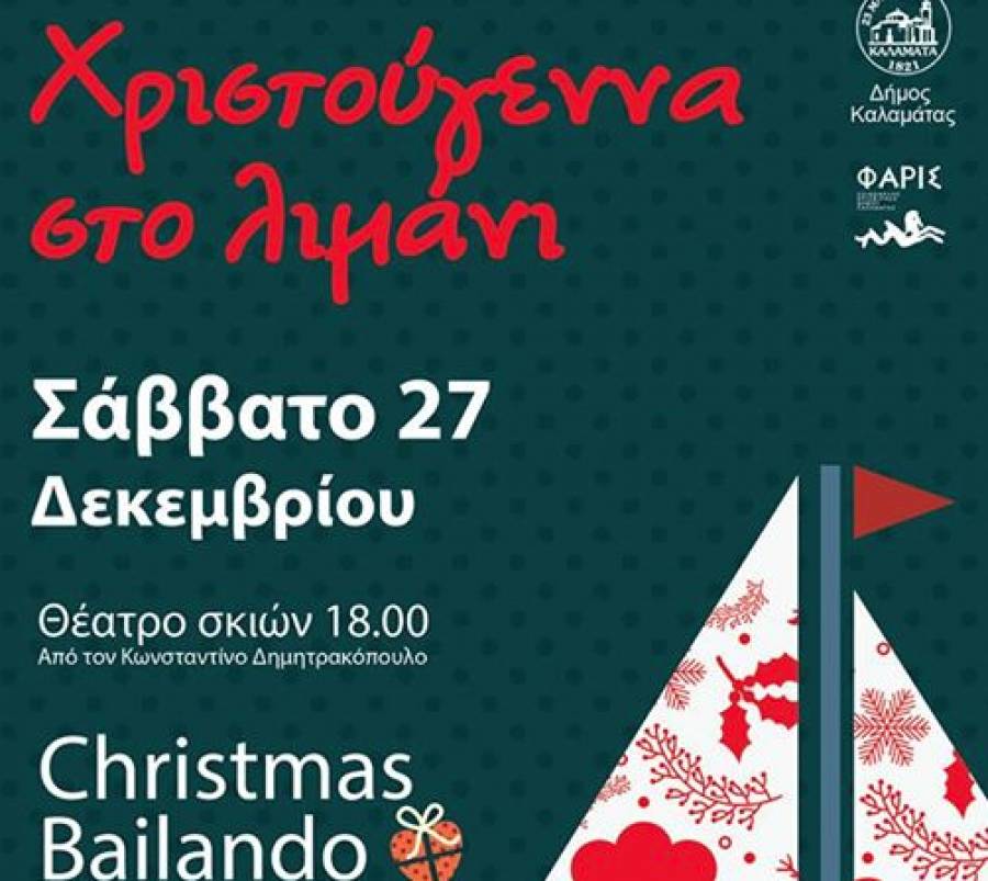 Στο πλαίσιο των εορταστικών εκδηλώσεων του Δήμου Καλαμάτας απόψε (27/12) στις 7 μ.μ. στην προκτμαία του λιμανιού της μεσσηνιακής πρωτεύουσας θα δοθεί από τη σχολή χορού "Vive Bailando" η παράσταση "Το μιούζικαλ των Χριστουγέννων", ενώ θα ακολουθήσει παράσταση θεάτρου σκιών με τον μικρό καραγκιοζοπαίχτη Κωνσταντίνο Δημητρακόπουλο από το Σύλλογο Γονέων Τριών Τέκνων Μεσσηνίας.