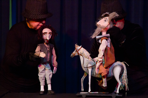 Η παράσταση συνδυάζει θεατρικές κούκλες με άκρα και θέατρο σκιών, για να ζωντανέψει τις περιπέτειες του ήρωα του έργου, Δον Κιχώτη, ο οποίος επηρεασμένος από τα ιπποτικά βιβλία που διαβάζει, ξεκινάει ένα μεγάλο ταξίδι μαζί με το φίλο του Σάτσο Πάντσα για να κυνηγήσουν γίγαντες και δράκους και να προστατέψουν όλους όσους έχουν ανάγκη. Ετσι εμπλέκεται σε μάχες, μονομαχίες, επιθέσεις, αλλά και πολλές ταλαιπωρίες. Οι φίλοι του που τον αγαπούν και πιστεύουν στην ευαισθησία και τον ανθρωπισμό του, σκαρφίζονται διάφορα κόλπα και μεταμορφώνονται σε άγνωστους ιππότες για να τον επαναφέρουν στο σπίτι του και το χωριό του. Αυτός όμως πάντα πιστεύει ότι «το να θέλεις να αλλάξεις τον κόσμο δεν είναι ούτε τρέλα, ούτε ούτε ουτοπία, αλλά δικαιοσύνη». Ετσι, επιστρέφει γεμάτος εμπειρίες και πιο σοφός στο σπίτι του παρέα με τους φίλους του και τα βιβλία του.