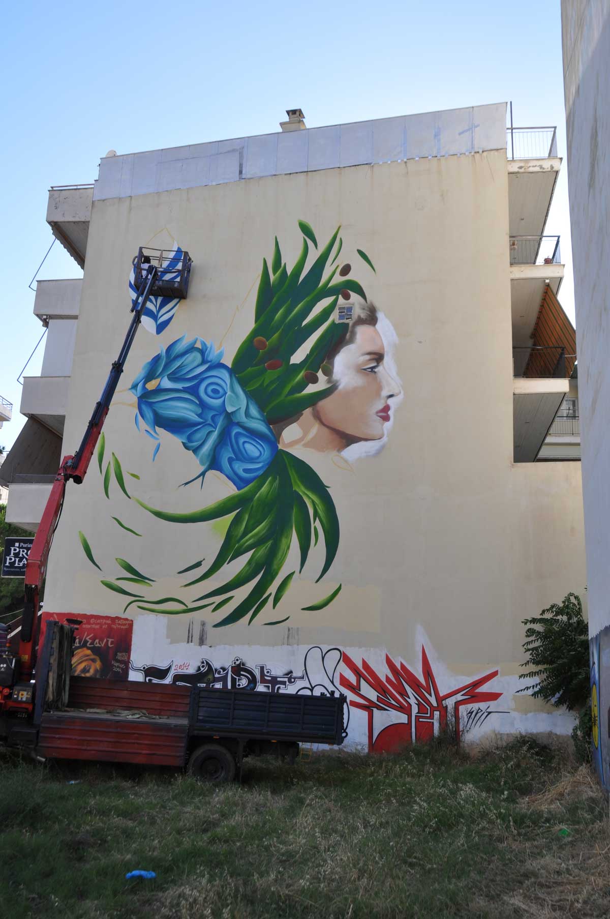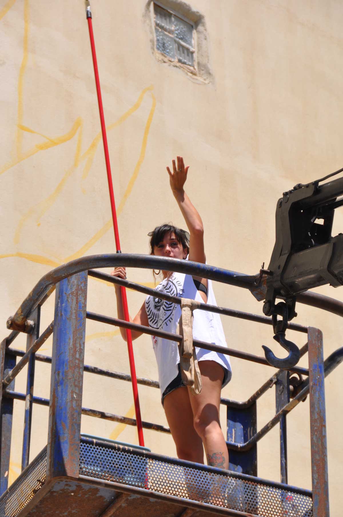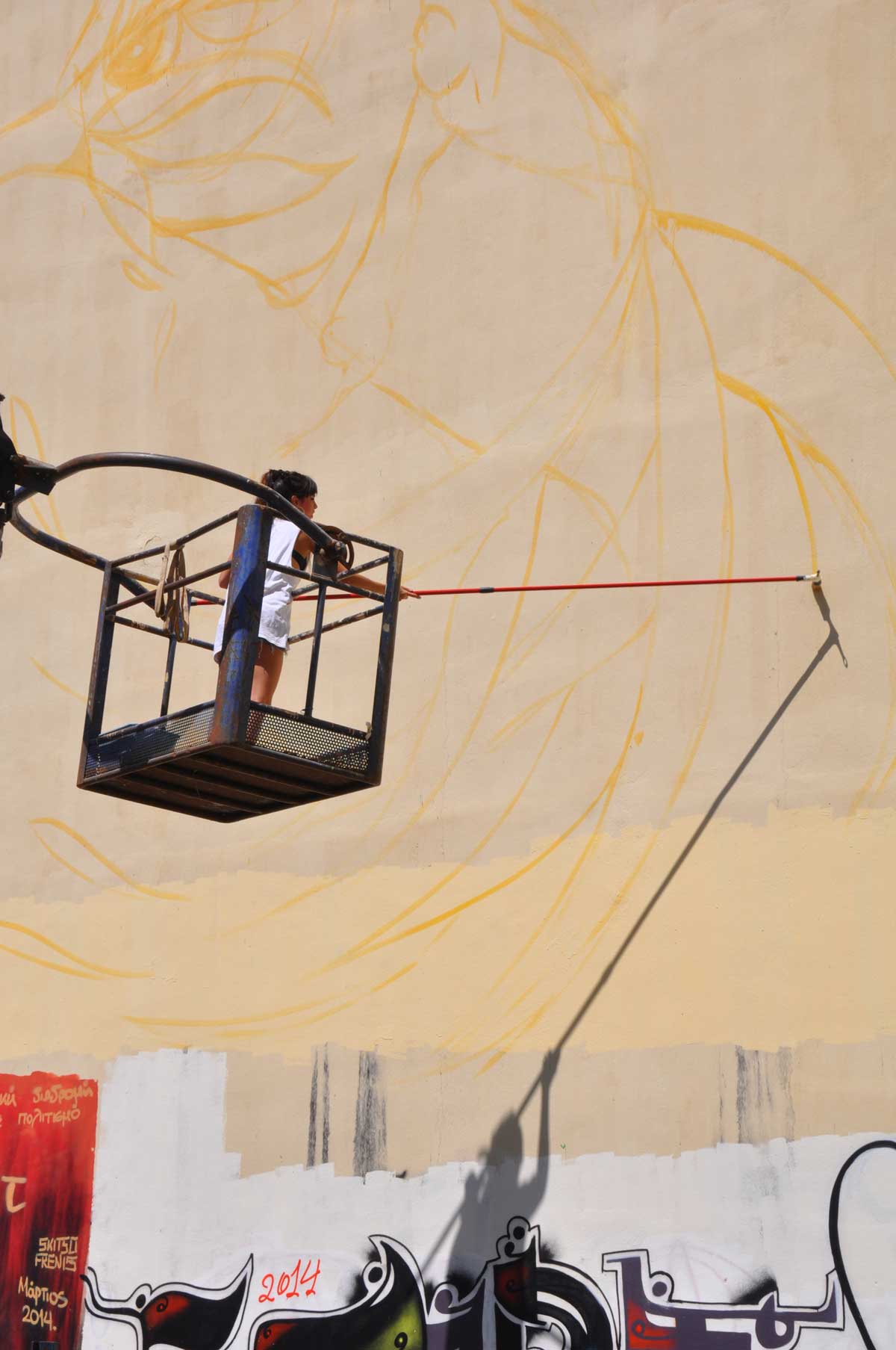 Για να φτάσουν ακόμα πιο ψηλά τα σχέδιά τους, είχε επιστρατευτεί και γερανός. Πολλοί περαστικοί σταματούσαν κι έβγαζαν φωτογραφίες από την πρωτότυπη αυτή δράση.