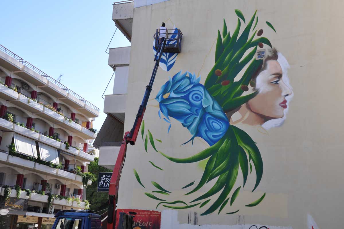 Η νεαρή Αργεντινή καλλιτέχνιδα Fio Silva μαζί με έναν παλιό ομιλητή του TEDxKalamata, τον γνωστό graffiti artist Skitsofrenis (Κώστα Λούζη), έκαναν χθες το απόγευμα τα μαγικά τους... αλλάζοντας έναν ακόμη γκρίζο τοίχο της πόλης. «Καμβάς» τους, ένα κτήριο στην οδό Βασιλέως Γεωργίου και Φαρών.
